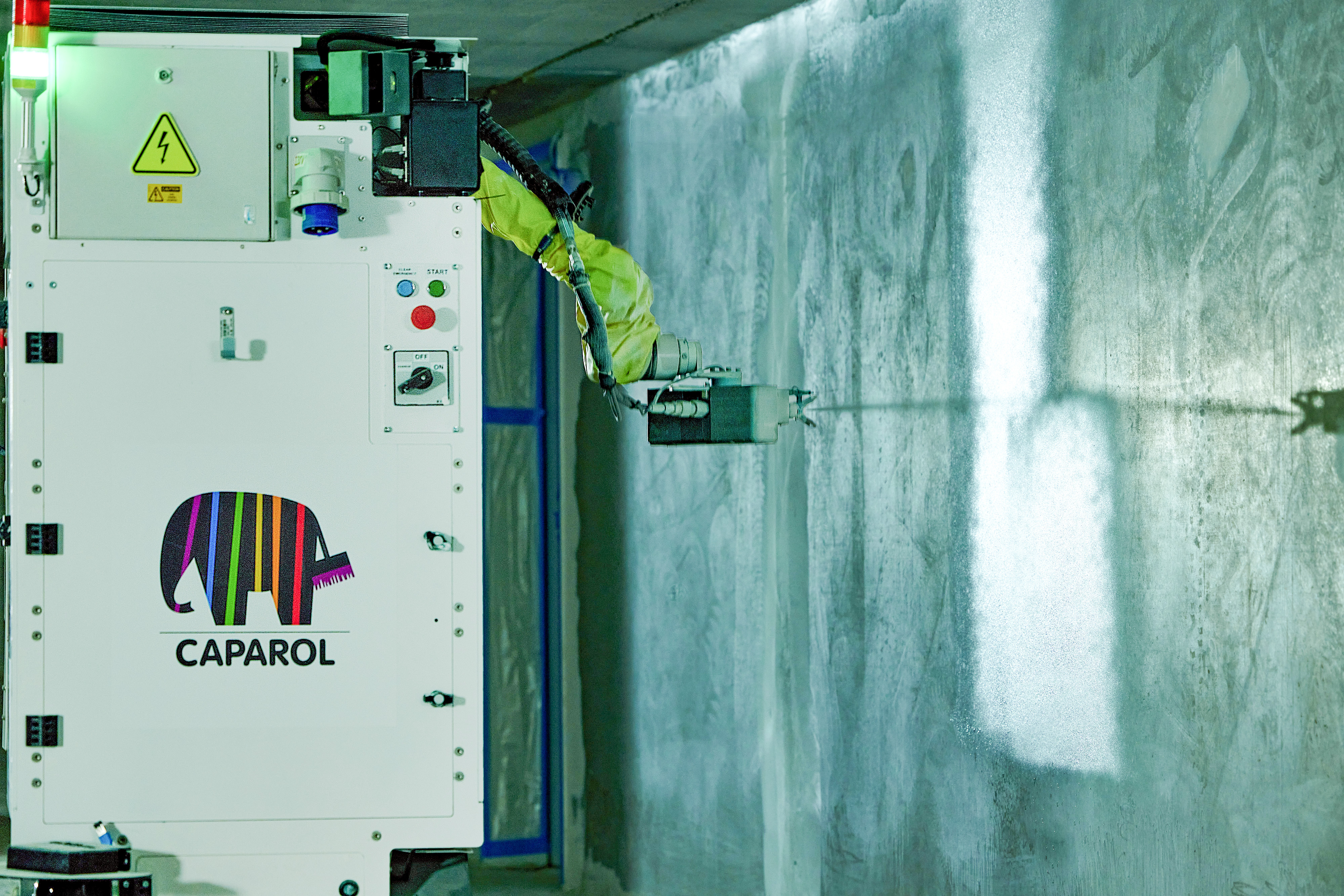 Diesem Ziel dient auch der Concept-Roboter, der Malern monotone und kraftzehrende Tätigkeiten erleichtert und mehr Freiraum für filigrane, hochwertige Handwerkskunst bietet. Arbeit gibt es genug. Und nicht für jede kommt der Roboter gleichermaßen in Frage. Zudem gibt es Rahmenbedingungen, die erfüllt sein müssen, damit die Technologie genutzt werden kann. Dazu gehören zum Beispiel Höhenmaße, die vier Meter nicht überschreiten dürfen. Auch hier gilt: Handwerkliche Arbeit gelingt nur mit Menschenhand, und genau die steuert die Aktivitäten des Roboters, der seine Stärken idealerweise auf großen und zusammenhängenden Flächen unter Beweis stellen kann. Prädestiniert sind nicht nur Tiefgaragen, Parkhäuser, Serverräume und Rechenzentren, Shopping Center, Einzel- und Großhandelsflächen, Lager und Fabrikhallen sowie Tunnel und Unterführungen bis vier Meter Höhe. Auch auf Teilflächen in Bürogebäuden, Hotels oder Krankenhäuser kann der Roboter zum Einsatz kommen, der sein Potenzial noch längst nicht ausgeschöpft hat. Seine Fähigkeiten werden kontinuierlich verbessert, die Basisversion regelmäßig um neue Updates erweitert. Heute noch schwierige Geometrien wie Rundsäulen oder Unterzüge sollen schon bald zum festen Skillset des Roboters zählen.