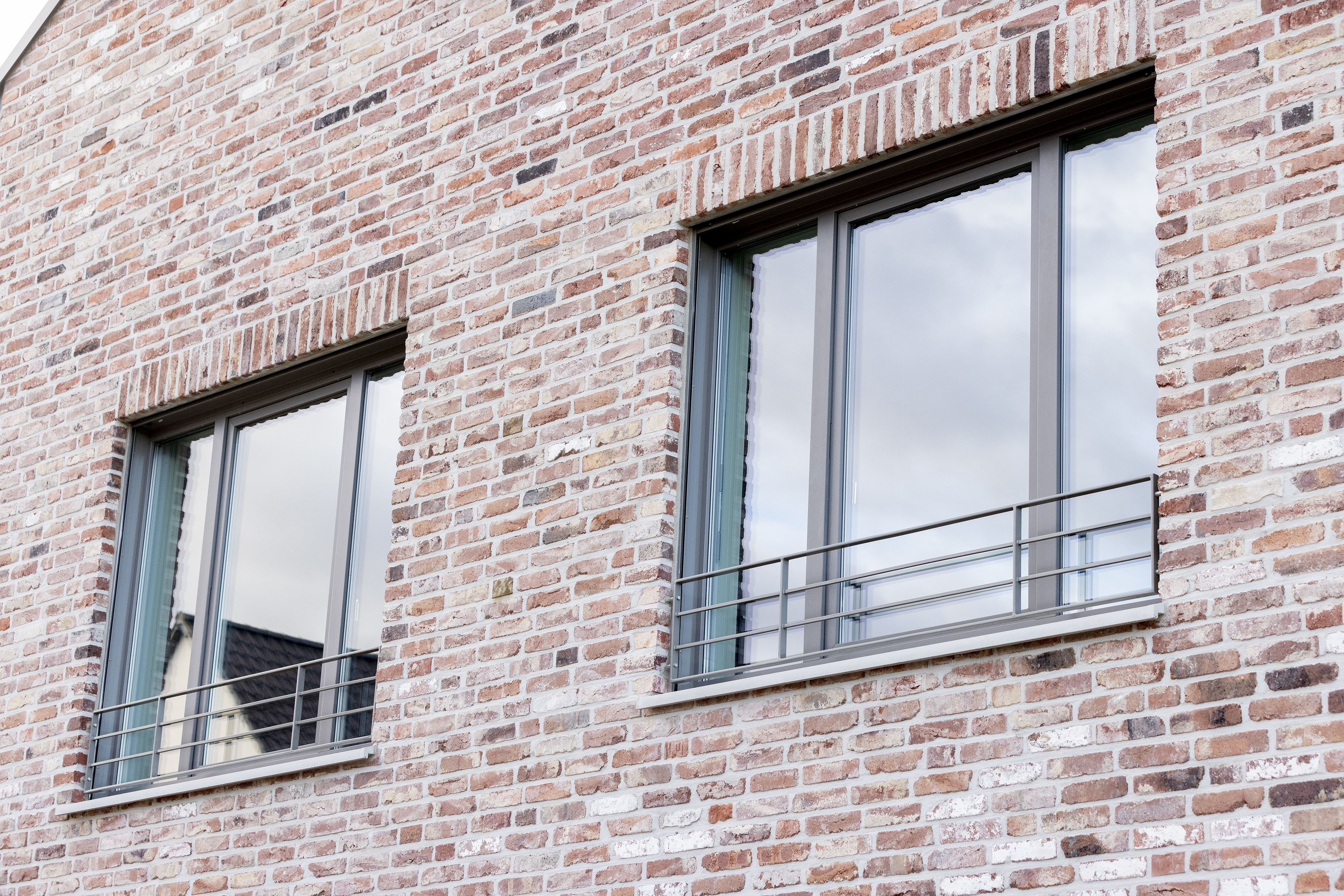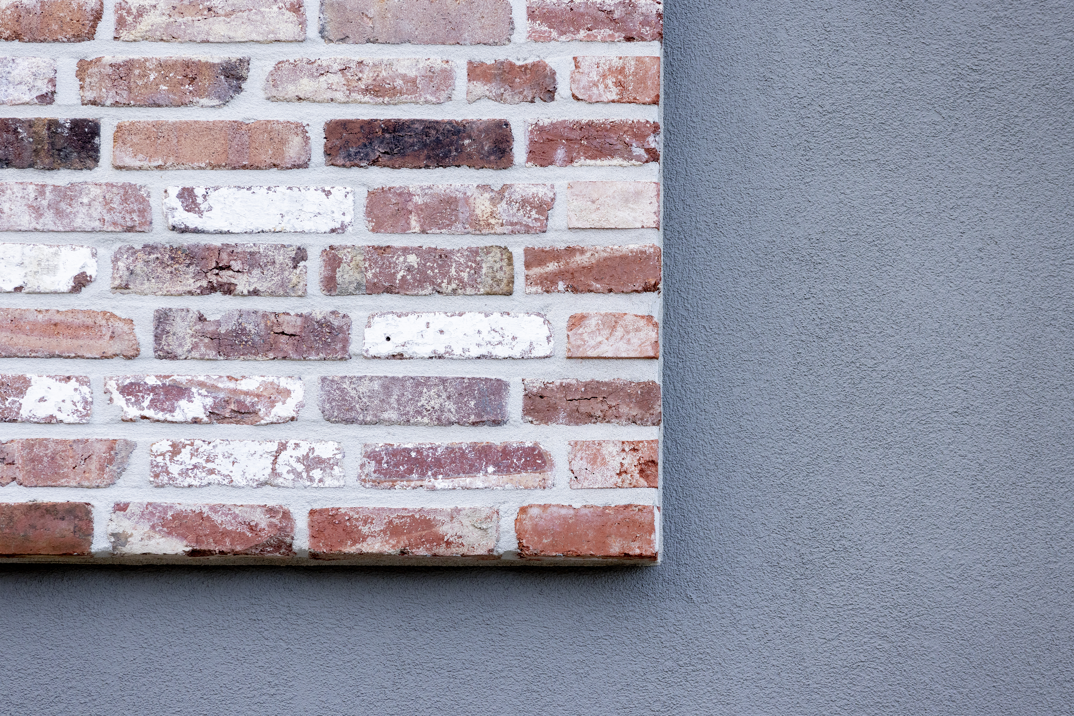 Die LoftLook-Klinker sind als Klinkerriemchen, Winkel und Läufer erhältlich – keines davon ist mit einem anderen völlig identisch. Schließlich haben sie Jahrzehnte an unterschiedlich ausgerichteten oder beanspruchten Fassaden verbracht. Daher wird auch das spätere Fassadenbild abwechslungsreich sein – der Grad lässt sich durch eine vorherige Sichtung und Mischungen der Chargen beeinflussen. Konkret bedeutet dies, dass bei der Verlegung die Riemchen aus unterschiedlichen Lagen der Lieferung entnommen und quergemischt werden. Jedes Riemchen ist 65 mm hoch, die applizierte Schichthöhe beträgt inklusive Lagerfuge 77 mm.