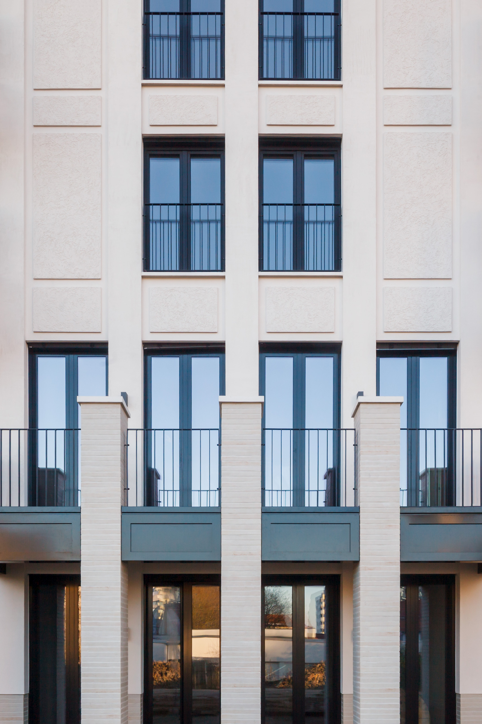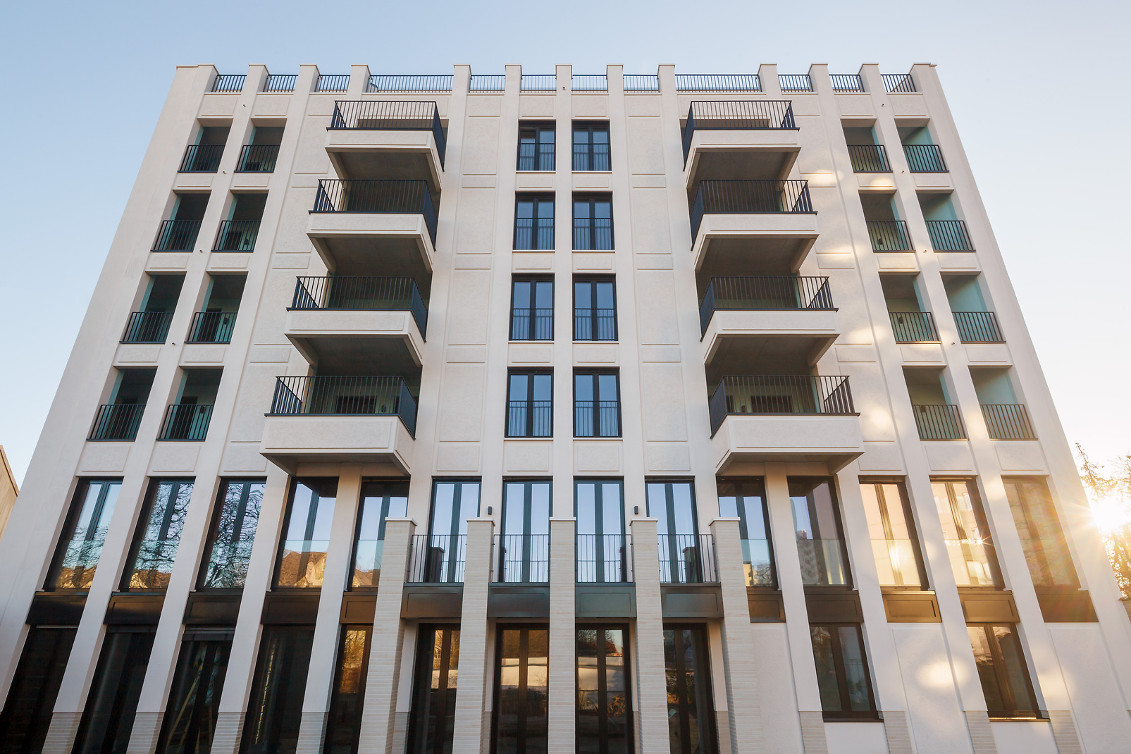 Dieses Ziel wurde erreicht: Ruhige Farben und das Zusammenspiel aus Putzvarianten, Klinker und Faserbeton-Elementen sorgen für eine dezente, natürliche und einladende Optik der Ostfassade, die das Entrée des Gebäudekomplexes bildet. Im Hinblick auf den Einsatz der Faserbeton-Elemente fügt der Architekt hinzu: „Ob an Brüstungen oder Fensterbänken oder als Abschluss der mehr als 20 Meter hohen Lisenen – die Faserbeton-Elemente von Caparol waren die ideale Lösung für das von uns entwickelte Architekturkonzept. Sie sind nicht nur besonders widerstandsfähig, sondern geben der Fassade auch einen individuellen und besonders wertigen Look."