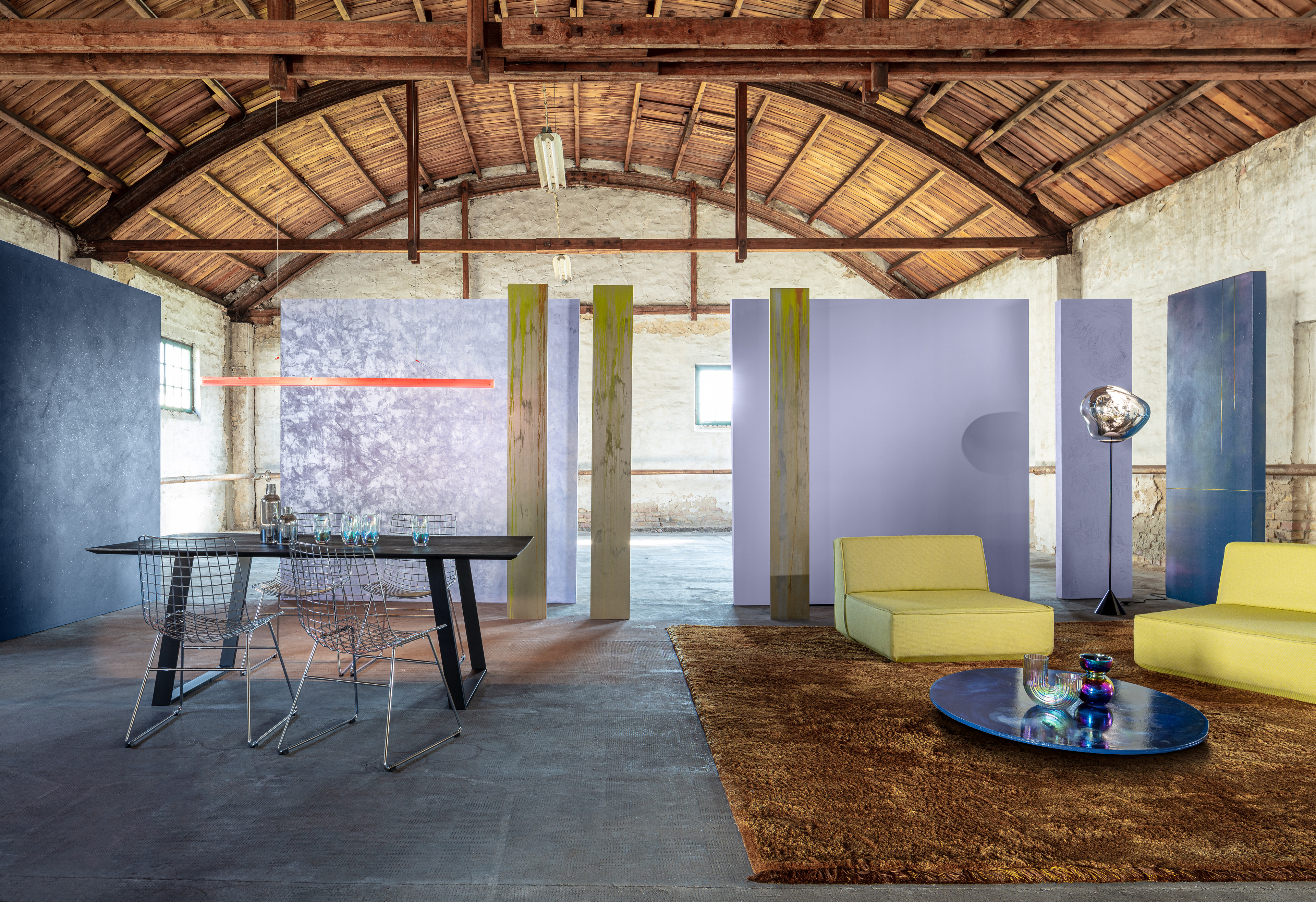 Farbwelt 1, „Polar Lights“ betitelt, schreibt die Grundanmutung der Jahresfarbe fort, wird ergänzt von Metalliceffekten, bleibt sphärisch-leicht – trotz einzelnen, substanzvollen Farbnuancen. Farbwelt 2 gibt sich etwas fester, erdiger mit feinen Nuancen aus dem Gelb- und Grün-Spektrum – „Down to Earth“ nennt sich diese Kombination. „Sun Wind“ schließlich nennt sich die Farbwelt 3, sie versammelt warme und kühlere Charaktere, leichte Blaus bis feste Brauns – und knüpft damit am ehesten an das Farbtrend-Jahr 2024 an.