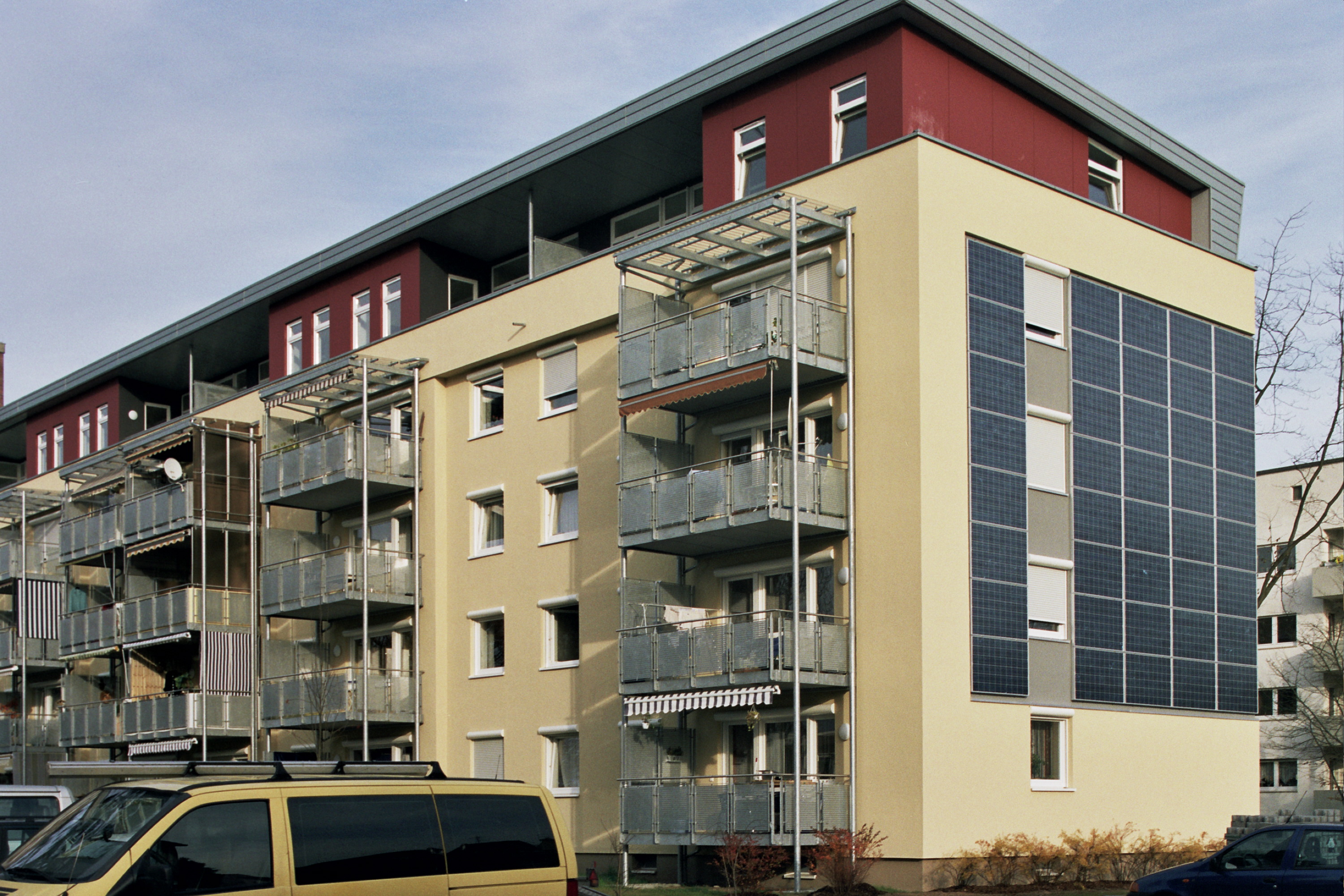 Durch die Wärmedämmung konnte der Energieverbrauch von ehemals 220 Kilowattstunden pro Jahr und Quadratmeter Wohnfläche auf etwa 80 Kilowattstunden pro Jahr und Quadratmeter Wohnfläche gesenkt werden. Diese Verringerung führt bei 1 545 Quadratmeter beheizter Wohnfläche und einem angenommenen Preis von fünf Cent pro Kilowattstunde zu einer Einsparung von jährlich 9 730 Euro, die unmittelbar den Bewohnern zugute kommt. Zu einer weiteren Senkung des Energieverbrauchs führt der Einbau einer 40 Quadratmeter großen Photovoltaikmodul-Fläche mit zwölf Kilowattpeak zur Stromerzeugung. Die Photovoltaikelemente wurden flächenbündig in die Wärmedämm-Fassade integriert. Sie wurden damit zu einem festen Bestandteil des Gebäudes und tragen wesentlich zum modernen Erscheinungsbild der gesamten Anlage bei.