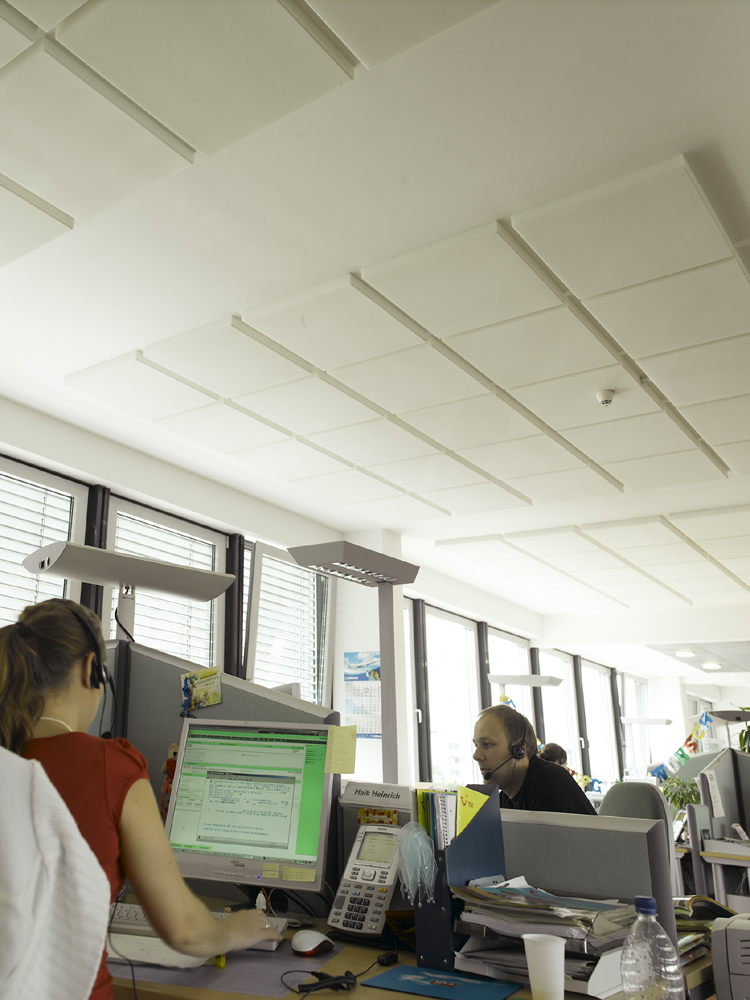 Ein gelungenes Beispiel, den Mitarbeitern des TUI Call-Centers in Hannover optimale Arbeitsbedingungen in puncto Raumakustik zu bieten, gelang jetzt mit neu entwickelten Absorberelementen. Die geschäumten Melaminharzplatten sorgen dafür, daß die beim Telefonieren extrem störenden Nachhallzeiten durch eine raumspezifische Schallabsorbtion deutlich verkürzt werden. Fragen Sie Maler- oder Stuckateurmeister nach den neuen CapaCoustic Melapor-Elementen von Caparol.