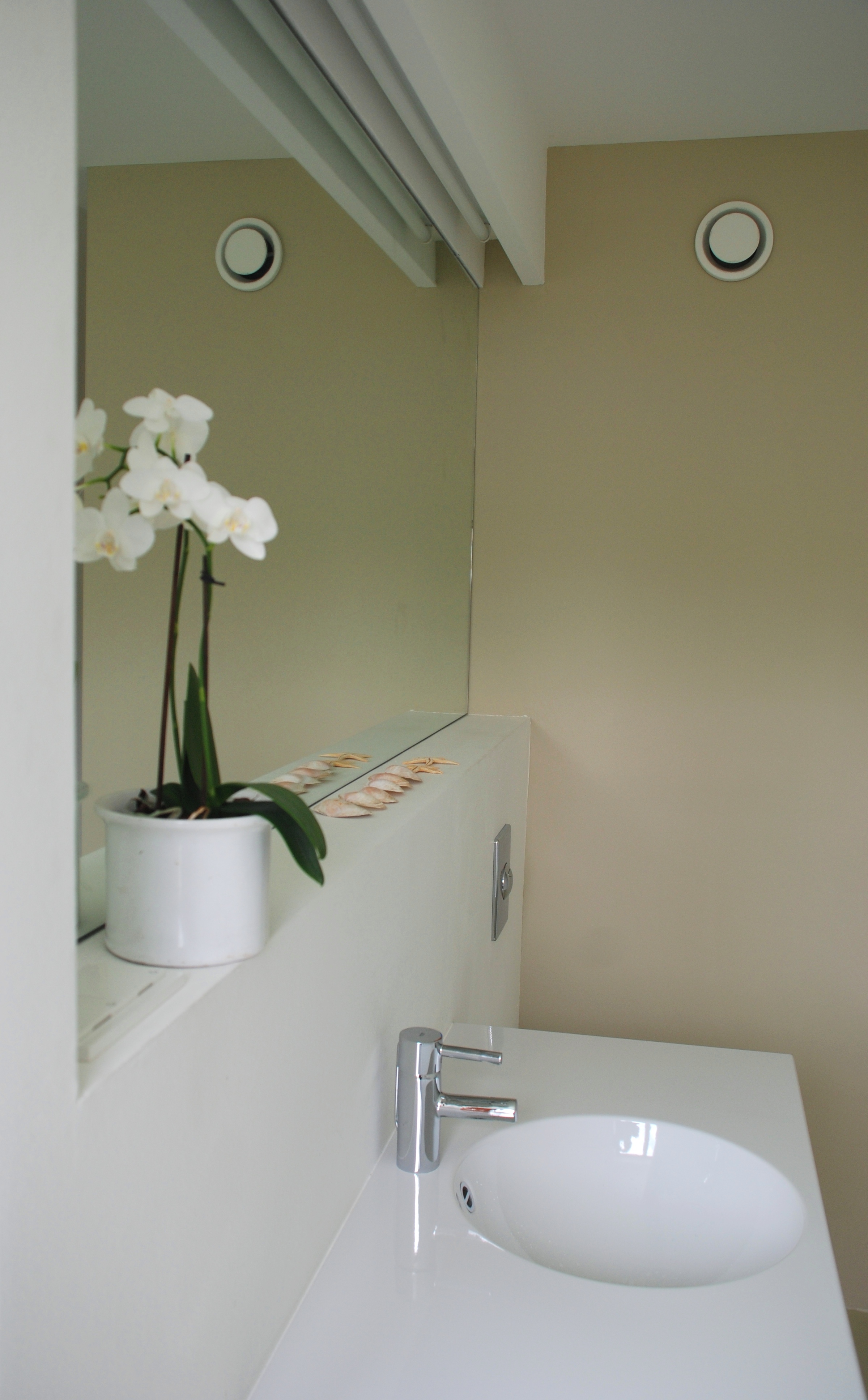 Als Bodenbeschichtung erhielt das Disboxid-System von Caparol den Vorzug vor Fliesen und Parkett. Alle Räume wurden durchgehend mit der äußerst strapazierfähigen Grundbeschichtung 462 plus Decksiegel 464 ausgestattet, von den Wänden lediglich per Kellenschnitt getrennt. Eine ganz spezielle Art der kombinierten Boden- und Wandgestaltung findet sich im Bad: Ton in Ton wurde der Spritzwasserbereich am Boden wie auch an den Wänden der Duschzelle mit ein und derselben wasserabweisenden Epoxidharzbeschichtung von Caparol versehen. "Das sieht ästhetisch aus und ist zudem besonders leicht in Ordnung zu halten", freut sich die Architektin. Über die Entscheidung, eine extrem robuste Bodenbeschichtung auf Epoxidharzbasis vollflächig aufbringen zu lassen, ist Cornelia Thielen im Nachhinein besonders froh; auch von der Kostenseite her. "Das Reinigen dieses Kunstharzbelags geht spielend leicht von der Hand. Die Robustheit des Decksiegels ist famos; man sieht keinerlei Laufspuren auf der Oberfläche. Und was die farbliche Gestaltung der Innenwände betrifft: Es war überhaupt gar kein Problem, den zur Bodenbeschichtung passenden Ton für die Wände zu finden", lobt Cornelia Thielen die Flexibilität und Kreativität des gebietszuständigen Caparol Planers und Objektberaters Horst Liedtke aus Gemünden.