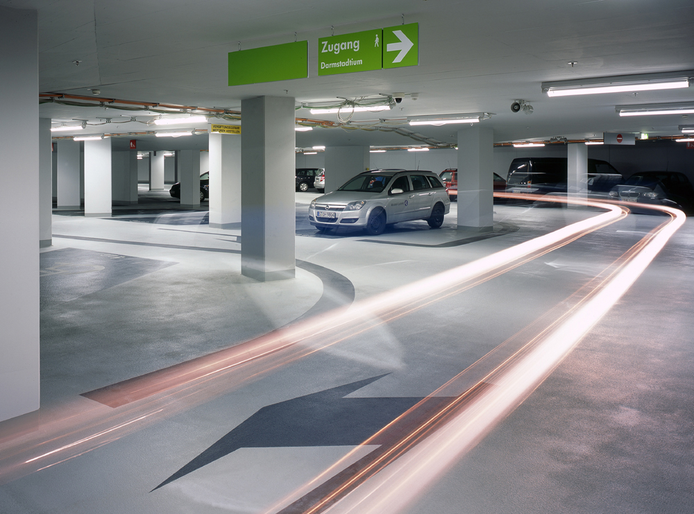 Auch in der aus zwei Ebenen bestehenden Tiefgarage, die auf rund 15.000 Quadratmetern 420 Parkplätze bietet, waren hochwertige Beschichtungen gefragt. Die Ausführung erfolgte entsprechend der gestalterischen Vorschriften des Parkhausbetreibers, der Q-Park GmbH. Für den Fahrbereich wurde ein helles Grau gewählt, für die Parkeinteilungen ein Anthrazitgrau und für die Decken ein helleres Grau als für die Fahrflächen. Die Bodenflächen von Tiefgaragen erfordern Beschichtungen, die extrem robust und dauerhaft sind, sich aber gleichzeitig zügig verarbeiten lassen. Für die Rampen und Ausfahrten war eine OS 8-Beschichtung gefordert, ein Beschichtungssystem ohne Anforderungen an die Rissüberbrückung. Für die Fahrbahnen und Stellplätze kam das Disboxid Parkhaus-System OS 11b zum Einsatz. Disboxid 444 Dickschicht wurde als dauernassbelastbare und gut chemikalienbeständige Epoxidflüssigharz-Beschichtung zur Beschichtung der Zisterne verwendet. In den Technik- und Lagerräumen fanden das diffusionsfähige Disbopox 447 Wasserepoxid, eine wäßrige 2K-Epoxidfestharzbeschichtung für befahrene Bodenflächen sowie das carbon-verstärkte Disbon 404 Acryl-BodenSiegel Einsatz, um die Arbeiten erfolgreich zu beenden. Für die Treppen wurde die "Disboxid 467 Hartkornschicht" gewählt. Weiterhin fanden verschiedene wässrige Dispersions-Innenwandfarben von Caparol für die Decken, Wände, Technikräume und Treppenhäuser Verwendung. Die Betreuung des Objektes erfolgte durch den Caparol-Planer- und Objektberater Peter Weidmann. "Aufgrund der räumlichen Nähe und der fachlichen Kompetenz hat sich mit Caparol über viele Jahre eine verlässliche Zusammenarbeit ergeben", so Jürgen Müller, Projektleiter für den Bau des Wissenschafts- und Kongresszentrums Darmstadt von der Bauverein AG
