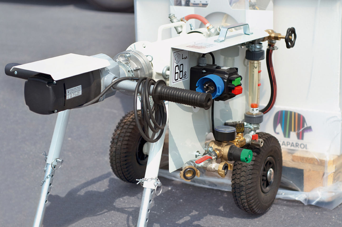 -5° aufweisen", erläutert Diplom-Betriebswirt Klaus Hartmann, Leiter Competence-Center Fassaden- und Dämmtechnik bei Caparol. Der Sicherungsbolzen ist entsprechend zu versenken. Natürlich müssen ein 230-V-Strom- sowie ein Wasseranschluss vorhanden sein und mit dem Capa-M Durchlaufmischer verbunden werden. Nach einem kräftigen Zug an der Reißleine des Containers kann der Materialfluss in den Durchlaufmischer starten, und die Verarbeitung beginnt.