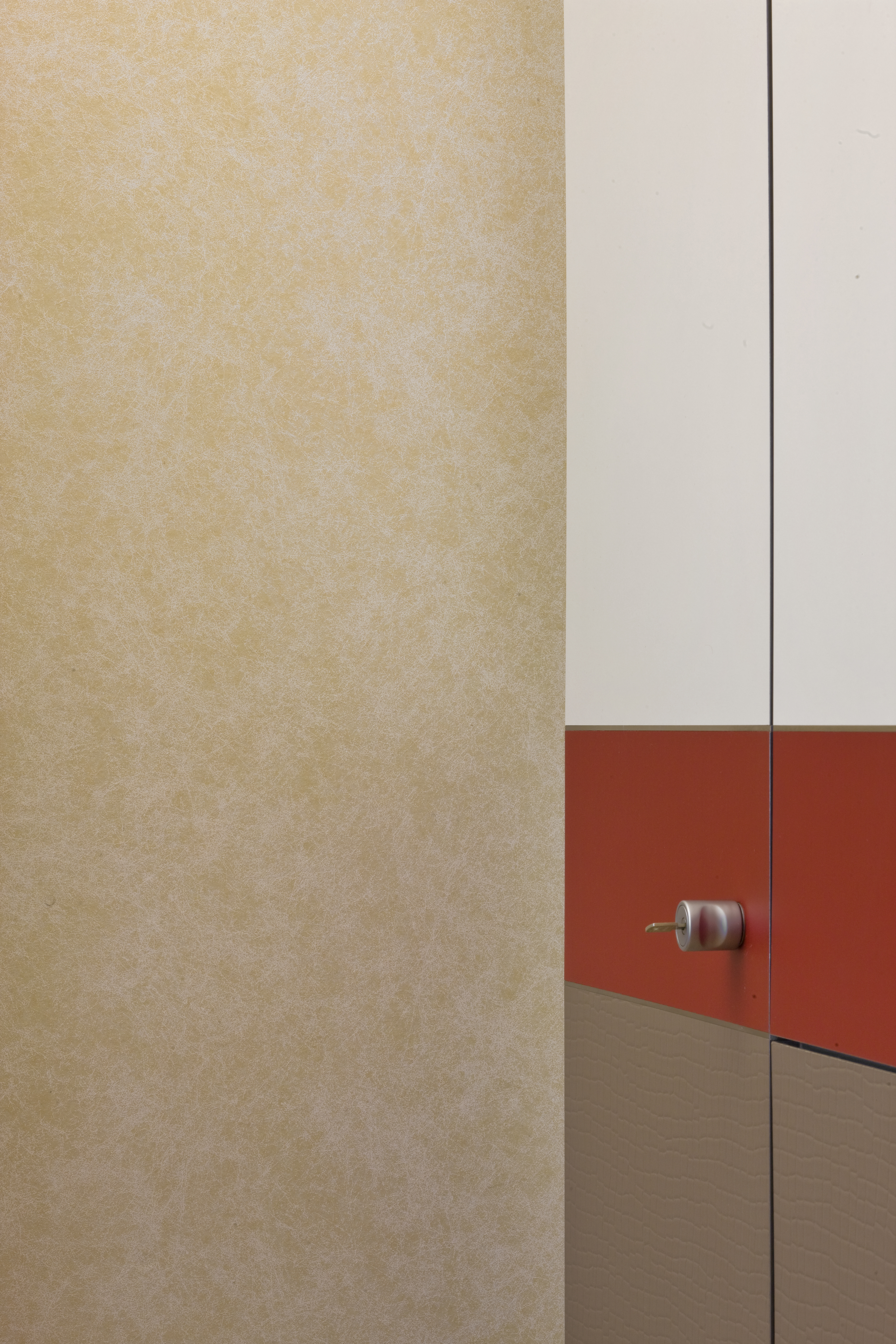 Nachdem die Wände in den Zimmern alle mit Akkordspachtel auf ein einheitliches Niveau gebracht worden waren, wurden sie mit FantasticFleece tapeziert. Dabei kamen verschiedene Dessins des stabilen Glasvlieses zum Einsatz, die Karl-Heinz Friedrich mit einer selbst gemischten Deko-Lasur matt lasierte. Wandplatten am Kopfende des Krankenbettes, hinter denen die Medizintechnik versteckt ist und an der gegenüberliegenden Wand - dort sind Flachbildfernseher integriert - sind als Akzentwände gestaltet und mit dekorativen Innenwandtechniken in Szene gesetzt. Die MDF-Platten an den Kopfenden der Betten spachtelte Karl-Heinz Friedrich mit ArteTwin Basic mit Gold und Silber Effekten, indem er beide Werkstoffe mit einer Spezialkelle aufbrachte, im unteren Teil schützt Linoleum in Kroko-Optik die Wände. Sehr edel präsentieren sich die Fernsehwände, die der Betriebsmaler im oberen Teil mit Calcino Decor Kalkpresstechnik spachtelte und mit Imprägnierpaste in Gold auf Hochglanz brachte. Im unteren Drittel schützt eine mattierte Glasscheibe die Wand. Auch auf der Scheibe sind goldene Bänder, die die Fläche lebendiger machen. Die Scheiben werden links und rechts neben der Fernsehwand über die komplette Zimmerbreite weitergeführt und schützen so die komplette Wand als so genannter "Rammschutz". Dunkelrote Farbbänder auf den Einbauschränken setzen gezielt Akzente. Nebenräume wie die Nasszelle, Umkleideräume oder Arbeitsräume wurden mit der hochwertigen Innenfarbe Indekoplus matt gestaltet, alle Decken sind mit der Vliestapete Accord Vlies tapeziert.