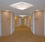 Die Beschriftung von Station und Zimmern mit sehr großen Buchstaben und Ziffern an den Flurwänden erleichtert Patienten und Besuchern die Orientierung und wirkt gleichzeitig als Gestaltungselement. Die Schrift steht auf den abgeschrägten Eckwänden, die als Akzentwände mit Arte Twin gespachtelt wurden. Die überwiegenden Wände erhielten eine strapazierfähige Beschichtung mit Latex Samt 10. In Nischenbereichen im Flur kam die quarzgefüllte Strukturfarbe MultiStructurStyle zum Einsatz, die mit Deco-Lasur veredelt wurde. Zusätzlich wurde ein Aufenthaltsraum mit Küche gestaltet, die Wände dort wurden auch mit ArteTwin gespachtelt.