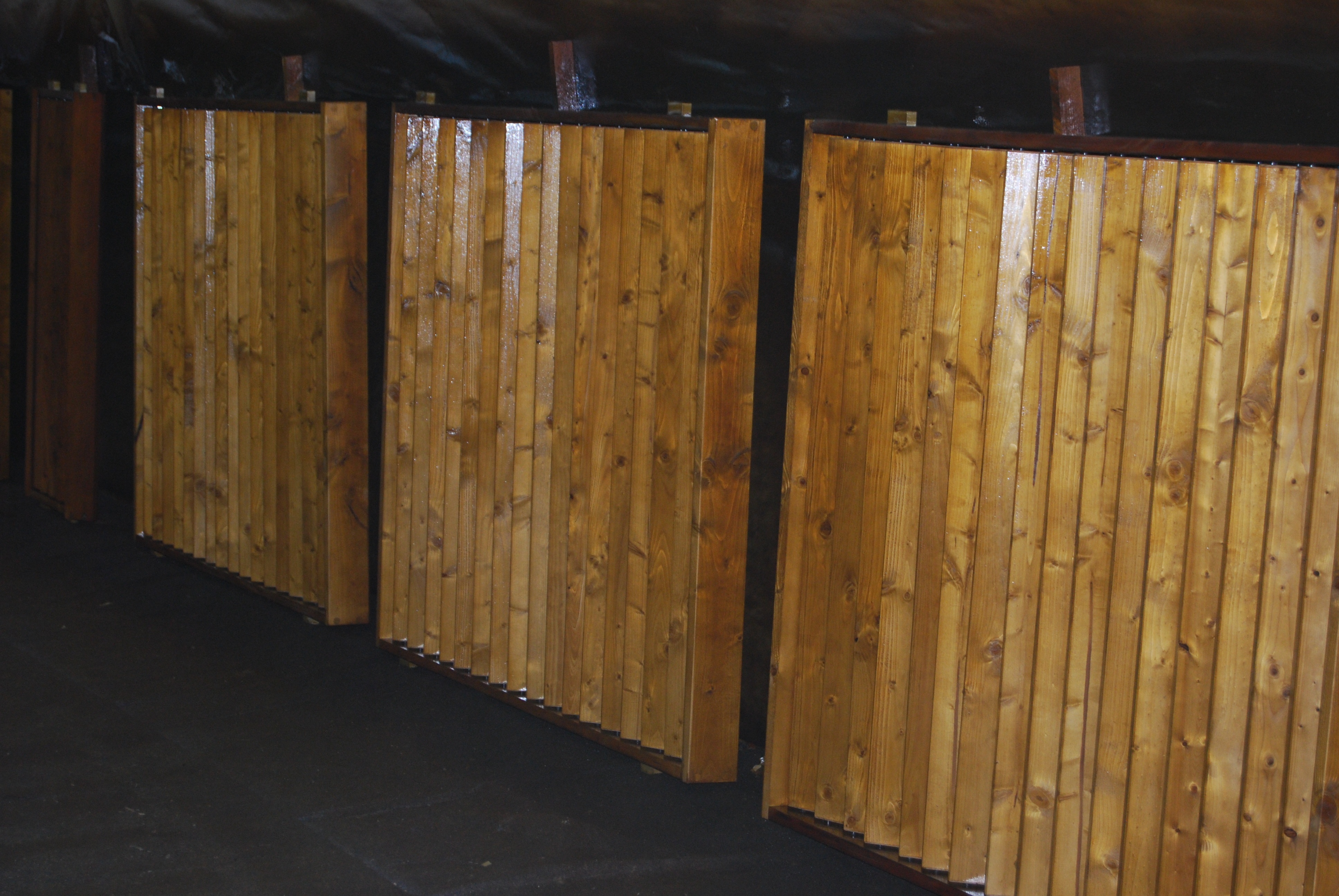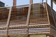 Im Jahr 2009 stand nun die erste Renovierung der Holzlatten-Fensterbeschattung an. Die Hölzer waren je nach Exposition mehr oder weniger stark verwittert und ausgeblichen. Der Auftrag ging an die Werner Tholl GmbH, ein Maler- und Umbauunternehmen aus Düsseldorf. Geschäftsführer Christoph Tholl erläutert: "Wir haben das Haus komplett ausund wieder angezogen. Das heißt, wir demontierten, behandelten und montierten die gesamte Holzfassade, also jede einzelne Holzlamelle." Insgesamt waren das ca. 5000 Quadratmeter Holzfläche. Vorgabe war, die renovierten Holzteile stets parallel zum Ausbau weiterer Teile so schnell wie möglich wieder einzubauen, damit die Fassade nicht großflächig leer wirkt. Christoph Toll erinnert sich: "Es war eine logistische Meisterleistung und eine Herausforderung, diesen Auftrag wirtschaftlich abzuwickeln."