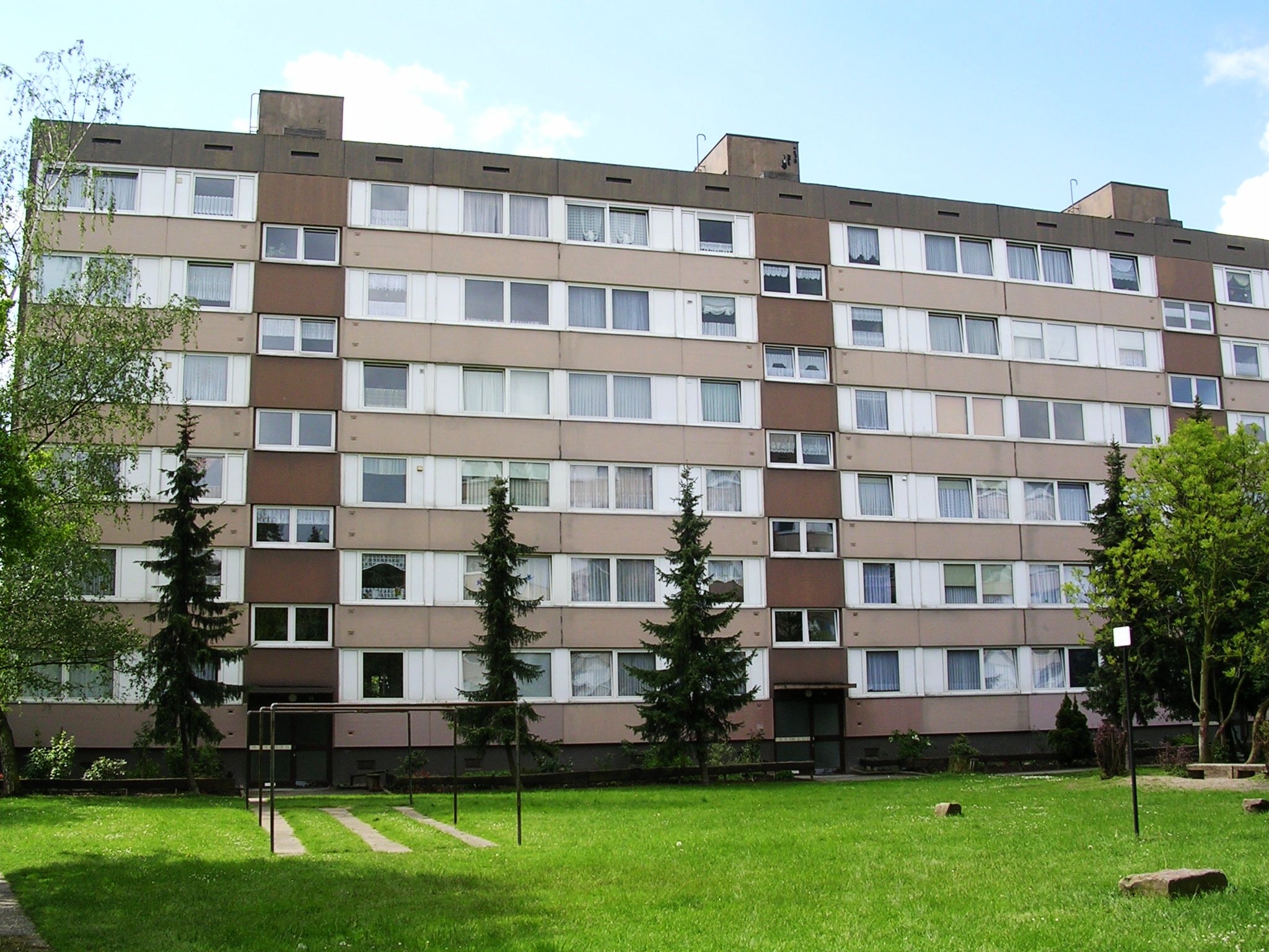 "Ohne Unterstützung durch die Stadt Dormagen wäre es uns kaum gelungen, die unterschiedlichen Interessen unter einen Hut zu bringen", weist Dietrich Giesen auf die Mitwirkung der Kommune hin. Bund, Land und die Stadt Dormagen unterstützen die energetische Fassadensanierung einschließlich Modernisierung der Außenanlagen mit einem Fördervolumen von insgesamt 700.000 Euro. Dieser Betrag, der etwa einem Drittel der Gesamtkosten entspricht, die für die Instandsetzung der fünf Mehrgeschossgebäude an der Pletschbachstraße aufzubringen waren, muss von den Eigentümern nicht zurückgezahlt werden. Denn der größte Teil der gewährten Fördermittel stammte aus dem Städtebauförderungsprojekt "Soziale Stadt - Stadtteile mit besonderem Erneuerungsbedarf". Als Grundlage für die Zuwendung war eine qualitativ hochwertige Sanierung vorgegeben worden, die das Leitbild "Flussviertel Hackenbroich" auch farblich widerspiegeln sollte. Dem entsprach das Farbkonzept, das das Caparol-FarbDesignStudio in enger Zusammenarbeit mit der Eigentümerkommission ausgearbeitet hatte; es umfasste verschiedene Gestaltungsvorschläge, die zur Historie und Gegenwart des Pletschbachquartiers vortrefflich passten. Mit der Umsetzung des genehmigten Entwurfs wurde Anfang 2008 begonnen, nachdem das neue Farbdesign allseits Zustimmung gefunden hatte; schon anderthalb Jahre später konnte die Sanierung der Fassaden abgeschlossen werden.