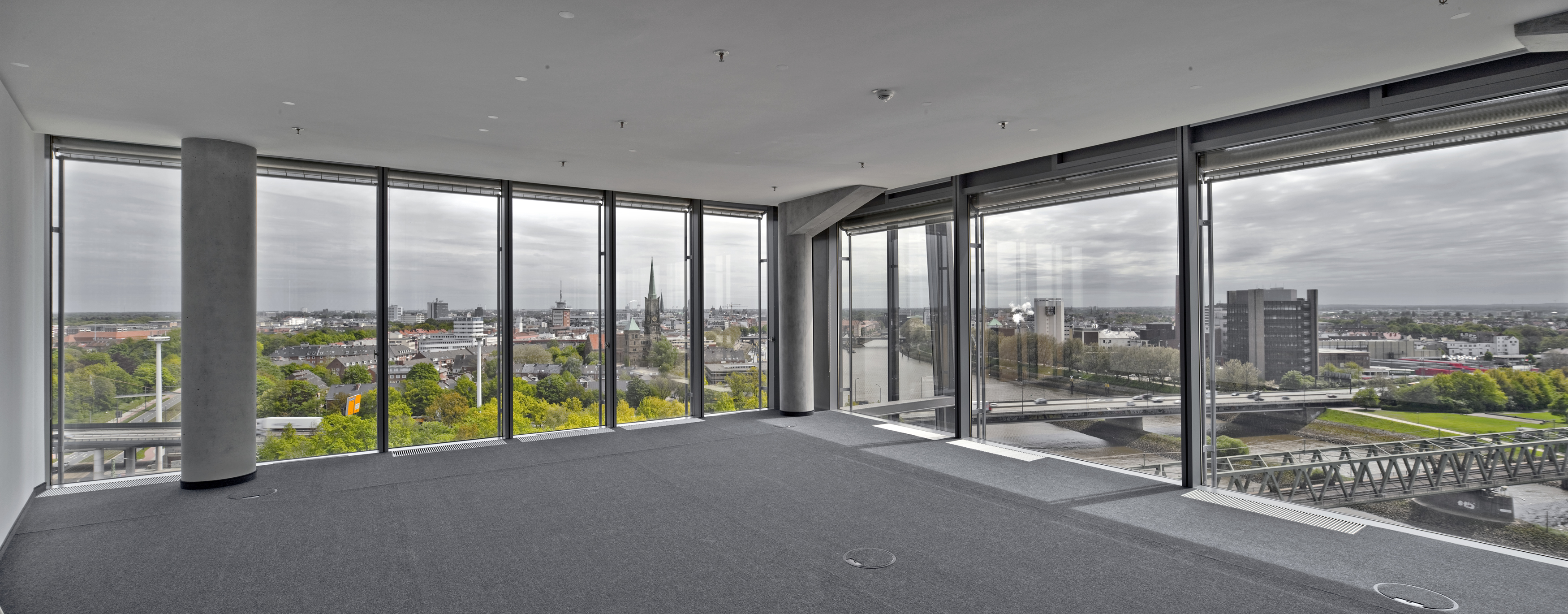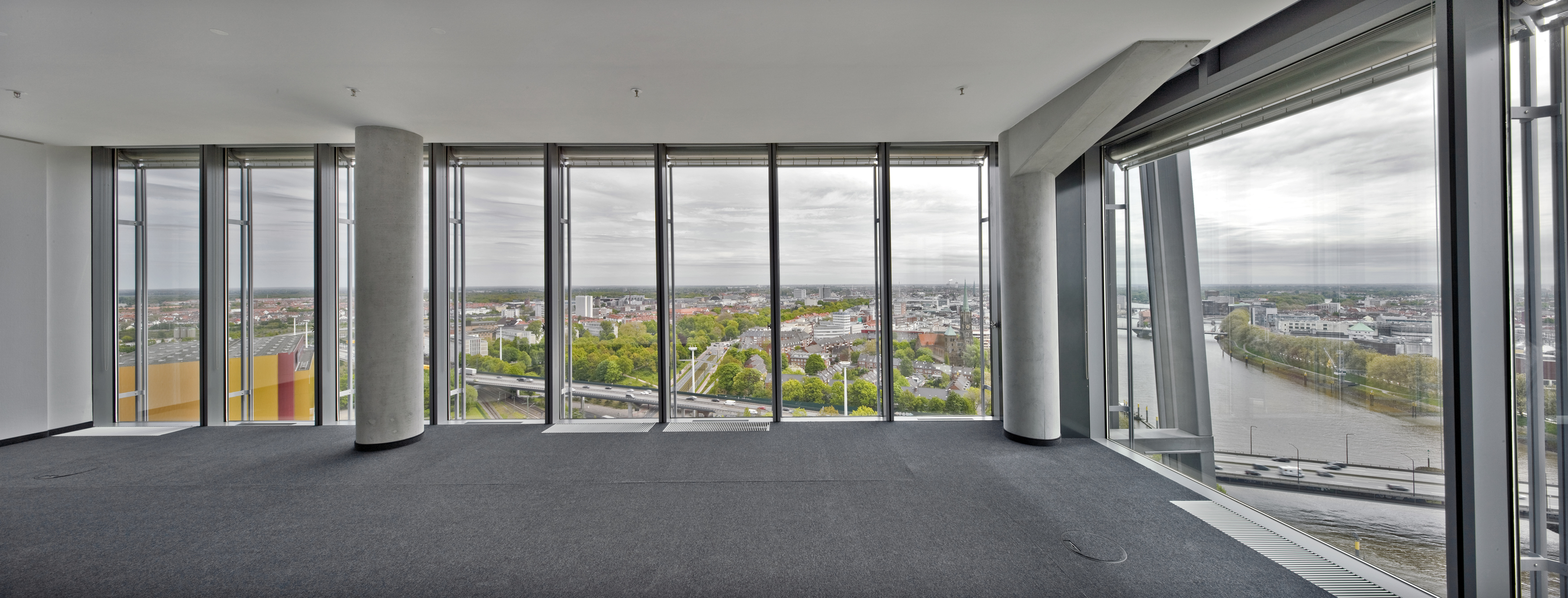 (pressebox) (Ober-Ramstadt, 07.12.2010) Der Ausblick ist grandios: Die Altstadt Bremens, die Weser und die historischen Hafenreviere liegen dem neu errichteten Weser Tower zu Füßen. Vom Stararchitekten Helmut Jahn, Architekturbüro Murphy/Jahn in Chicago entworfen, imponiert das atemberaubende Bürogebäude durch seine Höhe von 82 m und die dynamische, innovative Architektur mit einer Fassade ganz aus Glas. Bei einer Grundfläche von 19 m Breite auf 44 m Länge und 22 Stockwerken steht in dem Hochhaus eine Gesamtfläche von 18.000 m2 zur Verfügung: Platz für 800 Arbeitsplätze. Der Weser Tower, der zwischen Oktober 2007 und Ende 2009 auf dem Gelände des früheren Weserbahnhofs in Bremen errichtet wurde, ist das derzeit höchste Bürogebäude und neues Wahrzeichen der »Überseestadt« Bremen, einem Ortsteil im Überseehafengebiet. »Überseestadt« ist aber auch der Titel des Stadtentwicklungsprojekts, das neben dem Weser Tower auch ein neues Hotel, ein Varieté-Theater, Restaurants und weitere Bürogebäude beinhaltet.