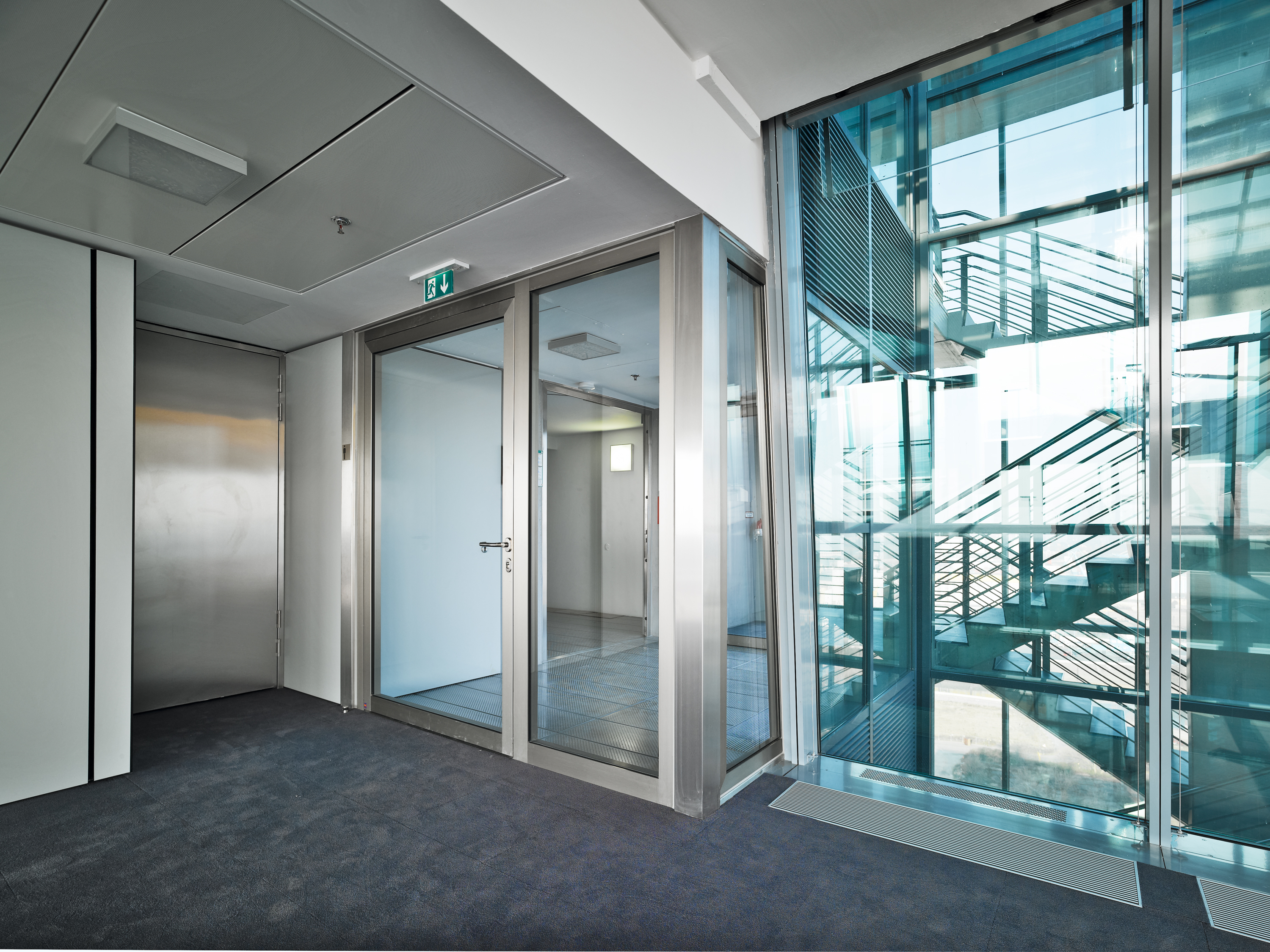 Die Innovationen setzen sich auch im Inneren fort: So gewährleistet emissionsfreie Geothermie die Energieversorgung. Außerdem sind im Nutzungsbereich keine Betonstützen vorhanden, denn die Skeletttragelemente aus Beton ragen über sich verjüngende Unterzüge in die Geschossdecken. Daraus ergibt sich im Inneren des Baus eine ungeahnte Weite mit großflächigen Wänden. Diese wiederum konnten nur mit einem genau für diese Zwecke konzipierten Produkt beschichtet werden: der Innenfarben CapaSilan, eine Kombination aus Siliconharz-Emulsion und spezieller Kunststoffdispersion. Der Grund: Auf Wand- und Deckenflächen mit starkem Streiflichteinfall bzw. äußerst ungünstigen Lichtverhältnissen kann kaum ansatzfrei Farbe aufgetragen werden. In diesem Segment ist CapaSilan mit dem Deckvermögen der Klasse 1 und der langen Offenzeit der Problemlöser schlechthin, zudem ist sie emissionsminimiert und frei von Lösungsmitteln sowie foggingaktiven Substanzen, was wiederum perfekt das zukunftsweisende Konzept des Bauwerks stützt. Ist das Produkt erst einmal verarbeitet, ist es mineralmatt und scheuerbeständig.