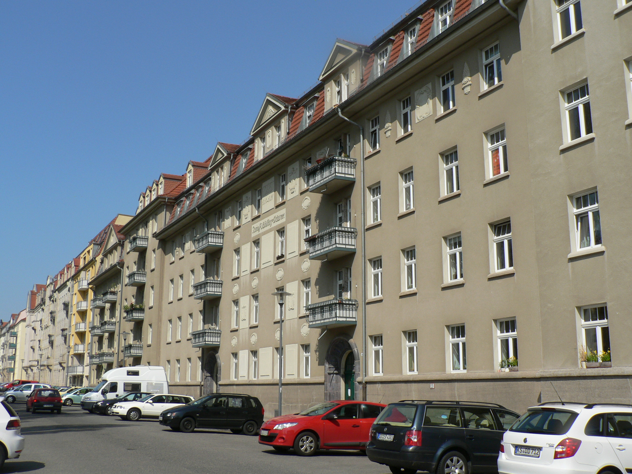 1972 übernahm die Johannstädter Wohnungsgenossenschaft die Wohnanlage und sanierte sie zu Beginn der 90er Jahre im Bewusstsein ihrer Verantwortung mit erheblichem finanziellen Aufwand. Angesichts strenger denkmalschützerischer Regeln, die Eingriffe in die Gebäudehülle geschützter Bauwerke untersagte, spielte die Wärmedämmung in diesem Zusammenhang keine Rolle. Erst mit der Novellierung der Wärmeschutzverordnung in den Jahren 2009 und 2011 rückte der Gesetzgeber diesen Aspekt stärker in den Vordergrund. Heute schreibt er im Neubau nicht nur die Dämmung der Gebäudehülle, sondern auch von Keller- und letzter Geschossdecke vor. Im Altbau werden solche Maßnahmen nur unter bestimmten Bedingungen gefordert. Dennoch hat die Dresdner Wohnungsgenossenschaft Johannstadt eG die energetische Sanierung von Anfang an ernst genommen und als wichtigen Weg zur Senkung der Betriebskosten betrachtet.