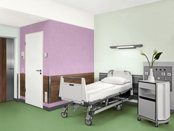 Zur Farbauswahl kommen je nach Funktionsbereich besondere Anforderungen an die Belastbarkeit der Oberflächen und an die Hygiene hinzu. In stark frequentierten Gebäudeteilen wie Fluren, Treppenhäuser und Empfangsräumen sollten bevorzugt Materialien eingesetzt werden, die hoch reinigungsfähig sind und eine hohe Widerstandsfähigkeit gegenüber mechanischen Belastungen aufweisen, etwa abriebfeste Wandfarben. Im OP- und Behandlungsbereich sind darüber hinaus Beschichtungsmaterialien gefragt, die desinfektionsmittelbeständig und dekontaminierbar sind. Hier spielt das Thema Nachhaltigkeit eine große Rolle. "Krankenhäuser haben in der Betreiberphase häufig mit hohen Kosten zu kämpfen", sagt Objektberater Gradinger. Eine gute Lebenszyklusbilanz aufgrund langlebiger Beschichtungssysteme erfüllt Umweltschutzansprüche und rechnet sich für jeden Betreiber.