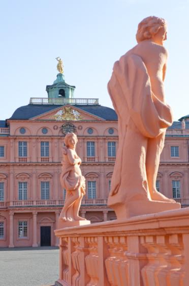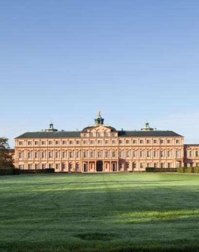 Die gewaltige dreiflügelige Schlossanlage gilt als die älteste Barockresidenz am Oberrhein und gehört zu den wenigen, die den Zweiten Weltkrieg unbeschadet überstanden haben. Sie orientierte sich als Erste - wie danach so viele Bauten von deutschen Fürsten des Barock - an Versailles, der Residenz des französischen Sonnenkönigs Ludwig XIV. Abweichend vom damaligen Usus, Prunkbauten nach Süden auszurichten, öffnet sich die Anlage nach Westen hin und richtet so den Blick auf den Rhein und das von König Ludwig auf der Rheininsel Grießheim erbaute Fort Louis. Drei Straßen führen strahlenartig auf das Schloss zu, ganz wie in Versailles. Der zunächst frei stehende Hauptbau des Jagdschlosses wurde bis auf die Kellergewölbe abgetragen, wesentlich verbreitert und an die bestehenden Flügelbauten angeschlossen. Das lang gestreckte Haupthaus, das Corps de Logis, trennt die Stadt und den Schlosspark, die beiden Seitenflügel rahmen den Ehrenhof ein, der sich über die Ehrenhofterrassen zur Stadt hin öffnet.