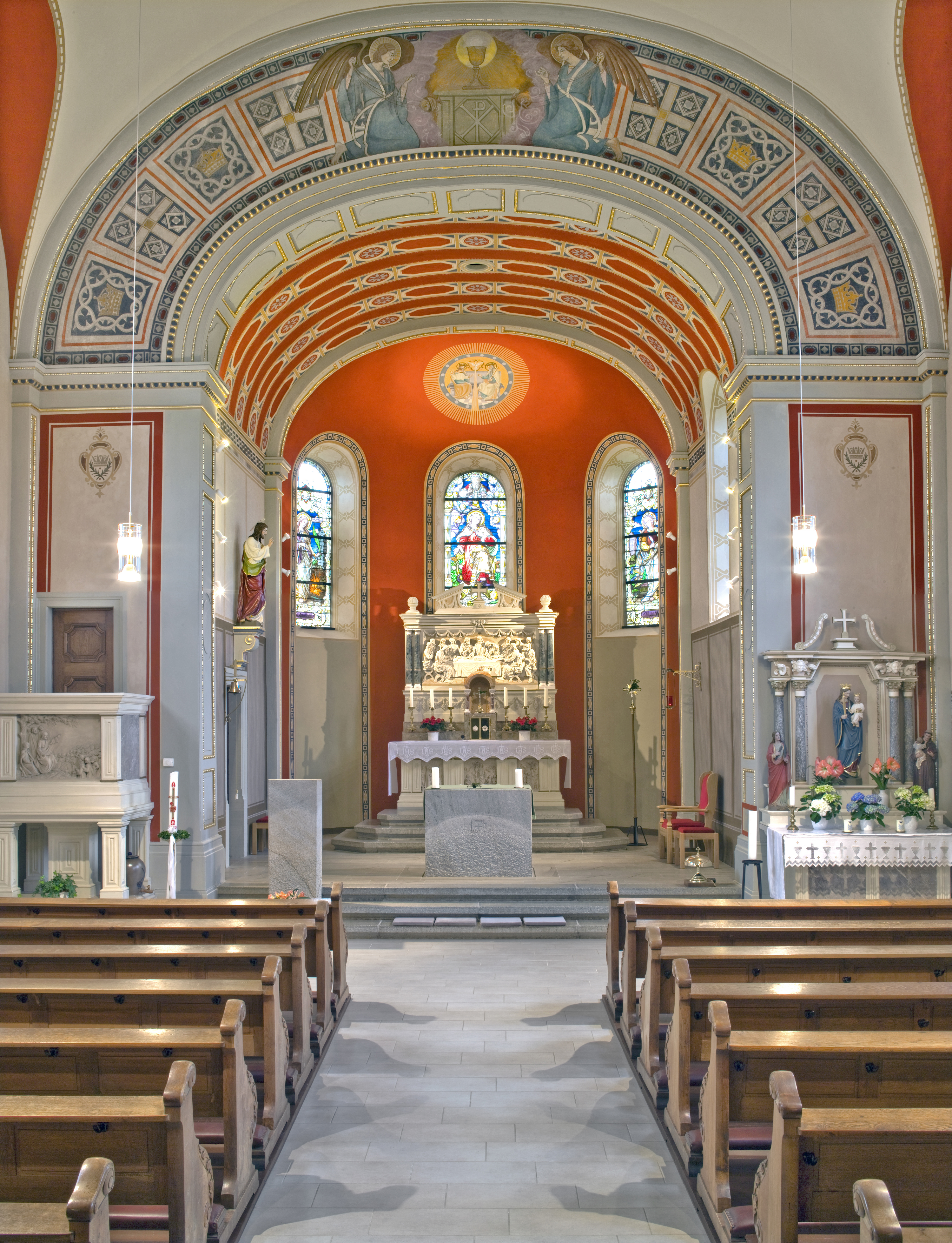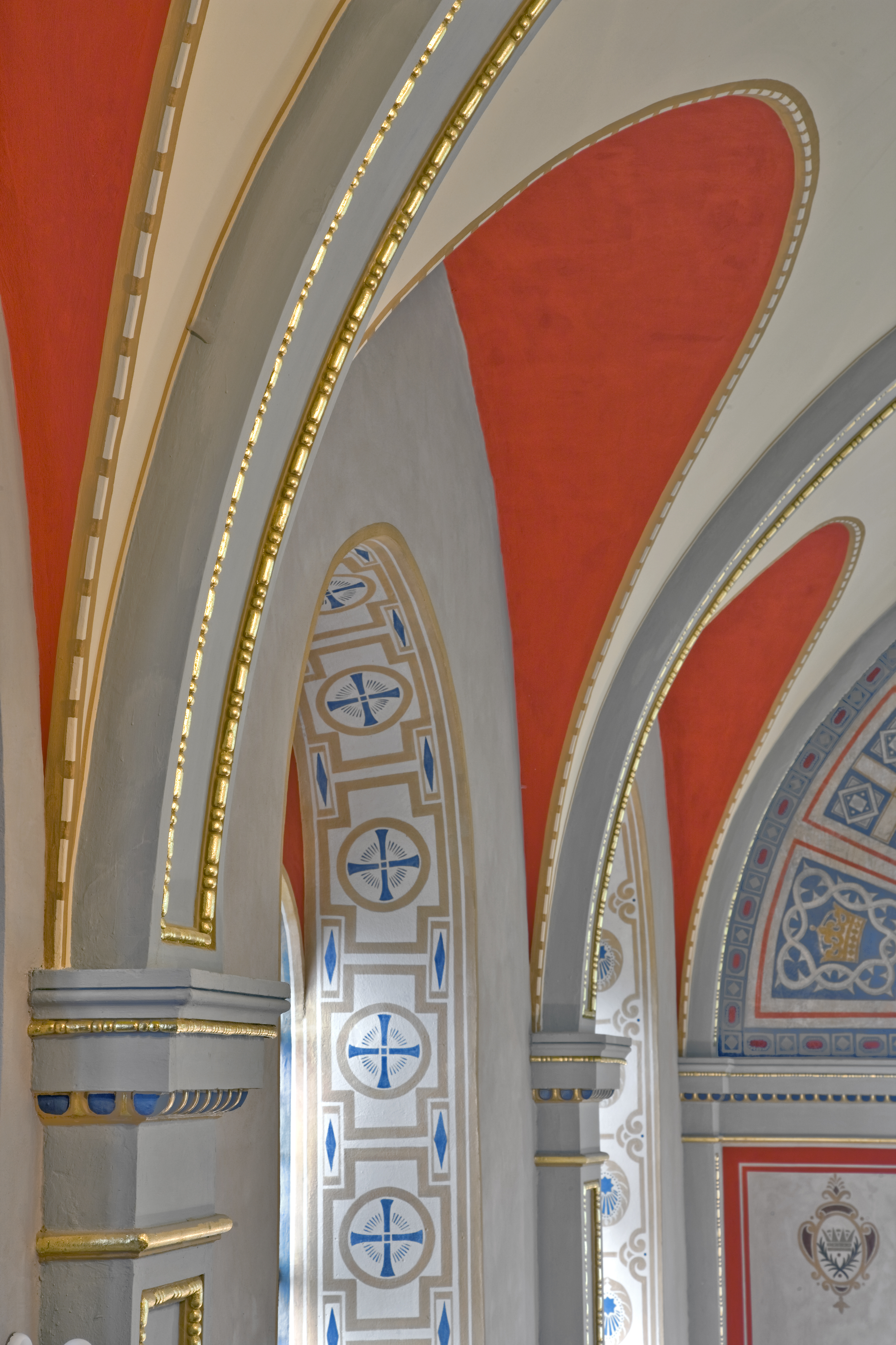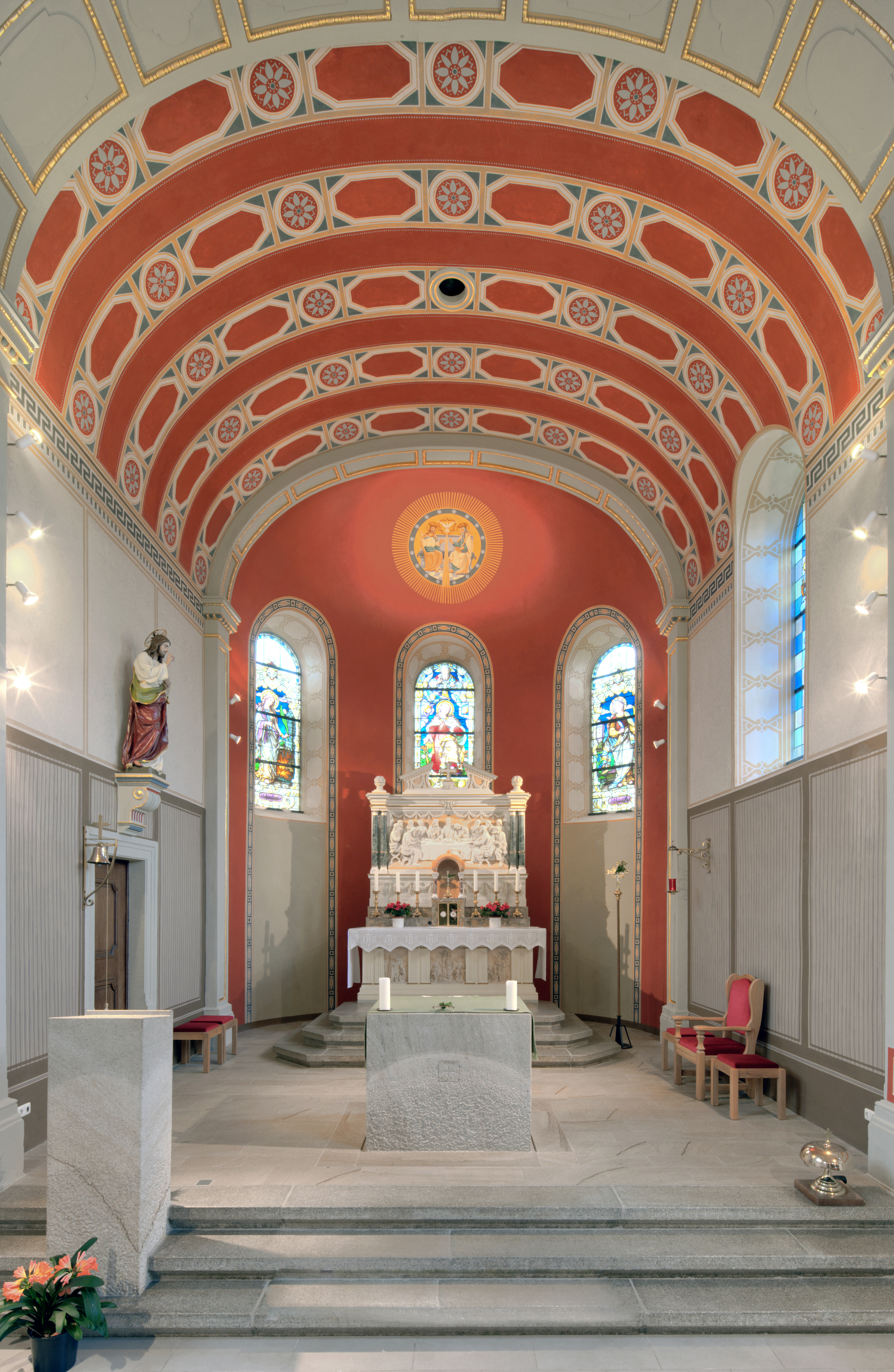 Heute wirkt die renovierte Kirche wieder wie ein Gesamtkunstwerk aus einem Guss: Die Farben, Motive und Ornamente gliedern und schmücken den schlichten Kirchenraum. Sie geben dem Gotteshaus eine eigene Identität und der Kirchengemeinde eine kulturelle wie spirituelle Heimat.