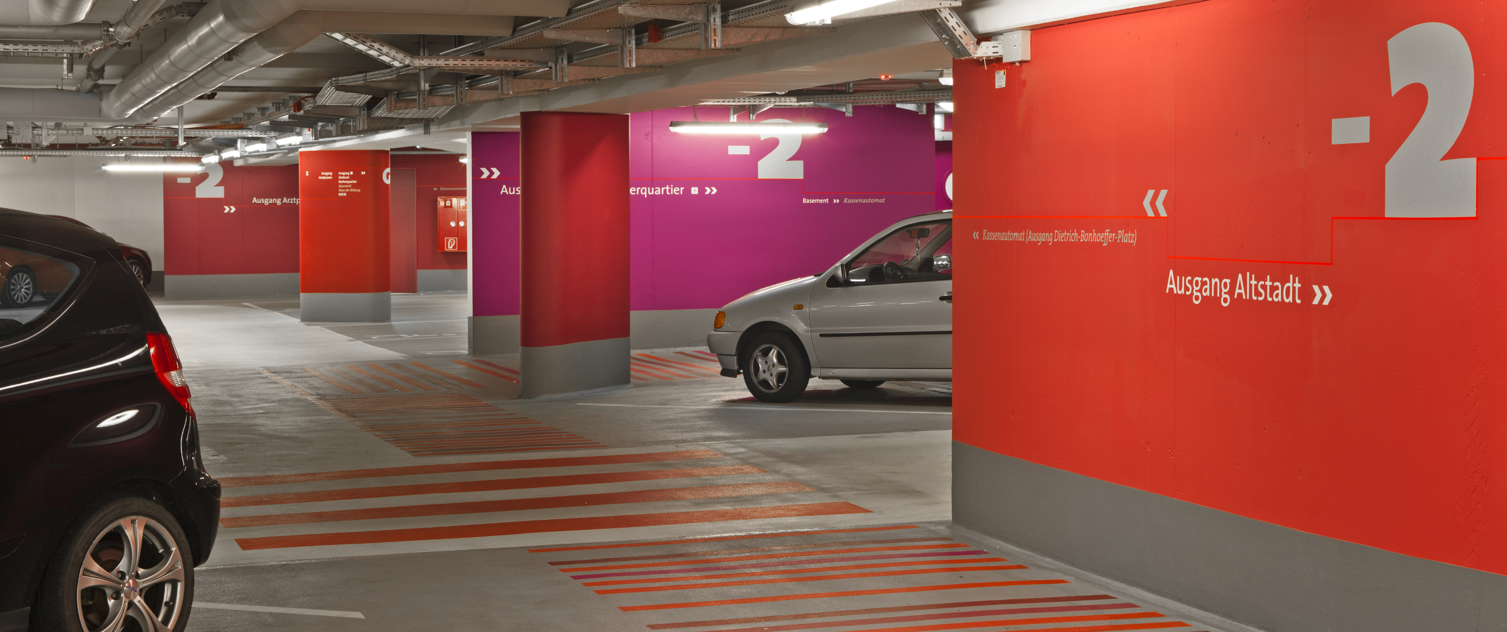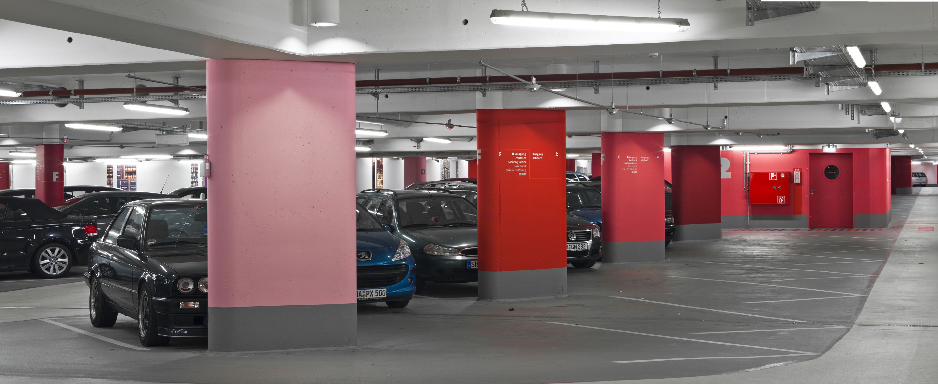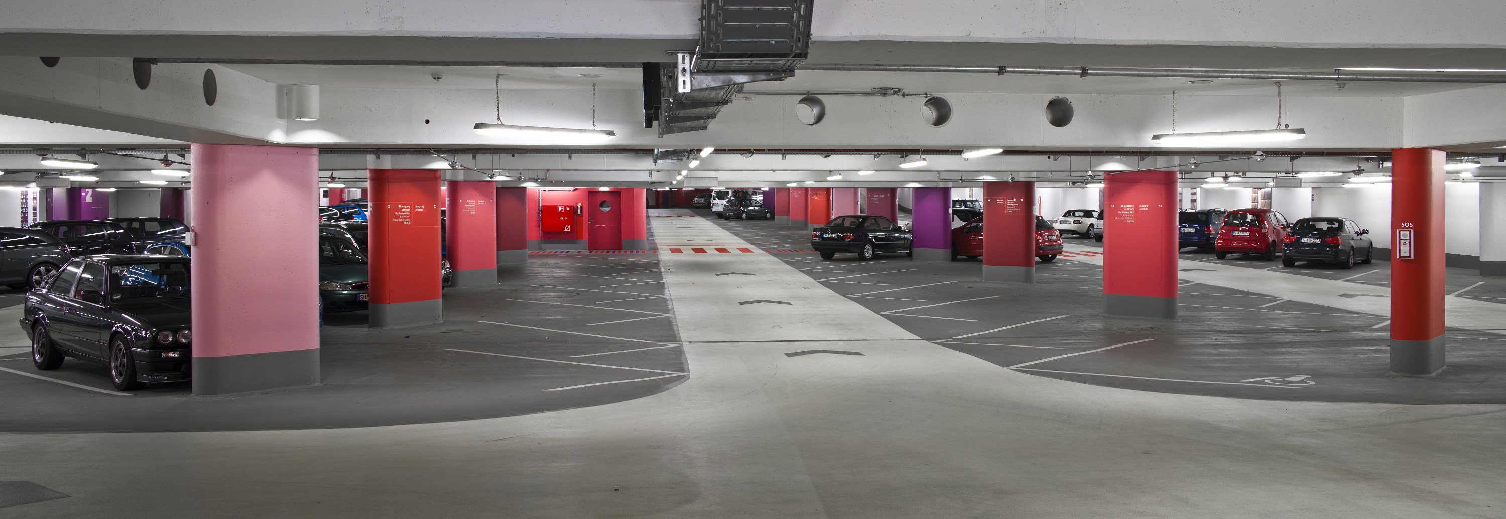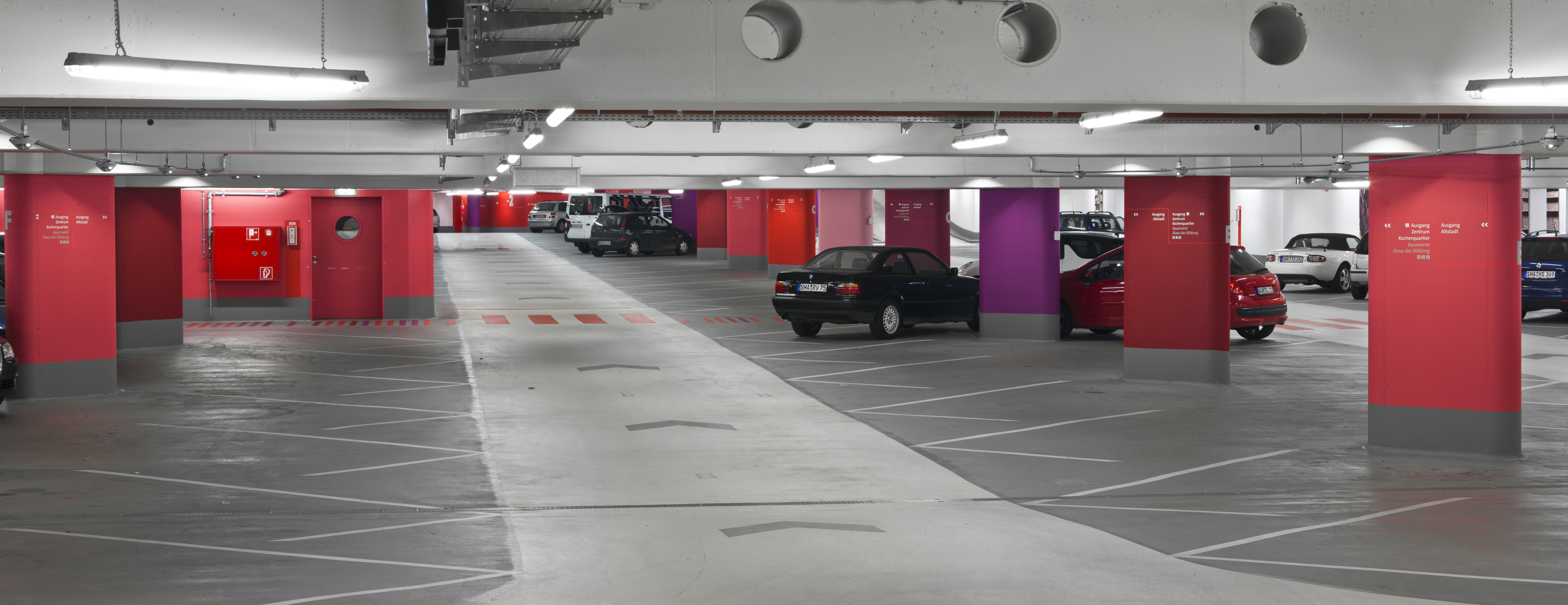 Licht und Farbe bieten Sicherheit und Orientierung in der Tiefgarage