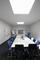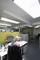 Sowohl zum Brombeerton der gespachtelten Wand als auch zu den wechselnden Logofarben passt das frische Apfelgrün in den Büros, die sich an den Empfangsbereich anschließen. Es gibt ein Großraumbüro sowie einzelne, durch Glasscheiben abgetrennte Büros für die Techniker. Im Besprechungsraum, im Bemusterungsraum und im Büro des Chefs haben sich die Köhlers für die hochwertige Wandbeschichtung Capaver Fantastic Fleece in einem hellen Grauton entschieden. Für dieses Produkt aus Glasvlies ist eine Auswahl verschiedener Designstrukturen erhältlich, die in einem speziellen Druckverfahren mit weißer Farbe aufgedruckt werden. Ihre raffinierte Optik entfaltet die Wandbeschichtung dann beim nachfolgenden Lasieren mit Capadecor DecoLasur: Durch das unterschiedliche Saugverhalten von bedrucktem und unbedrucktem Glasvlies treten die Designs deutlich hervor, und es entsteht eine strukturierte Oberfläche mit eindrucksvoller Tiefenwirkung und stofflicher Anmutung. Die Verarbeitung dagegen ist unaufwendig: „Ein Lasurauftrag reicht aus“, betont Dirk Köhler. Selbstredend sind alle Arbeiten durch eigene Mitarbeiter ausgeführt.