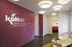 Unterstützung bekamen sie dabei von Expertin Sybille Abel aus dem Caparol-FarbDesignStudio, die Vorschläge zur Gestaltung machte und eine Visualisierung des Farbkonzepts nach den Vorgaben von Linda Köhler lieferte. Der Einsatz des neuartigen, vielfältig abtönbaren Dispersionsspachtels StuccoDecor DI LUCE in Violett an einer Wand im Empfangsbereich entspricht der Empfehlung der Caparol-Farbdesignerin. Die spezielle Glättetechnik schafft eine spiegelglänzende Innenwandoberfläche und ermöglicht eine edle Anmutung mit faszinierenden Lichtreflexen. „Er kommt an so einer Stelle sehr gut zur Geltung und schafft eine einladende Atmosphäre“, findet Abel. Auch die Farbwahl gefällt ihr: „Der Brombeerton ist ja gerade aktuell und wird gern anstatt Rot genommen.“ In wechselnden Farben kann ebenfalls im Eingangsbereich das Köhler-Logo leuchten, das in eine Trockenbaukonstruktion an der Decke hineingefräst wurde. Die Konstruktion ist mit LED-Leisten versehen, die Farbwahl erfolgt bequem per Fernbedienung.