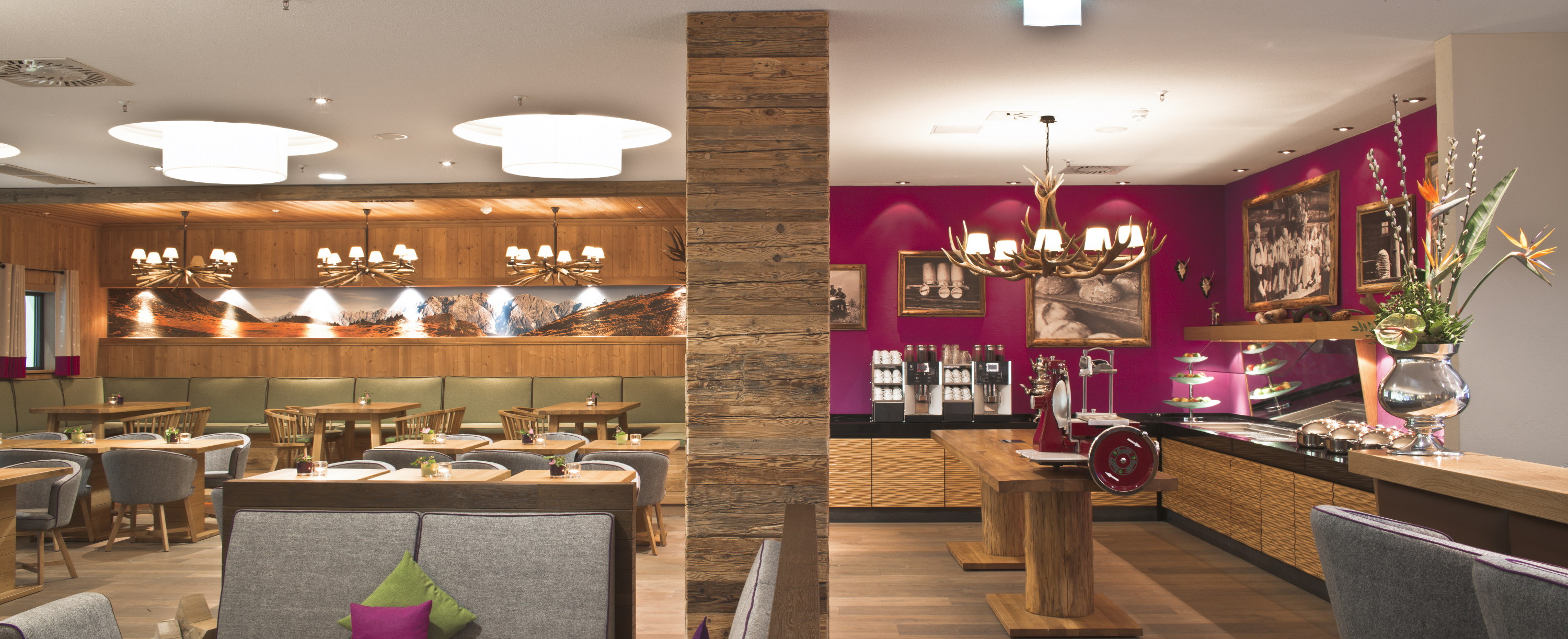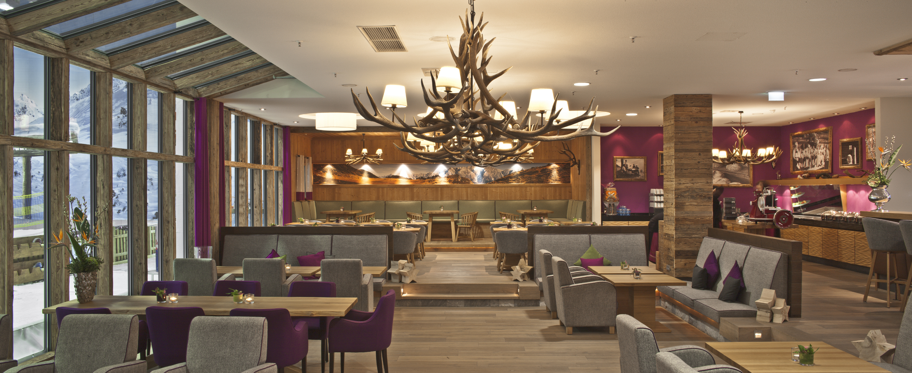 Zur perfekten Technik kommt die Ästhetik: CapaCoustic Structure passt wunderbar in das Designkonzept des Hotels Fire & Ice. Der weiße, feine Putz korrespondiert in der Anmutung mit der fein-pulvrigen Schneedecke auf der Skipiste, die durch die Panoramafenster zu sehen ist. Bei genauer Betrachtung wecken die kristalline Struktur des Akustikputzes und der weiße Farbton Anklänge an Schneekristalle. So findet sich sinnbildlich das Thema „Eis“ an der Akustikdecke wieder, während die Holzböden und Geweihleuchten warm anmuten und die feurige Seite abbilden.