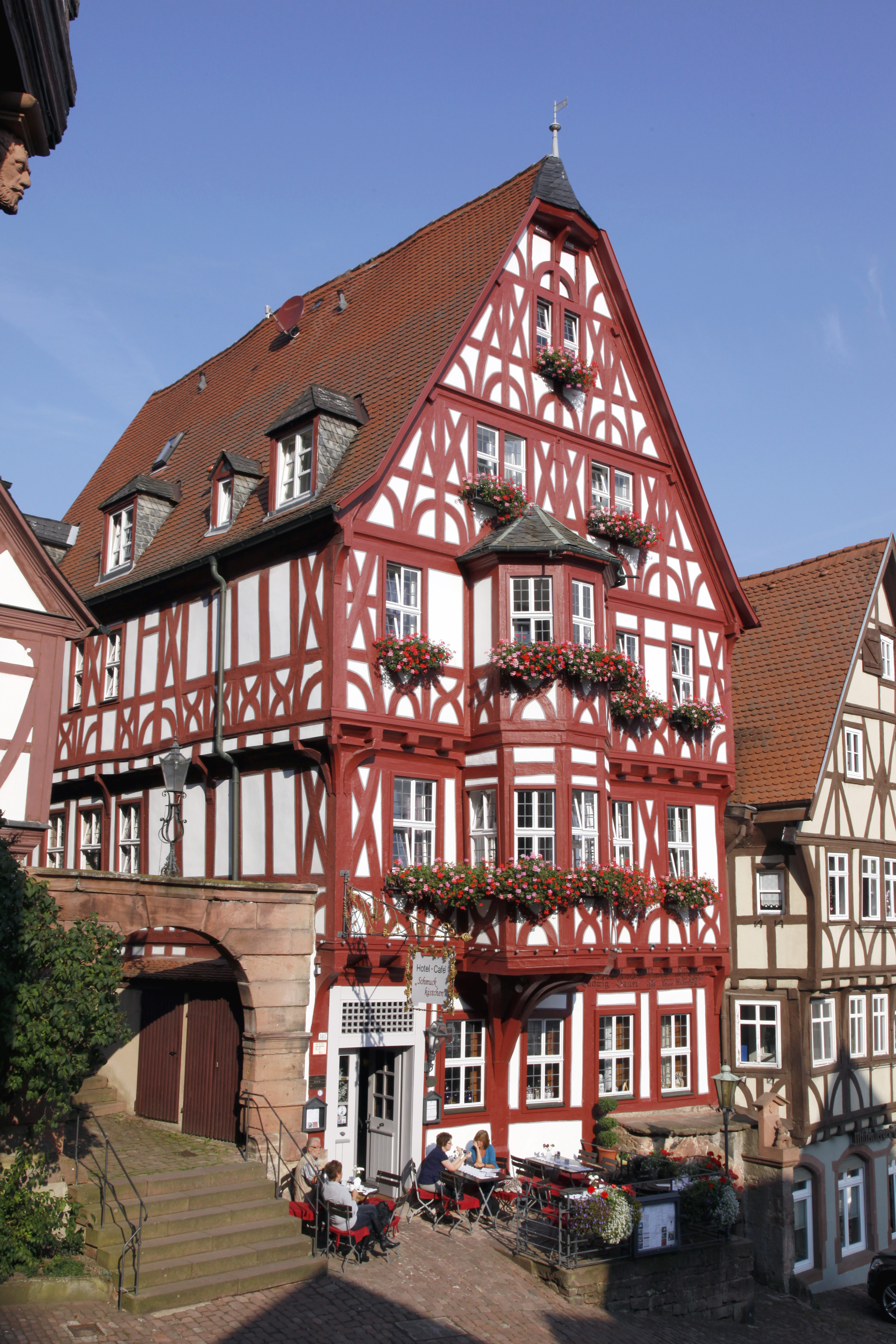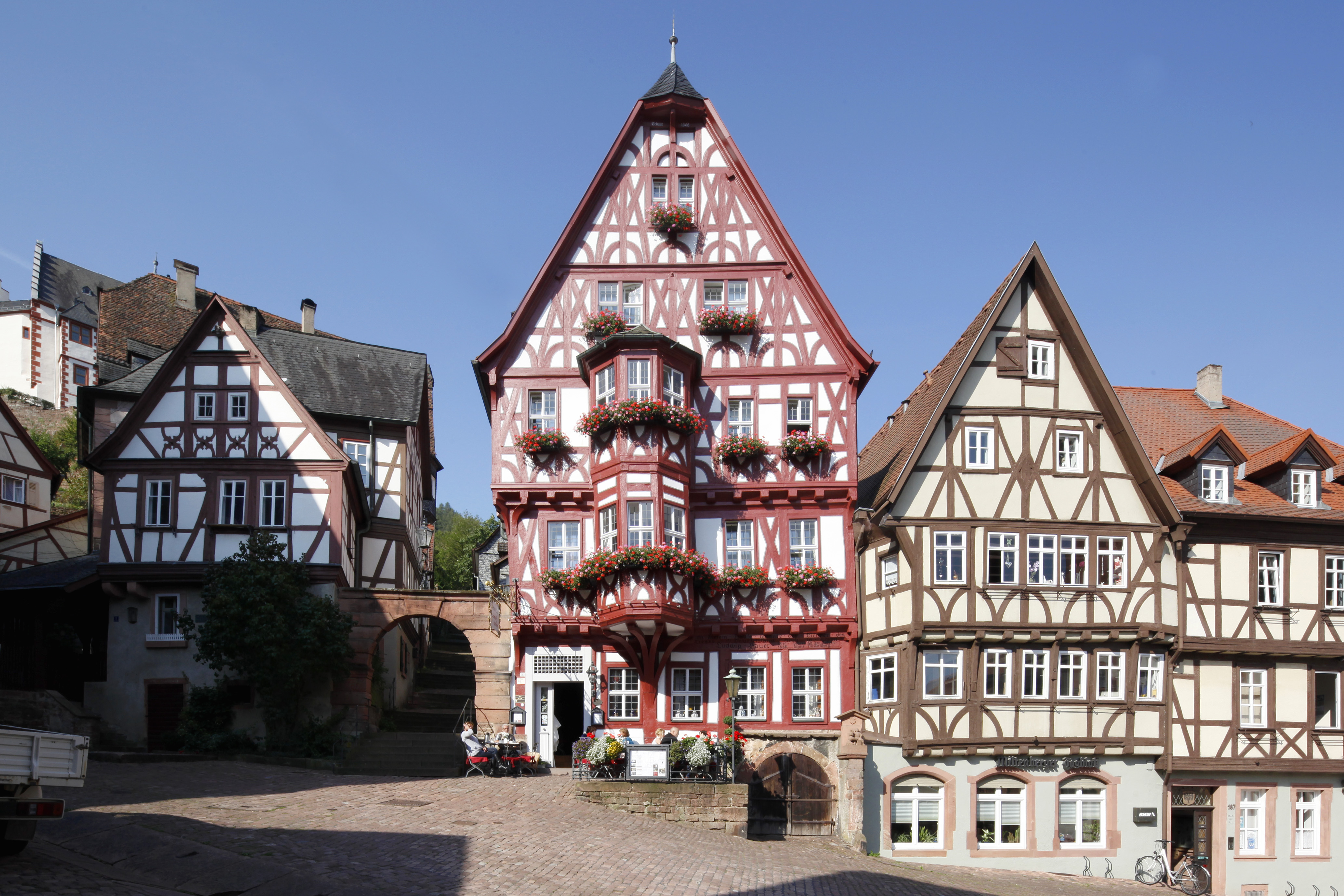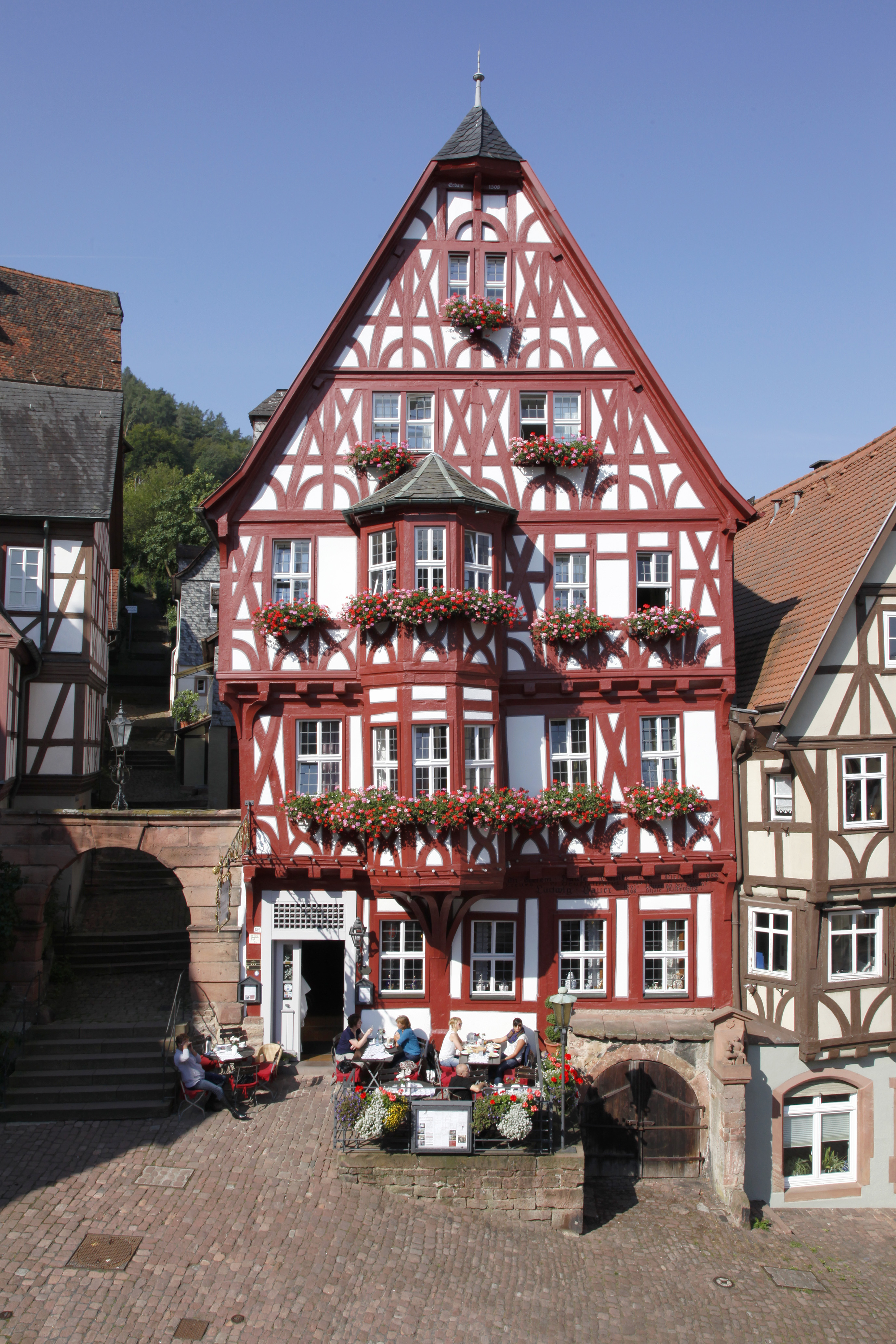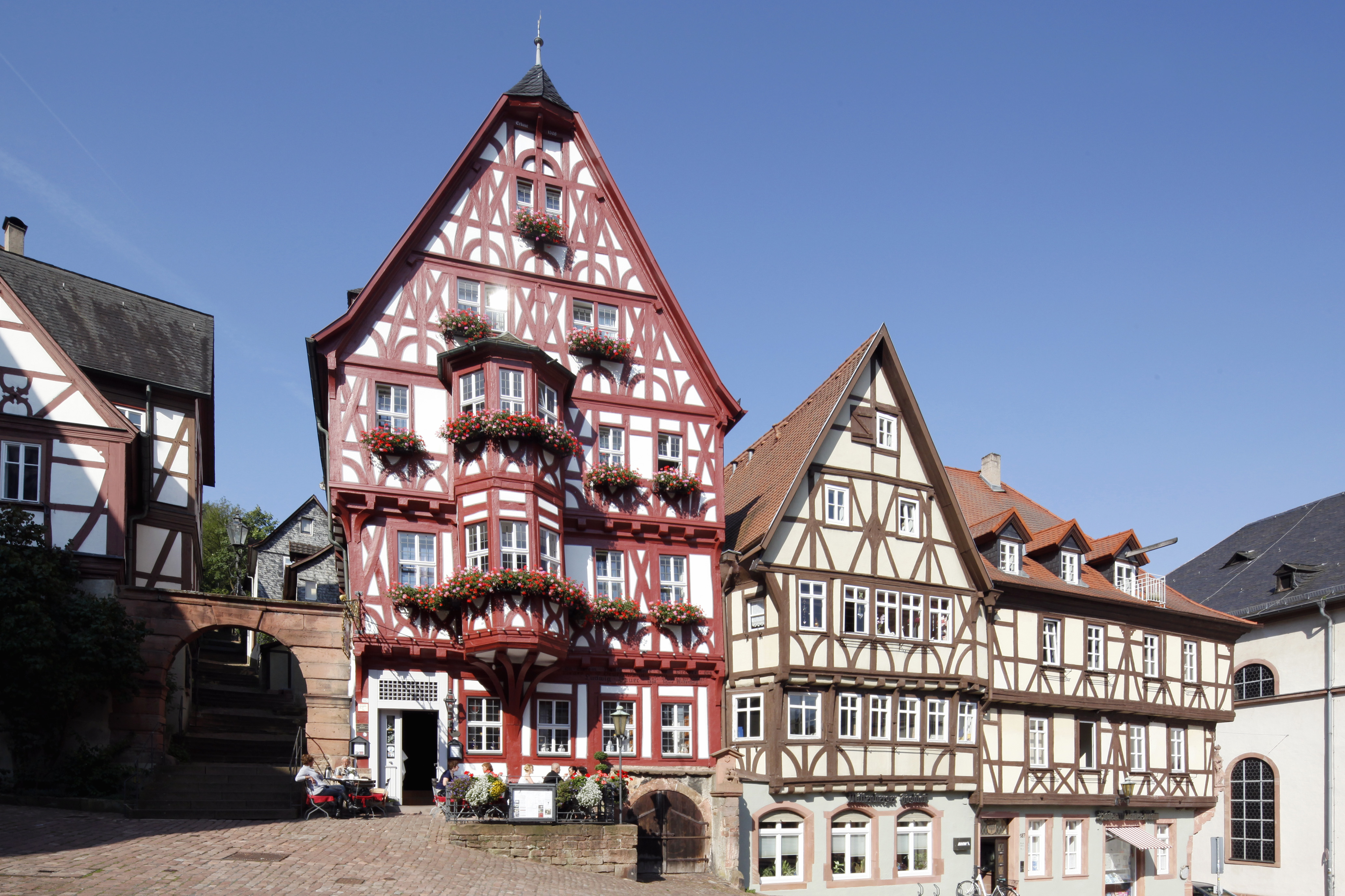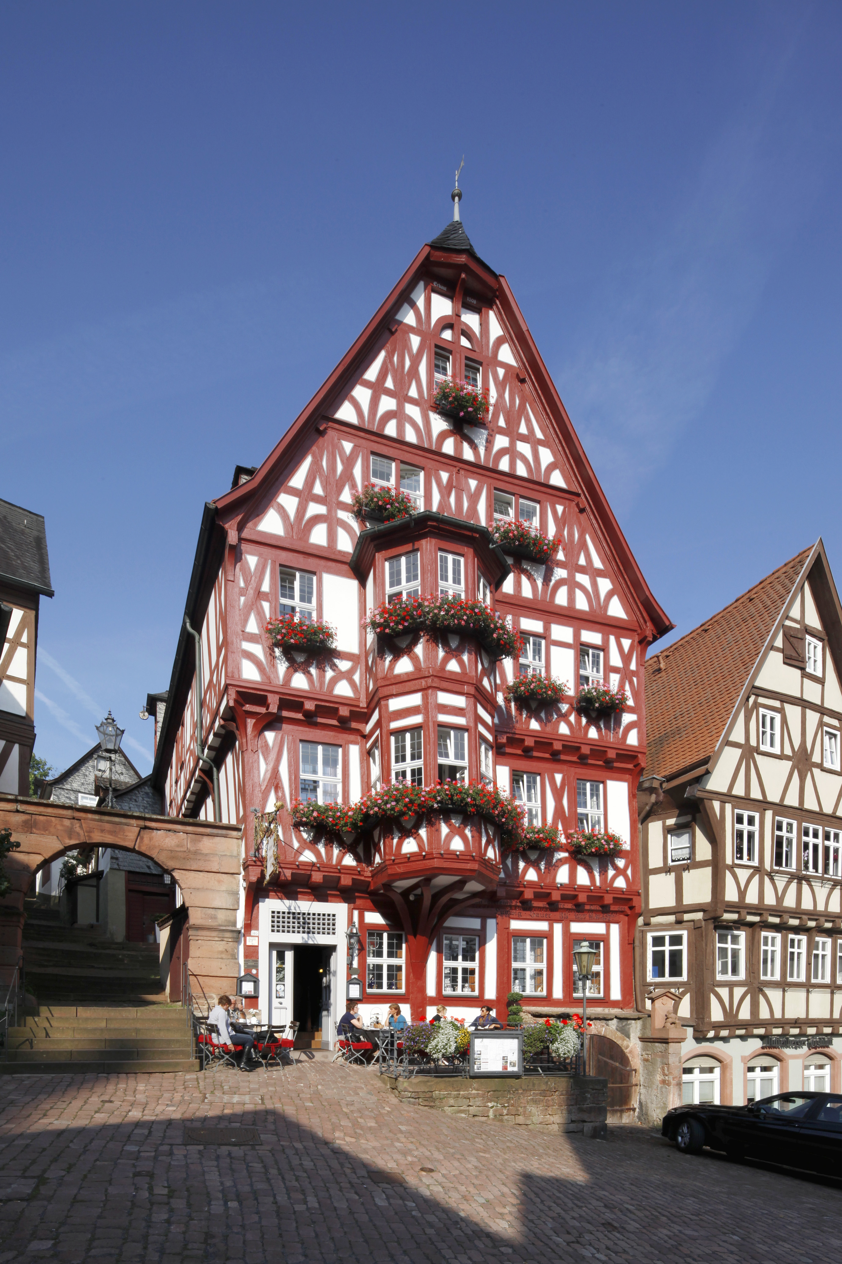 Im Zentrum des berühmten Marktplatzes, der von den Miltenbergern „Schnatterloch“ genannt wird, steht der Marktbrunnen aus rotem Sandstein aus dem Jahr 1583. Der Platz ist von Fachwerkhäusern umgeben, wobei das neu eröffnete Hotel nicht nur wegen seiner Höhe, sondern auch wegen der kunstvollen Balkenanordnung und der perfekt renovierten Fachwerkfassade besonders ins Auge fällt. Das 1508 erbaute, schmale, hohe Haus mit dem klassischen Spitzgiebel, den roten Fachwerkbalken und dem charakteristischen zweistöckiger Erker auf der Stirnseite ist weltweit bekannt. Es ist als Großformat auf US-Flughäfen zu sehen. Ende der 1950er-Jahre war es Drehort für den Film "Das Wirtshaus im Spessart" mit Liselotte Pulver. Heute ist das Denkmal ein beliebtes Motiv bei Malern, Fotografen und Touristen, die Miltenberg gerne besuchen – ganz besonders im Jahr des 775 Stadtjubiläums.