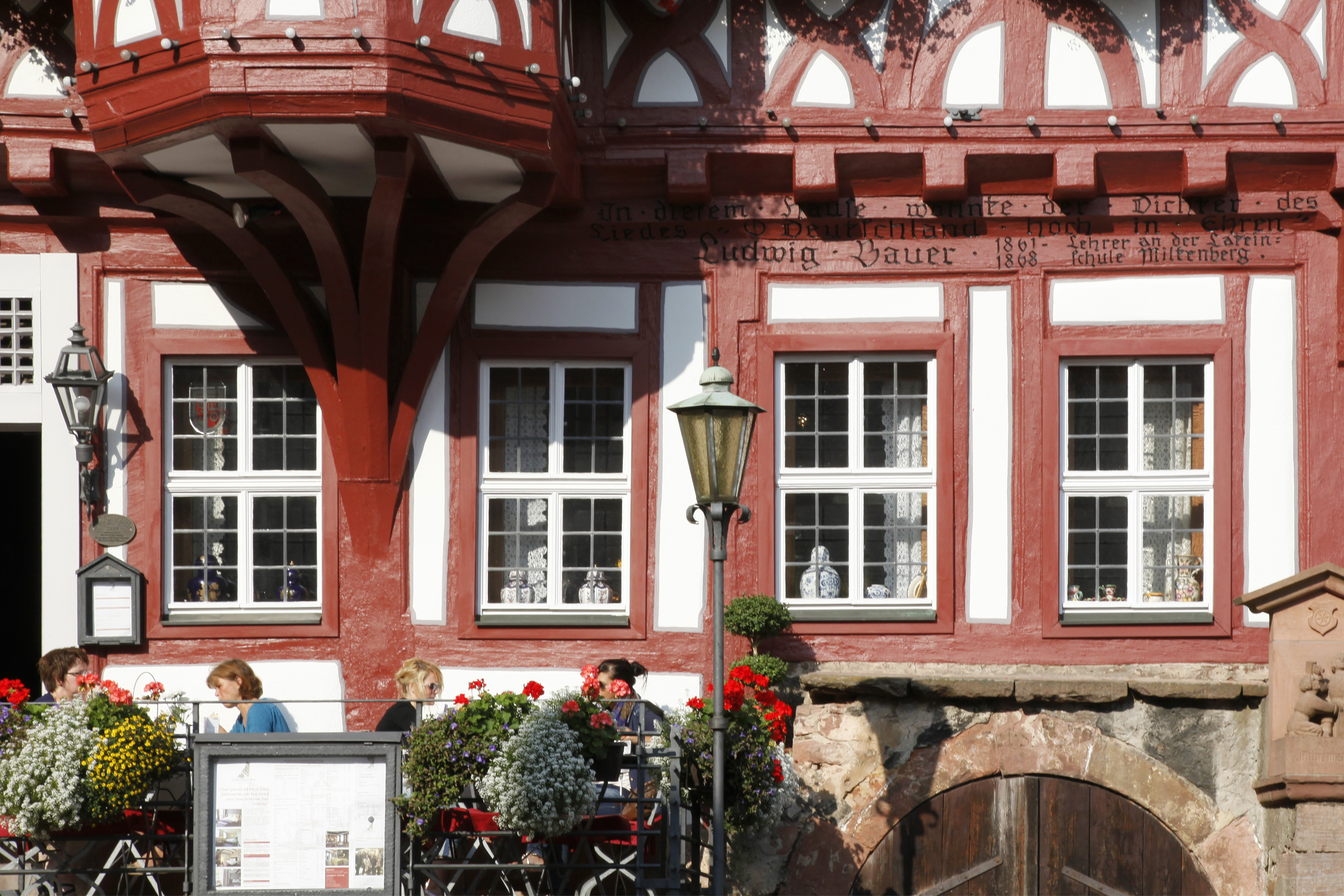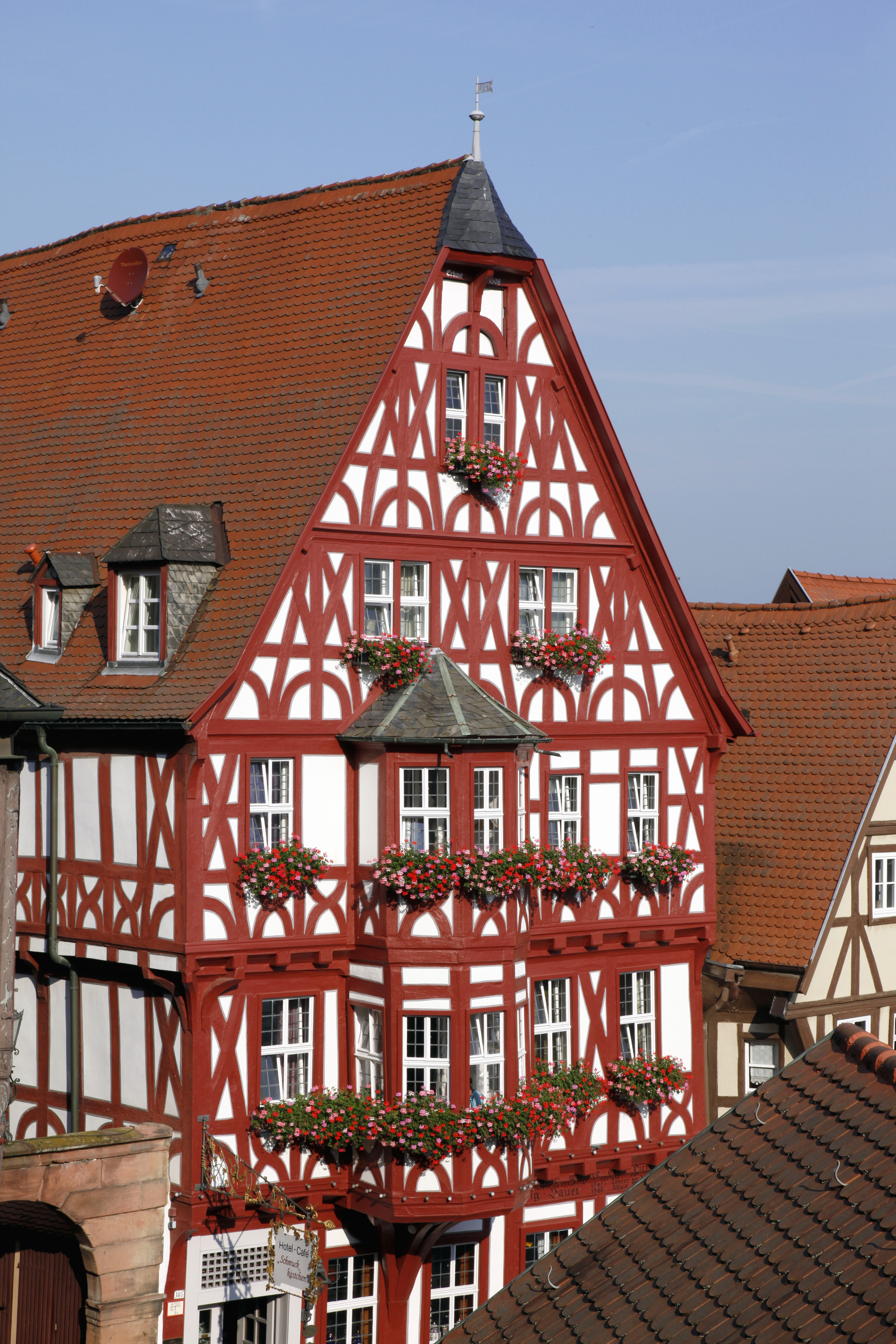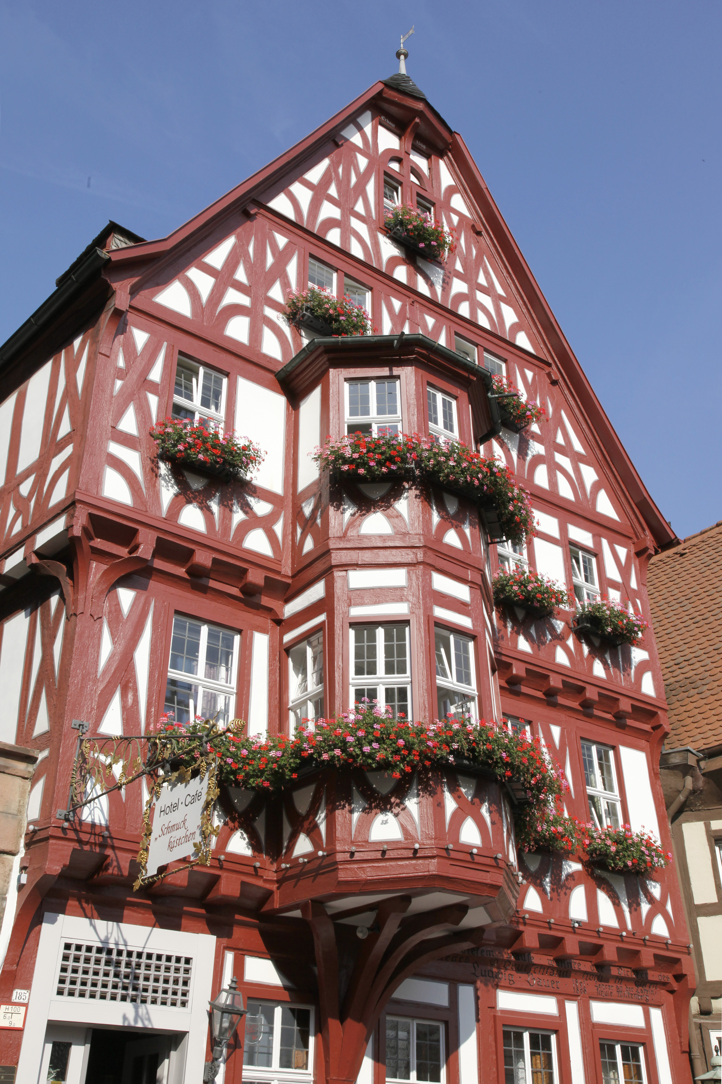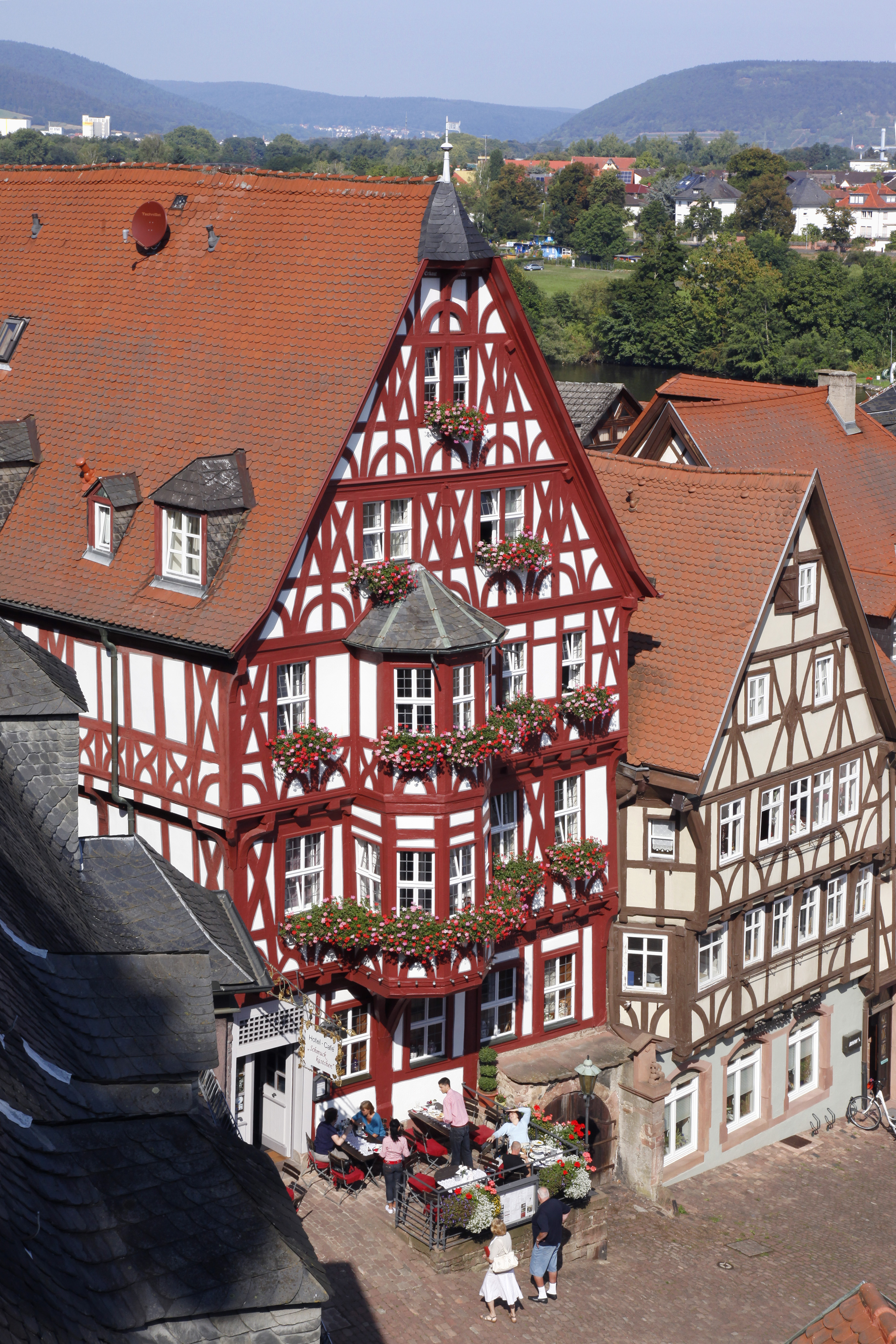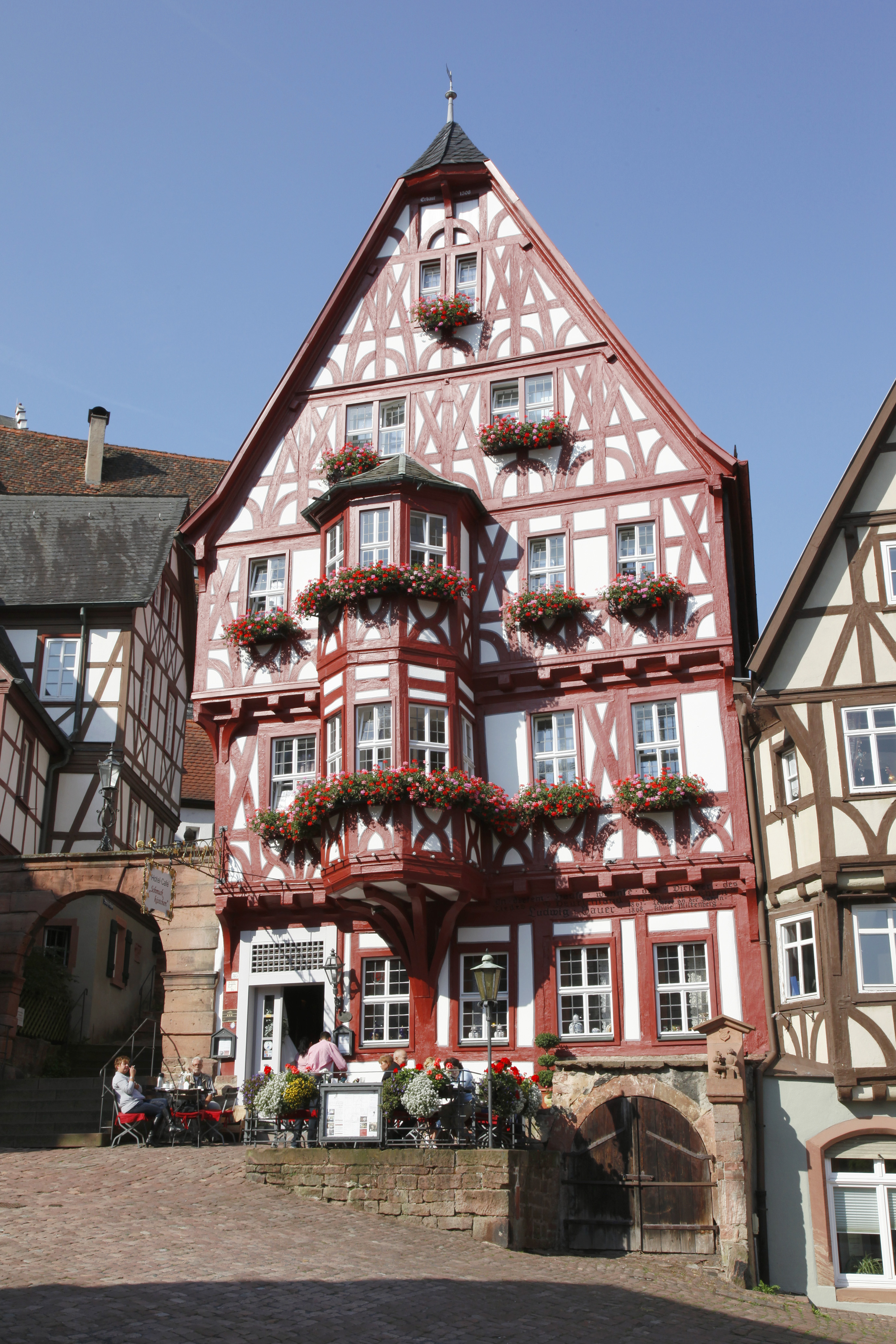 Im Zentrum des berühmten Marktplatzes, der von den Miltenbergern „Schnatterloch“ genannt wird, steht der Marktbrunnen aus rotem Sandstein aus dem Jahr 1583. Der Platz ist von Fachwerkhäusern umgeben, wobei das neu eröffnete Hotel nicht nur wegen seiner Höhe, sondern auch wegen der kunstvollen Balkenanordnung und der perfekt renovierten Fachwerkfassade besonders ins Auge fällt. Das 1508 erbaute, schmale, hohe Haus mit dem klassischen Spitzgiebel, den roten Fachwerkbalken und dem charakteristischen zweistöckiger Erker auf der Stirnseite ist weltweit bekannt. Es ist als Großformat auf US-Flughäfen zu sehen. Ende der 1950er-Jahre war es Drehort für den Film "Das Wirtshaus im Spessart" mit Liselotte Pulver. Heute ist das Denkmal ein beliebtes Motiv bei Malern, Fotografen und Touristen, die Miltenberg gerne besuchen – ganz besonders im Jahr des 775 Stadtjubiläums.