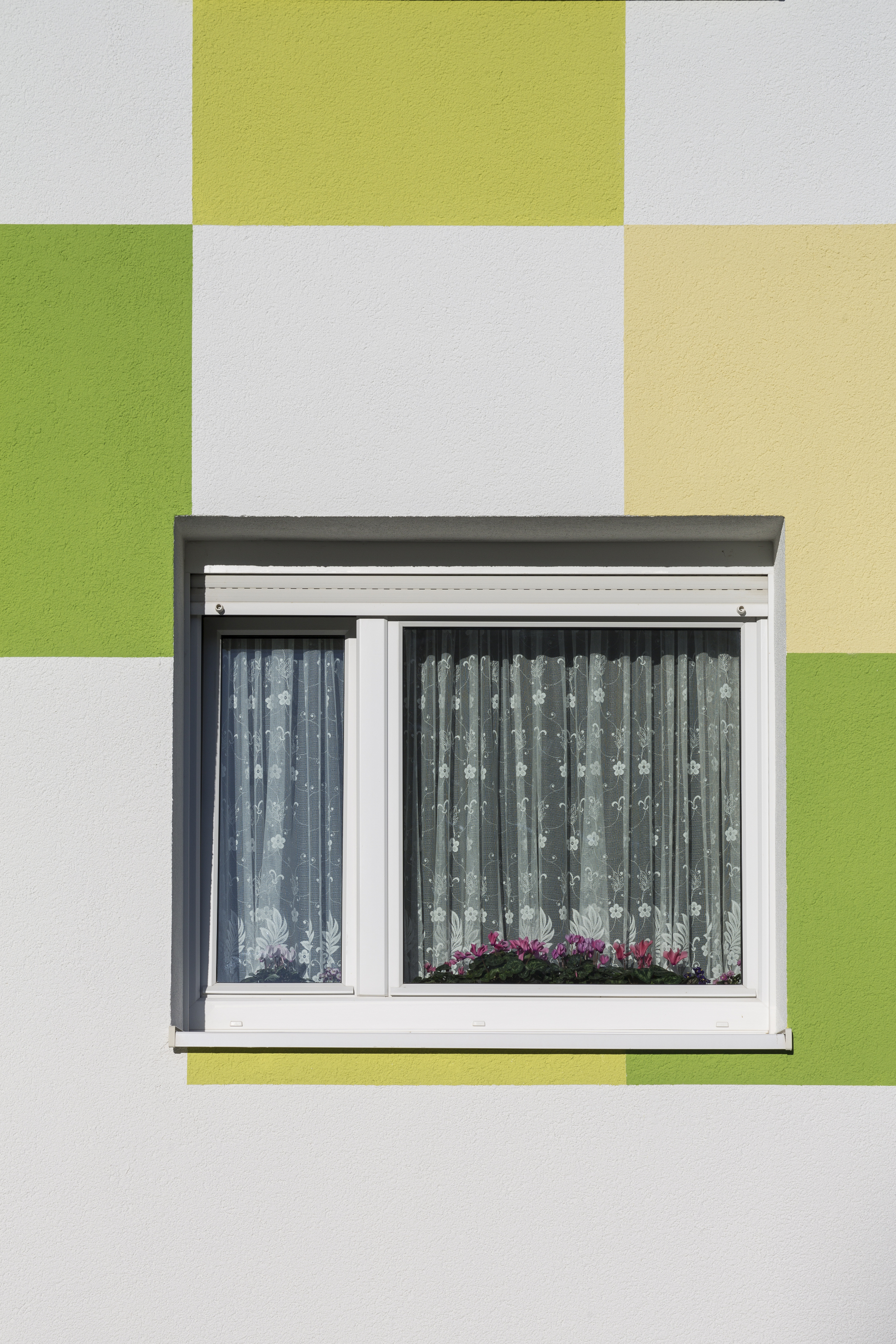Die der Wohnungsgenossenschaft vorgelegten Entwürfe wurden einer gründlichen Prüfung unterzogen, ehe die Entscheidung zugunsten der beschriebenen, von Grüntönen dominierten Variante fiel. Frische und Freundlichkeit überzeugten ebenso wie Lebendigkeit der mit leichter Hand eingefügten quadratischen Gestaltungselemente. Der Entwurf entspreche im Übrigen der ökologischen Grundeinstellung der Genossenschaft und sei im grün Gestalteten mit den Unternehmensfarben identisch, war ergänzend zu hören. Den Zuschlag für die Malerarbeiten erhielt die Leipziger Niederlassung der renommierten Firma Heinrich Schmid, die das vorgegebene Farbkonzept exakt umsetzte. Nach einer Hochdruckreinigung der Fassade wurde eine fungizide Grundierung aufgetragen, ehe der zweimalige Anstrich mit Thermosan den Schlusspunkt setzte. "Mit der Moskauer Straße ist uns ein guter Wurf gelungen", schätzte Vorstand Neumann zufrieden ein.