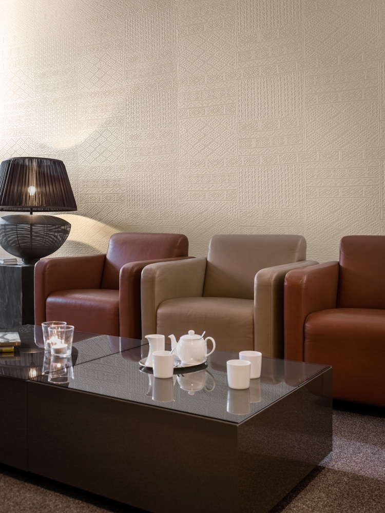 Gestalterisch beeindruckt das neue Capaver ElementEffects durch seine Dreidimensionalität, die auch bei einer deckenden Beschichtung erhalten bleibt, und durch den Matt-Glanz-Effekt im Wechselspiel aus Quarz und feinem Glasgewebe. Dieser Effekt verstärkt sich insbesondere dann, wenn die Oberfläche von Capaver ElementEffects mit metallischen Farben wie Capadecor Metallocryl Interior beschichtet wird. Das kann, muss aber nicht, hochglänzend scheinen. Mit einer matten Beschichtung lässt sich der Glanzeffekt bewusst reduzieren, so dass auch zurückhaltendere Gestaltungen möglich sind. Capaver ElementEffects lebt vom Spiel aus Licht und Schatten und postuliert stets ein klares Statement, egal ob es sich um die sehr feinen Allover- Strukturen, organisch wirkende Muster oder deutliche lineare Strukturen handelt. Das neue Capaver ElementEffects ist in zehn individuellen Designs erhältlich, die vielseitig einsetzbar sind.
