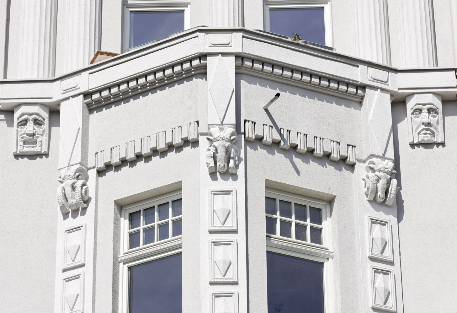 (pressebox) (Ober-Ramstadt, 12.03.2013) Ornamente, Erker, Stuck: Die Renovierung der Wohnhausfassade in der Düsseldorfer Luegallee war aufwendig und langwierig. Eine Arbeit, die sich jedoch gelohnt hat: Das Ergebnis ist sehenswert und in Einklang mit den hohen Anforderungen der Baudenkmalpflege.