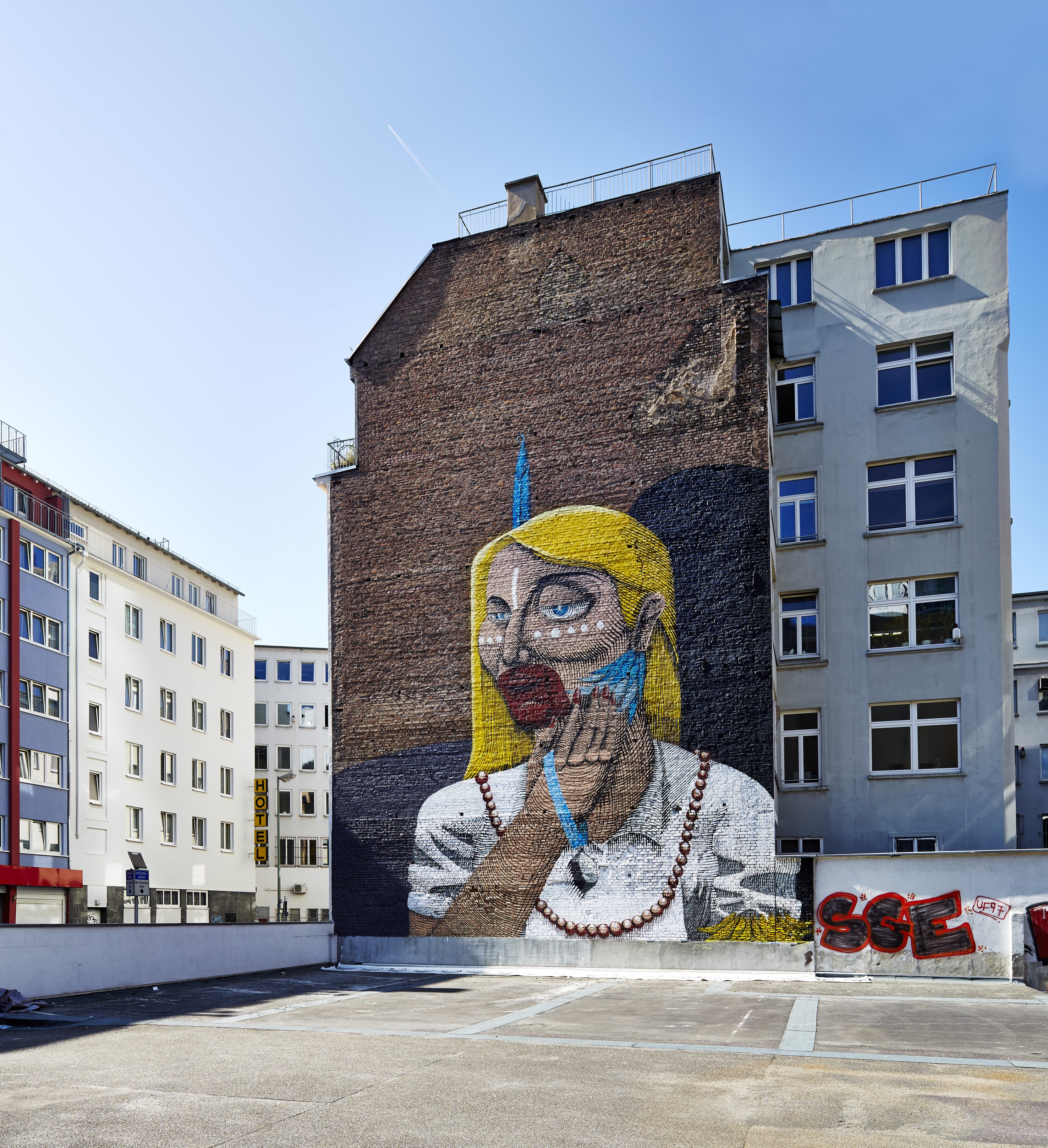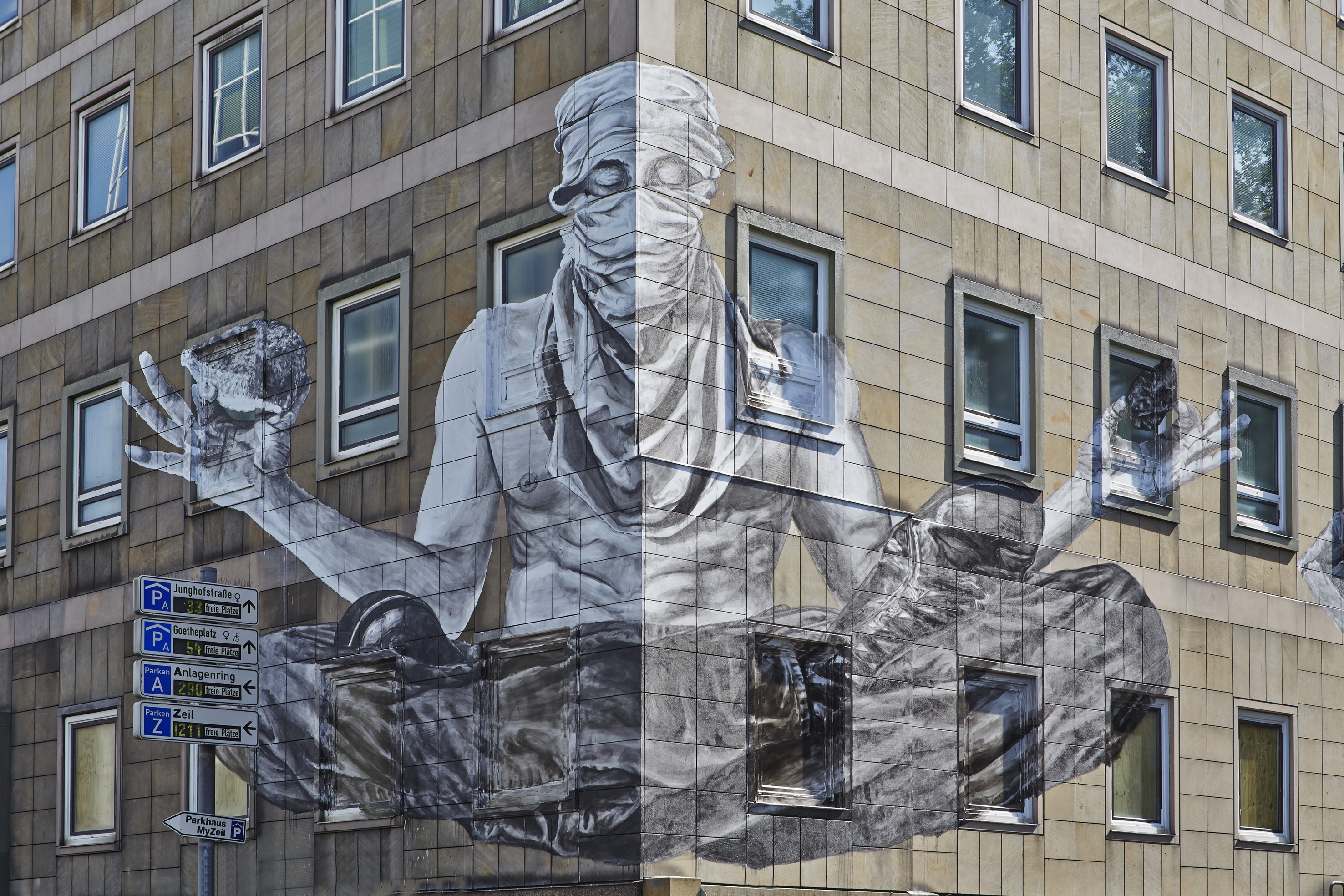 Zum Einsatz kommt die Caparol-Farbe Amphibolin, die sich durch ihre Wetterbeständigkeit und hohe Schutzwirkung gegen Luftschadstoffe auszeichnet und damit ideal geeignet ist für die brasilianischen Graffitiwerke an Frankfurts Bankentürmen, Brückenpfeilern und Bahnhofsböden. Die Künstler konnten sich ihre Farbtöne selbst aus dem 3D-System PLUS Farbfächer auswählen - von Apricot über Curcuma bis Saphir. Als Grundiermittel für die Maluntergründe stellte Caparol zudem "Caparol Binder" zur Verfügung.