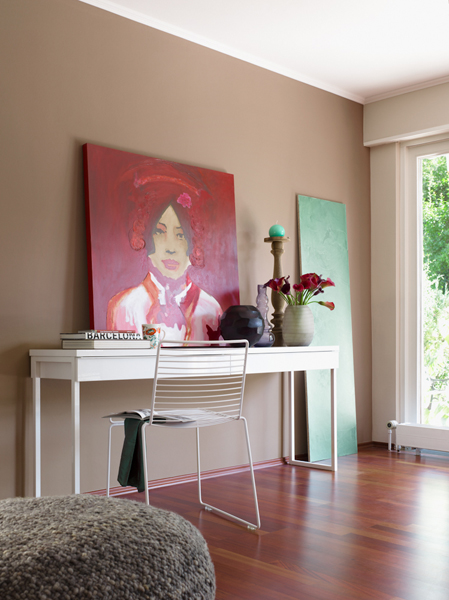 (pressebox) (Ober-Ramstadt, 09.01.2014) Als Familie B. in ihr eigenes Heim, ein Reihenhaus in Heilbronn zog, waren alle Wände weiß, teilweise gelb gestrichen. Das sollte auf keinesfalls so bleiben, denn weiße Wände prägten auch die zuvor bewohnten Mietwohnungen. Daher war das Bedürfnis nach farbigen Wänden groß. Mehr Charakter sollten die "neuen" Räumlichkeiten des 1958 erbauten Hauses ausstrahlen, und gemütlich sollte es werden. Das war der Wunsch der Familie mit zwei kleinen Kindern. Bereits vorhanden waren ein dunkler, rötlicher Holzboden und die Kücheneinrichtung in Weiß. Es stellte sich daher die Frage, welche Farben gut zum Boden und zum Wohngefühl der neuen Besitzer passen würden.