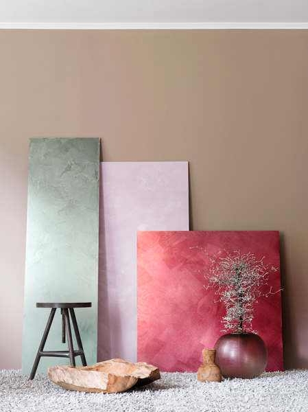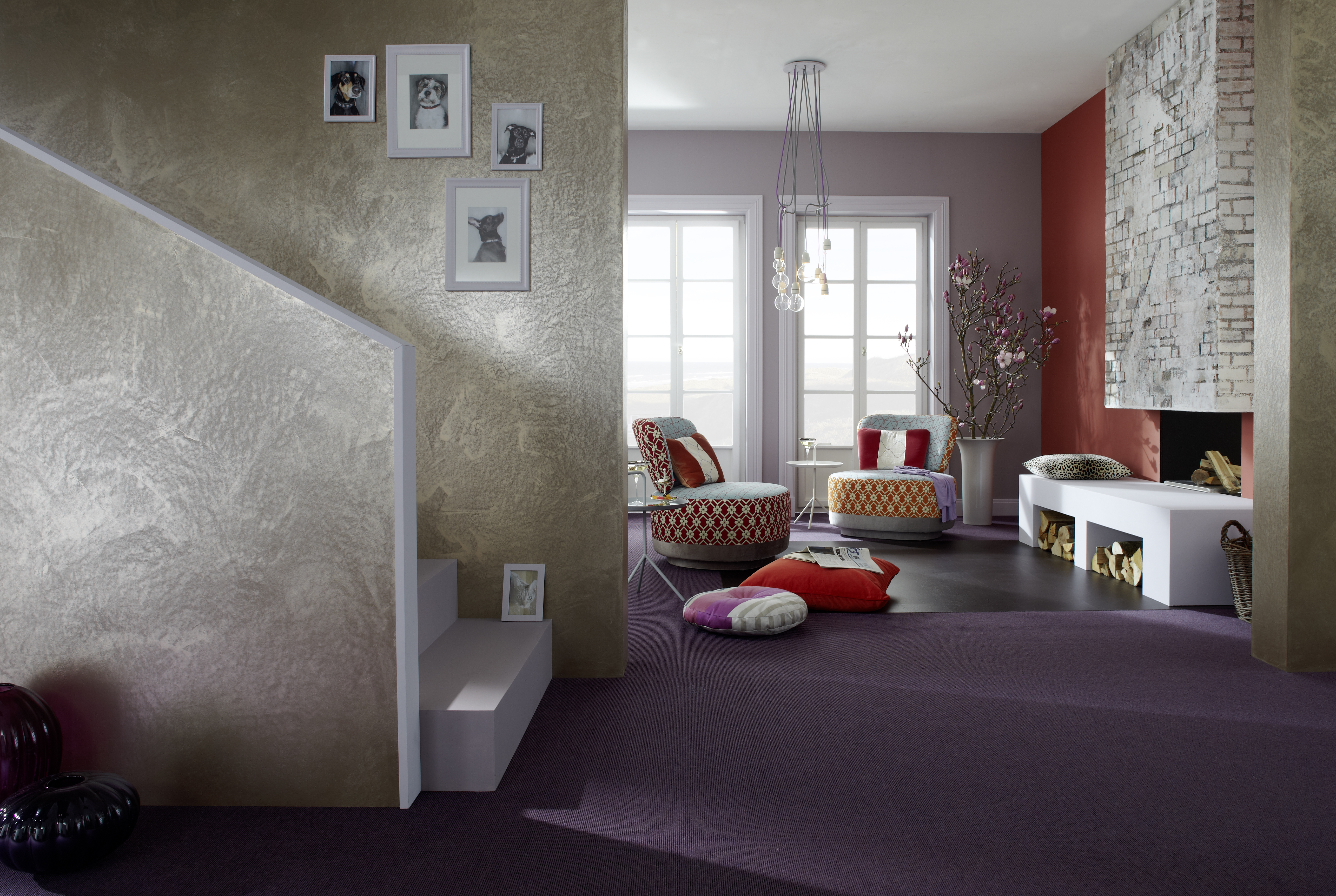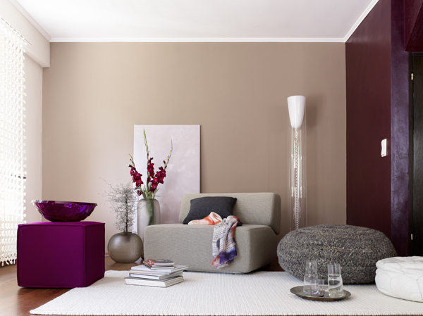 Das auf Architektur- und Farbdesign spezialisierte Büro TSP.DESIGN Talledo, Schlegel & Partner aus Frankfurt präsentierte der Familie die Caparol Trendkollektion 2012|2013 mit vier verschiedenen Trendwelten zur Inspiration. "Wir fanden alle vier Themenwelten sehr schön, sehr harmonisch und trendy" war das Feedback von Familie B. Zwei Trends gefielen aber besonders gut: reurban und extraordinary. Die aus Beerentönen, Mintgrün- und Beigenuancen bestehende Trendwelt "extraordinary" machte jedoch das Rennen. Die Trendwelt, die warm, umhüllend, luxuriös aber auch extravagant wirkt, erschien durch die Violett- und Himbeerrotnuancen besonders stimmig zum vorhandenen Boden. Sie überzeugte durch die behagliche und gleichzeitig elegante, hochwertige Atmosphäre. Aber wie nun die favorisierte Farbwahl in den eigenen Räumlichkeiten einsetzen?