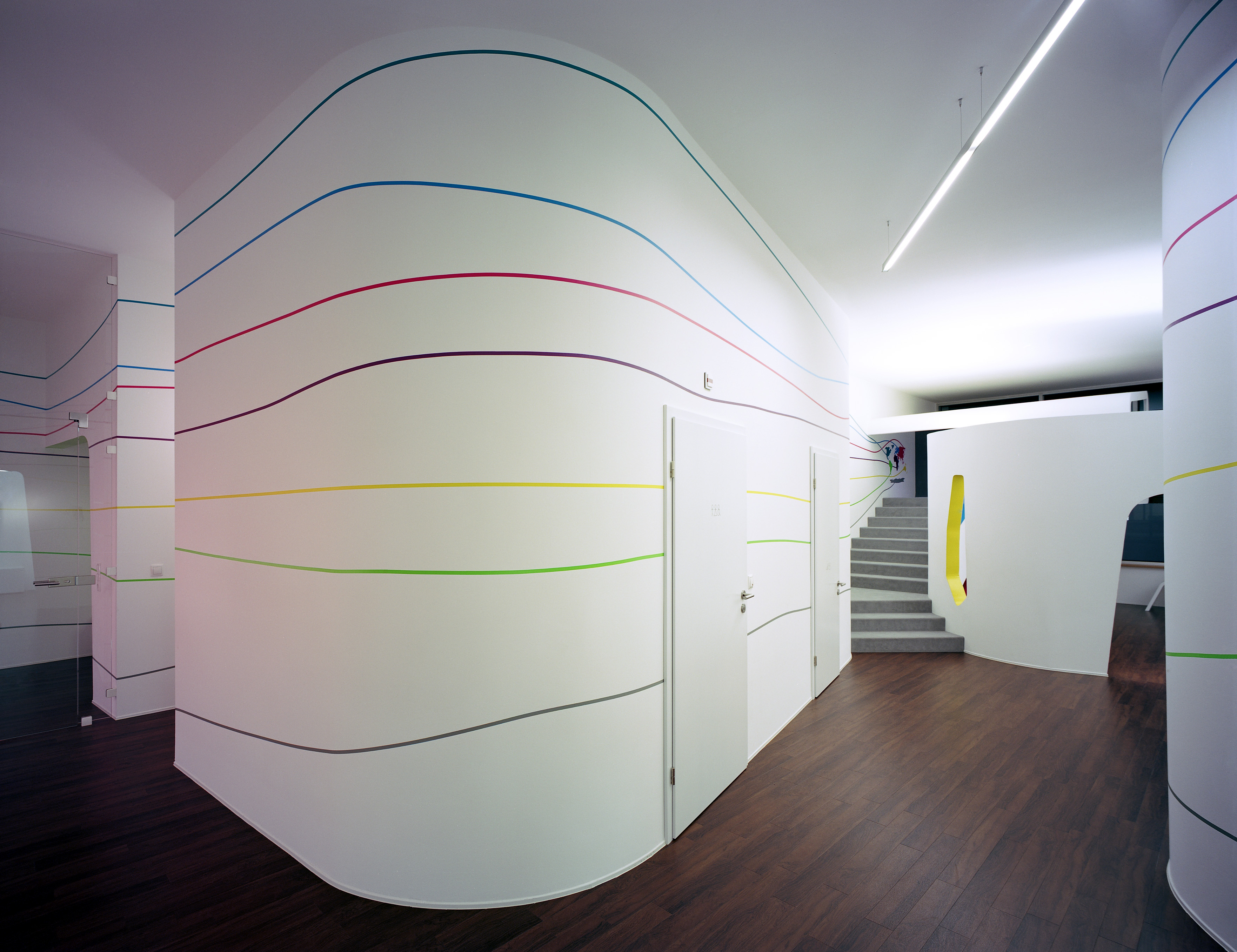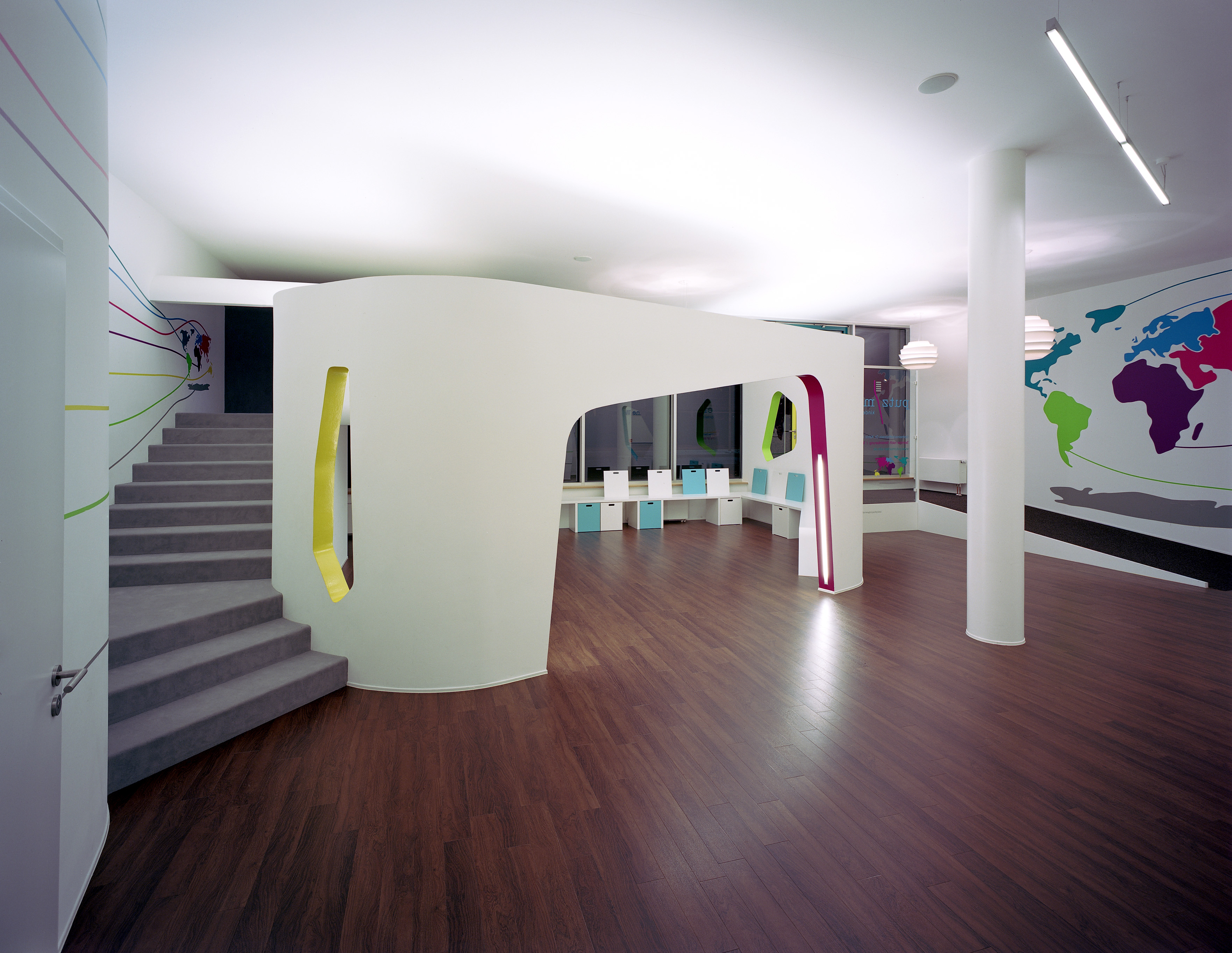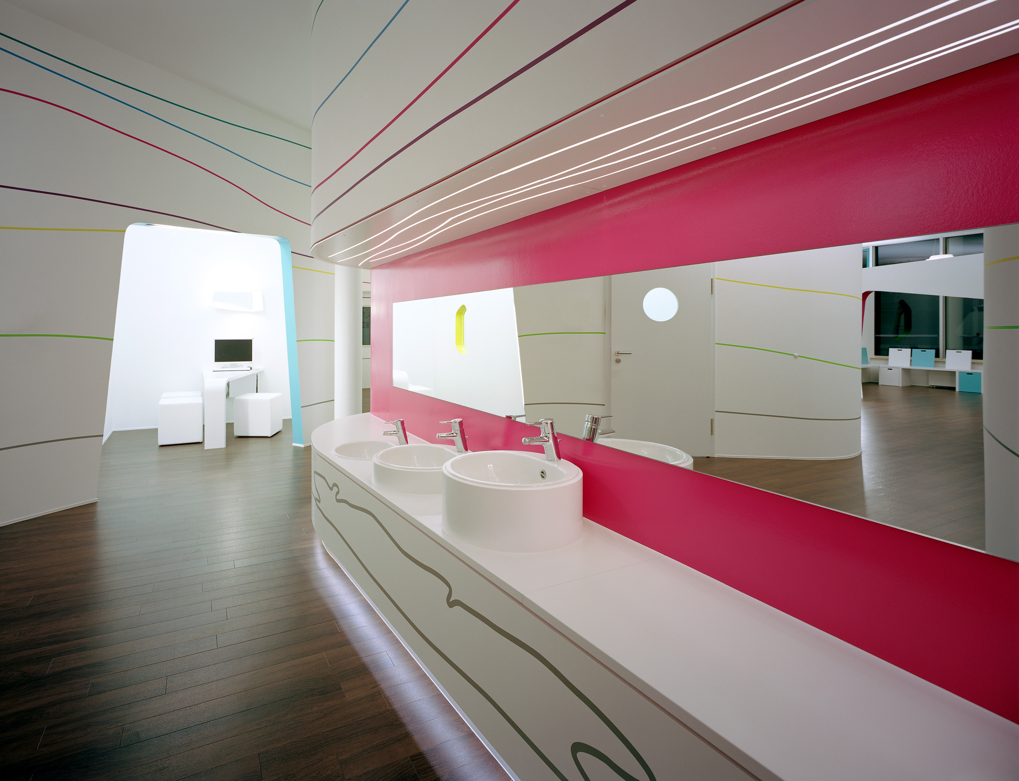Beim Thema Gestaltung kommt es auf den richtigen Einsatz und das Zusammenspiel von Farben, Strukturen und Oberflächen an. Dazu sollte man die Nutzung bzw. die Zielgruppe im Auge haben. Hier sind knallige, bunte Farben fehl am Platz. Ein dezenter und platzierter Einsatz von Farben sollte hier bewußt vorgenommen werden. Das ebenfalls wichtige Thema Raumakustik ist hier mit der Gestaltung in Einklang zu bringen. Freie Formen sind hier gefragt. Akustikelemente dürfen keine Fremdkörper im Raum sein.