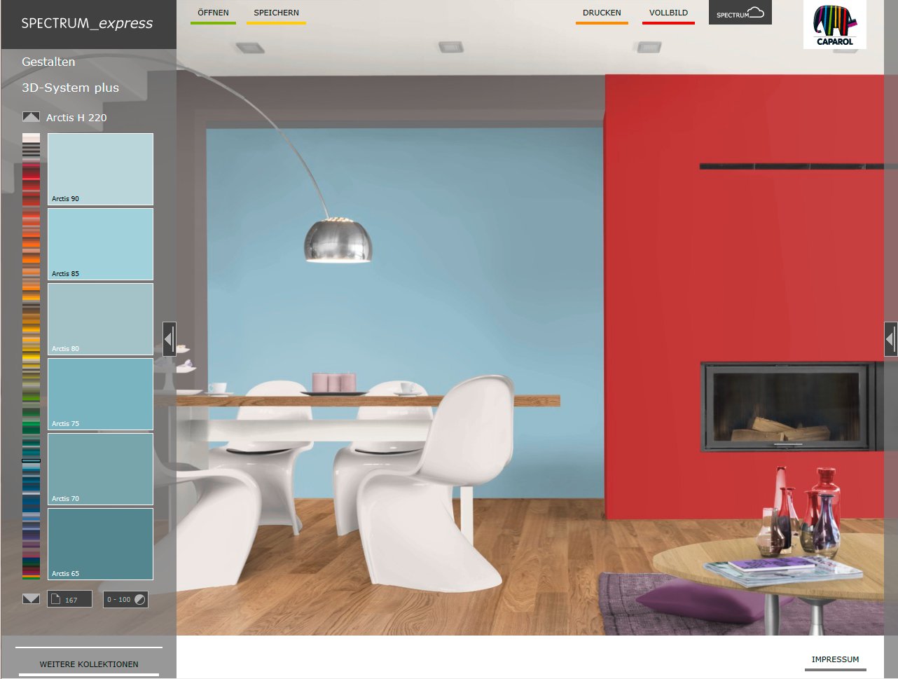 Mit Spectrum_express lassen sich Farbideen schnell und einfach visualisieren. Entweder mit einem Beispielbild oder mit dem eigenen Raumfoto, das allerdings vorher über den Fotoservice (via Cloud) aufbereitet werden muss. Verschiedenste Farb- und Produktkollektionen sind aufrufbar, selbstverständlich auch die Classic-Farblinien. (www.spectrum-express.de)