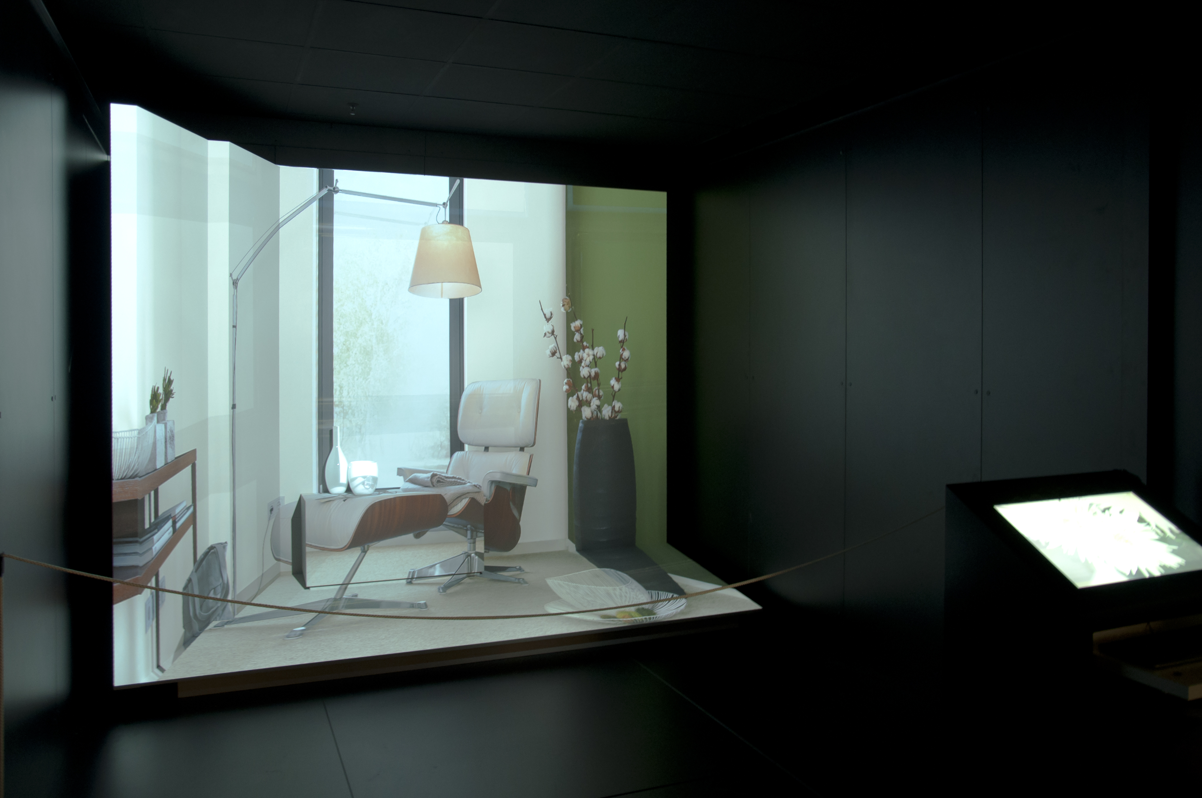 Vielleicht befindet sich in der Nähe eine Spectrum_arena, die für Innenraumgestaltungen (auch Fassaden) eine neuartige dreidimensionale Präsentationsform bietet. Mit einem Beamer werden kantengenau Farben und Materialien auf eine Innenraumnische (oder ein Hausmodell Maßstab 1:10) projiziert. Durch die großformatige 1:1 Darstellung vermittelt die Innenraumsimulation ein absolut realitätsnahes Raumgefühl. Wer Lust hat, kann nach individuellen Vorstellungen selbst ausprobieren - Entscheidungen fallen so viel leichter!