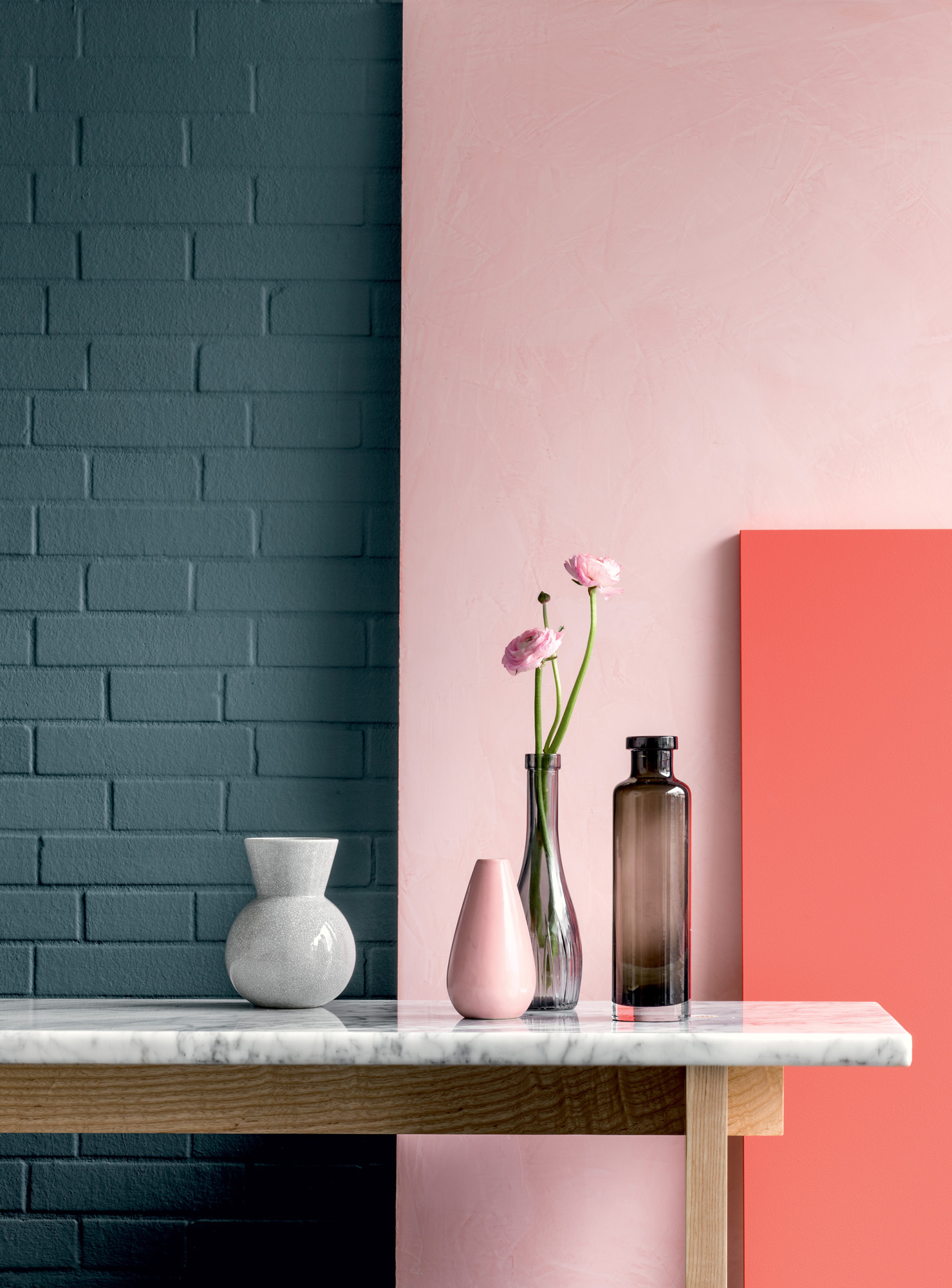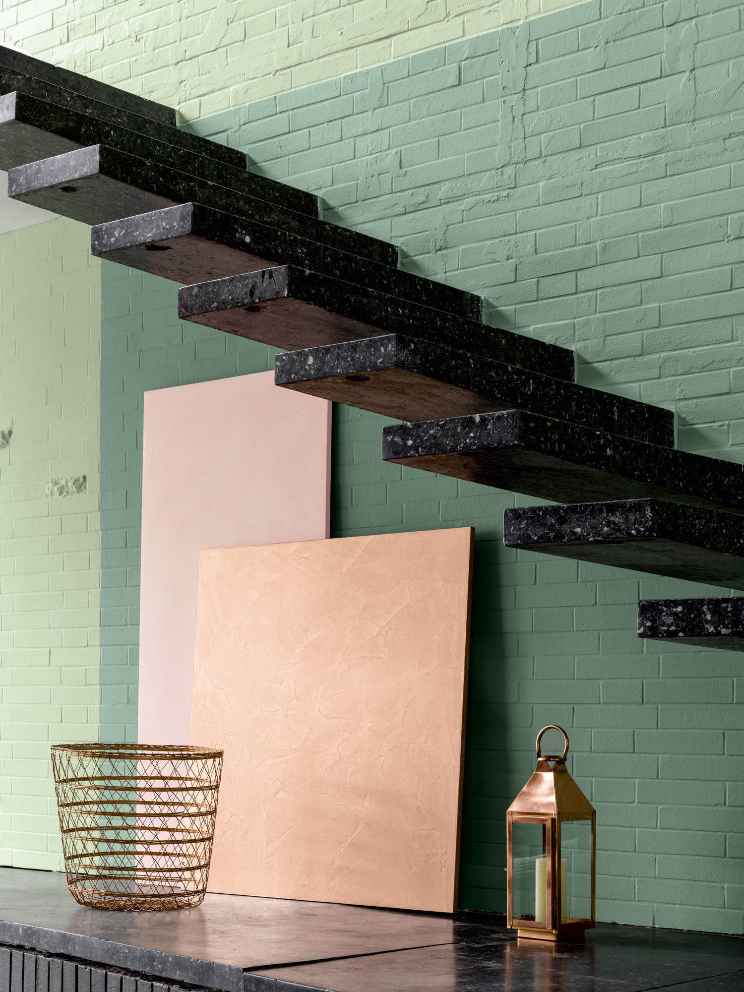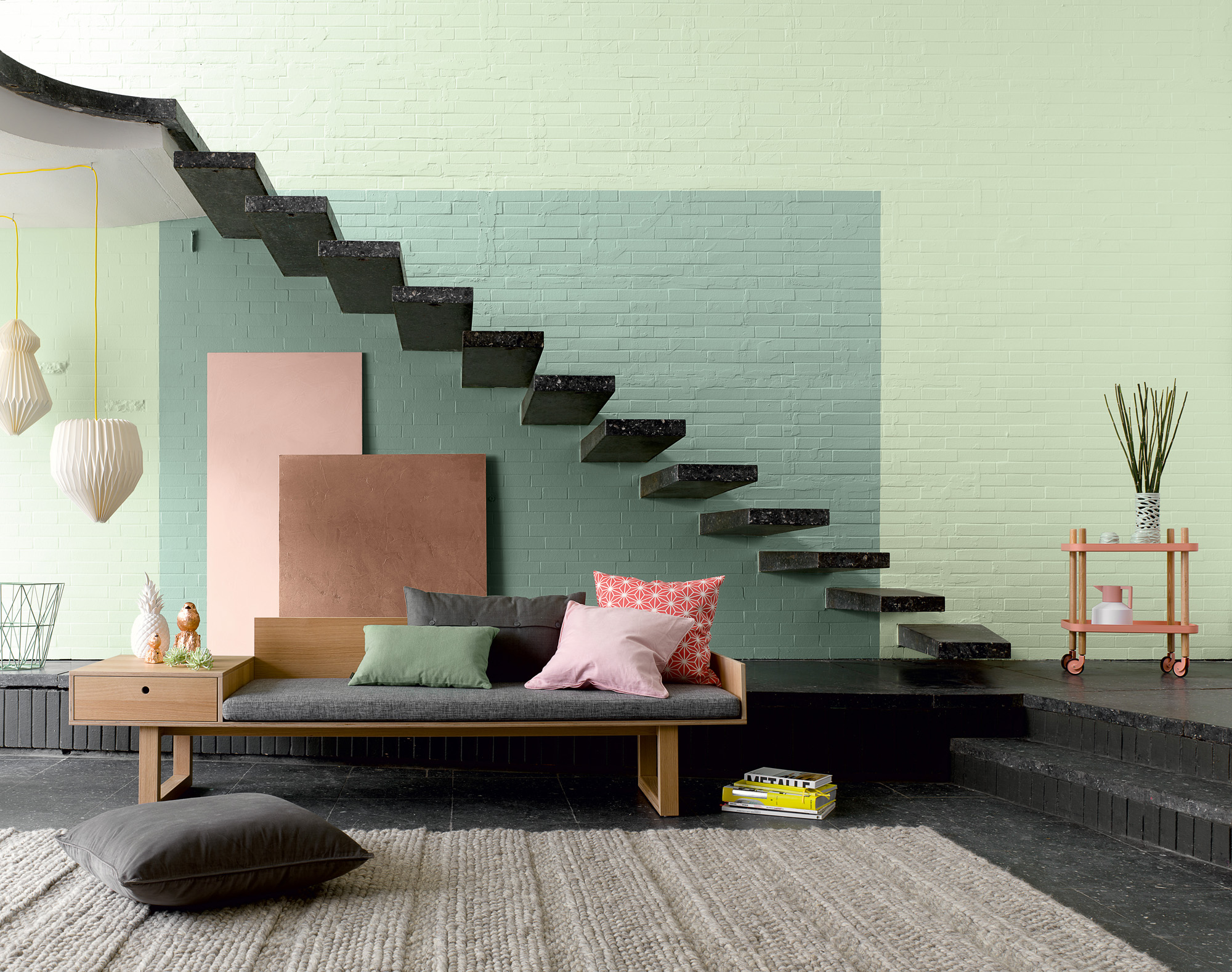 Diese Tendenz des kreativen Mixens zeigt das Trend update von Caparol anschaulich mit inspirierenden Raumbildern. Auffällig ist die Vielzahl sanfter, facettenreicher Grün- und Blaunuancen, die durch kräftige Petroltöne ergänzt werden. Hinzu kommen intensive Akzente wie Korallenrot (re:urban 1) und Senfgelb (re:urban 7). Die neuen Farbkombinationen werden erweitert durch passende Oberflächen in Rosé, Kupfer und Grau.