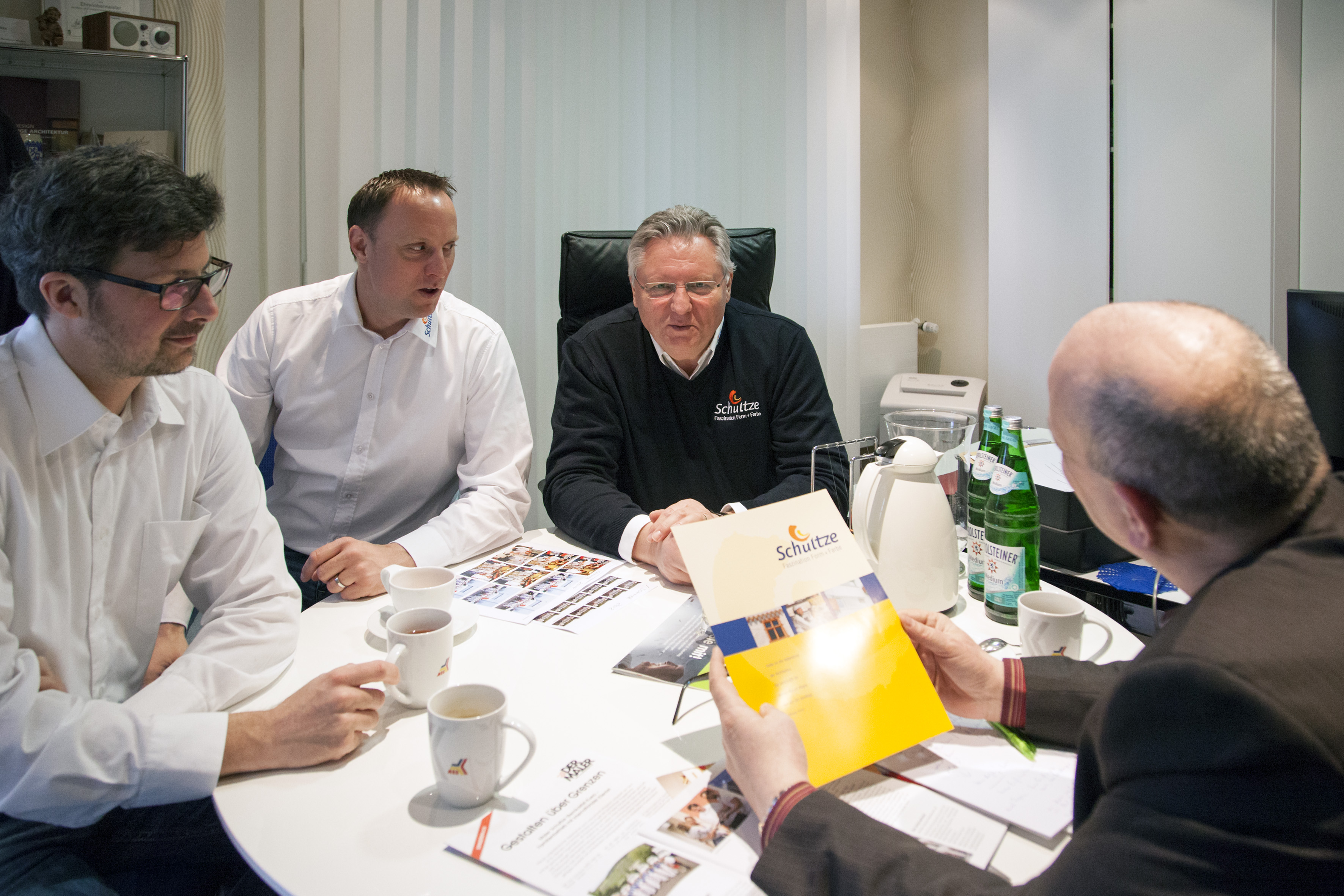 In früheren Jahren, als das Team um Maler Schultze vornehmlich gewerbliche Großobjekte wie Bürogebäude, Lagerhallen etc. gestaltet hat, lief das Geschäft anders ab als heute. Leistungen wurden schriftlich angefragt, Angebote auf gleichem Wege abgegeben. Das überzeugendste Konzept bekam den Zuschlag. "Bei der Ausführung ging es dann darum, möglichst viel Fläche in möglichst kurzer Zeit zu schaffen. Kaum war die eine Baustelle erledigt, standen wir schon auf der nächsten", erinnert sich Hermann Schultze.