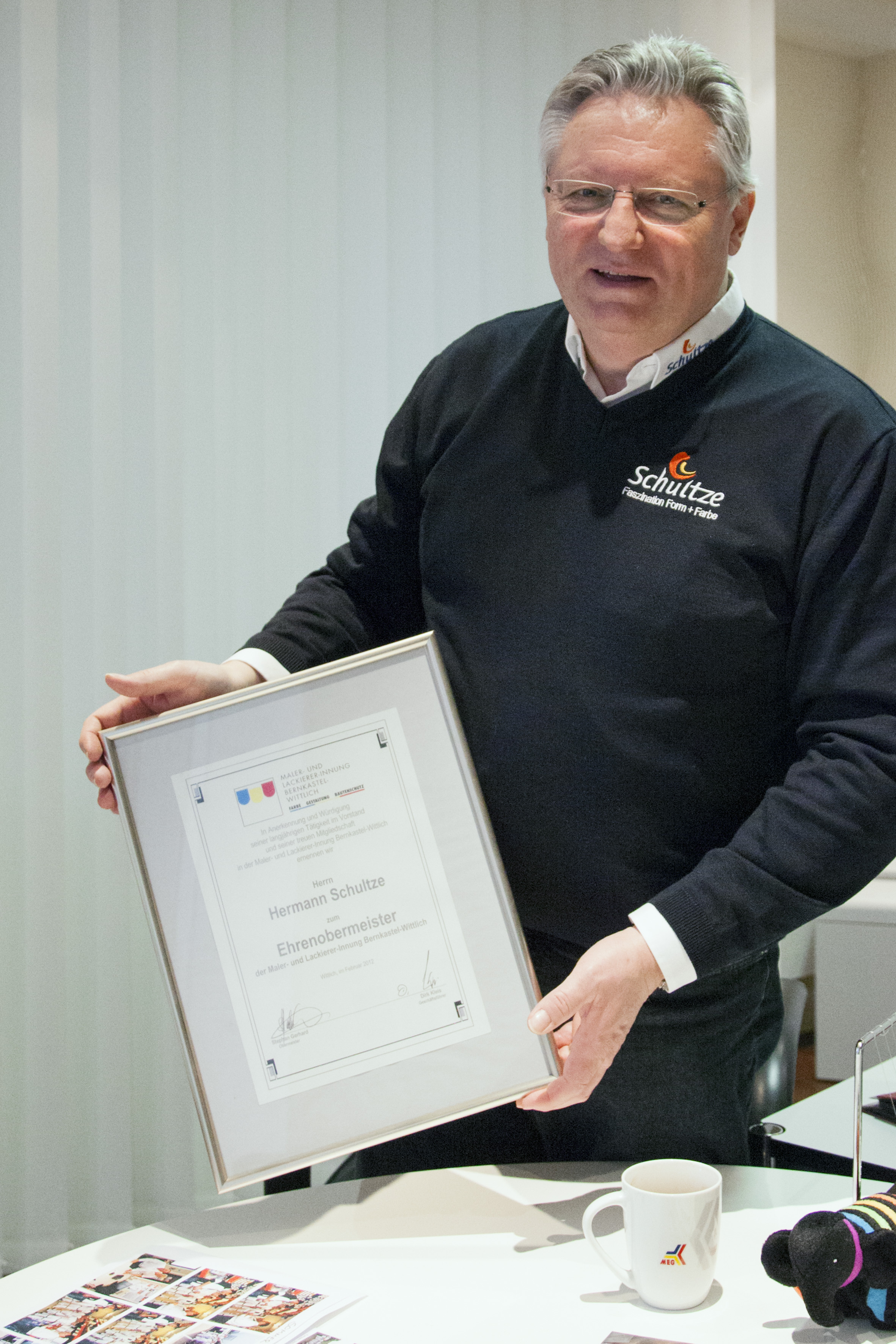 Eigentlich wollte sich Hermann Schultze spätestens 2013 zur Ruhe setzen; so jedenfalls sah es seine Zukunftsplanung im Jahr 2007 vor. Aber was ein passionierter Malermeister ist, der lässt vom Restaurieren, Tapezieren und Gestalten nicht so einfach ab. "Nun wird es 2017 wohl so sein, vielleicht auch erst 2018", sagt er. Wir werden sehen. Sorgen um die Zukunft seines Betriebs braucht sich Hermann Schultze, der 15 Jahre lang - von 1997 bis 2012 - Obermeister der Maler- und Lackiererinnung Bernkastel-Wittlich war, jedenfalls nicht zu machen: "Mit Raphael Schärf haben wir einen tüchtigen Mitarbeiter gewinnen können, der handwerklich ein Könner und darüber hinaus ein sehr guter Meister ist. In seine Hände will ich in Bernkastel-Kues sukzessive mehr Verantwortung legen, derweil sich mein Sohn auf die gedeihliche Fortentwicklung seines eigenen Betriebs in Luxemburg konzentriert."