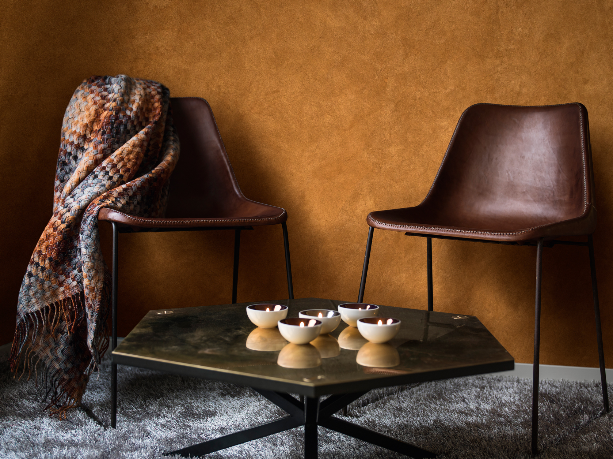 Um die Kreativtechnik "Wildleder" auszuführen, muss der mit AkkordSpachtel fein gespachtelte und CapaSol LF grundierte Untergrund der Qualitätsstufe Q4 entsprechen. Auf diesen wird die vorher gründlich aufgerührte Spachtelmasse Stucco Satinato mit der Federblattspachtel in kurzen Bahnen aufgelegt und direkt mit der ArteTwin Kelle in kreisenden Bewegungen verrieben. Nachdem die Fläche vollständig abgetrocknet ist, wird der Vorgang wiederholt. Durch diese spezielle Verarbeitung des Materials entsteht eine beeindruckende Tiefenwirkung mit absolut authentischem Charakter.