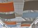 Beeindruckend ist die perfekt aufeinander abgestimmte Farbfassung, wobei die Deckensegel in Orange (3D Papaya 100), Hellblau (3D Pacific 150) und Graubraun (3D Granit 35) dieselben Farbtöne wie die Stühle haben. Und die Baffle in Rot (3D Barolo) mit Weiß passen zur vorhandenen Gestaltung der Essensausgabe. „Bei der Farbgestaltung sind wir in die Vollen gegangen“, freut sich Wolfgang Eberhard. Dazu wurden die vorhandenen Farbtöne aufgenommen und mit den Caparol Spectrum-Farbtonkarten abgeglichen, so dass es ein harmonisches Gesamtbild ergab. Die Beschichtung mit dem Airless-Spritzsystem übernahmen die Auszubildenden des Berufsbildungswerks im Malerhandwerk, angeleitet von Malermeister Christian Döll: „Es war eine gute Übung für unsere Azubis. Die Akustikelemente waren wirklich gut zu verarbeiten, zu schneiden, zu beschichten und zu verkleben.“ Andreas Jung, Bereichsleiter für Ausbildung Raum - Farbe - Mode – Textil, ergänzt: „Wenn bei uns im Haus Bau- und Sanierungsarbeiten anstehen, organisieren wir das wenn möglich so, dass wir die Arbeiten mit externen Firmen und unseren Auszubildenden gemeinsam machen. So können unsere Azubis auch ihre Fachkompetenz weiter ausbauen.“