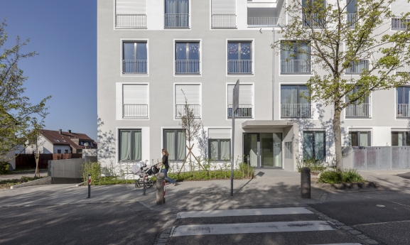 Um die Öffnungen in der Wand zu betonen und die Flächenverhältnisse optisch zugunsten der Fenster zu verschieben, wurden alle Fassadenöffnungen durch zusätzliche Faschen hervorgehoben. „Die Faschen sind ein Rückgriff auf ein klassisches Gestaltungselement, wie man es von Gründerzeitbauten kennt – gerade auch im Großraum Stuttgart. Die Gebäude erhalten so ein repräsentatives Aussehen“, sagt von Holst.