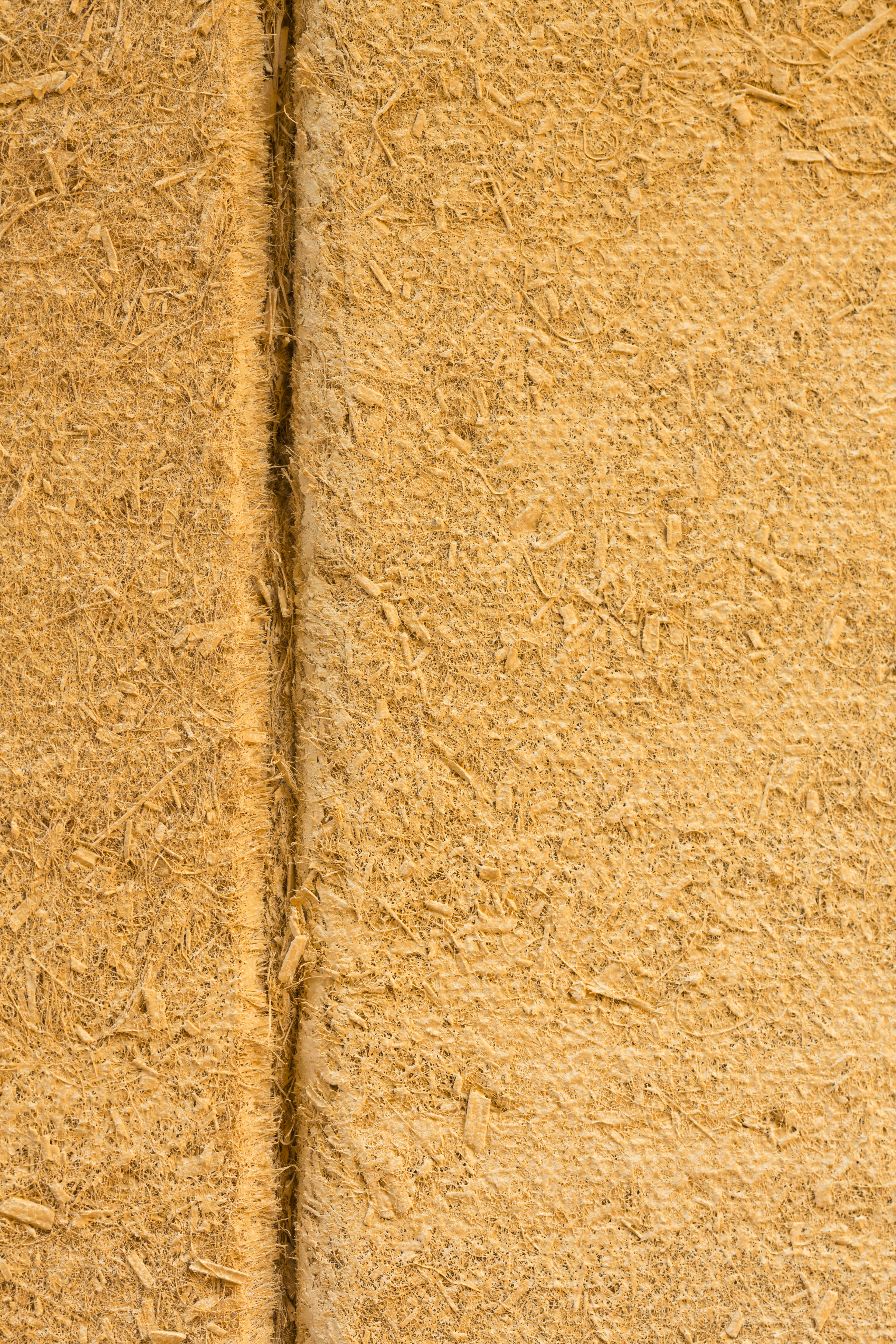 Geht es um die Verbesserung der Akustik, wird üblicherweise die Decke als erstes in Betracht gezogen. Die kam in der Gartenmanufaktur aus ästhetischen Gründen nicht in Frage – das „toskanische Dach“ sollte frei von Akustikmaßnahmen aller Art bleiben, auch von abgehängten Elementen wie CapaCoustic Melapor-Baffle oder Deckensegel: Also blieben nur die Wände. Geschäftsführer Thilo Simeoni vom RKS-Malerteam, der von Siegwarth beauftragt war, eine Lösung zu finden, beriet sich mit Caparol-Fachberater Bernd Schamberger. “Wegen der Natürlichkeit und Nachhaltigkeit und ihrer individuellen und lebendig wirkenden Farbausprägung und Oberfllächenstruktur war für mich klar, dass unsere neu entwickelten Hanf-Absorberplatten CapaCoustic Nature für die Gartenmanufaktur geradezu prädestiniert sind“, berichtet der Fachmann rückblickend. Ein weiteres wichtiges Kriterium war, dass die offenporösen Hanfplatten gute Schallabsorptionswerte haben und dass Hanf vor allem im unteren Wandbereich robuster und schlagfester ist als beispielsweise die Absorberplatten aus Melaminharzschaum. Hanf hat die Baustoffklasse 2 und ist als Baumaterial schon vielfach im Einsatz. Neu ist die Verwendung von Hanfplatten als Schallabsorber zur Regulierung der Nachhallzeiten im Innenraum. Bei der Herstellung werden die Hanffasern mit Hilfe von Druck und Wärme zu einer festen, vliesartigen Platte gepresst.
