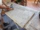 Thilo Simeoni testete die Verarbeitung. „Ich war sehr neugierig auf das Naturmaterial und freute mich dann, dass es sich nicht nur einfach verarbeiten lässt, sondern auch gut riecht, wie Heu. Es war ein gutes Gefühl, damit zu arbeiten“, berichtet der Maler, der im Laufe seiner 30-jährige Berufserfahrung schon viel Dämmmaterial verarbeitet hat. Mit handwerklichem Geschick brachte er zusammen mit einem Malerkollegen und dem Caparol-Anwendungstechniker Artur Fedoruk die 625 x 625 mm großen und 45 mm dicken Platten an, die sorgfältig verpackt in die Gartenmanufaktur geliefert worden waren. Knifflig waren die Anschlüsse an die raumhohen Fenster und am Glasdach. Mittels Stichsäge und einem Dämmstoffsägeblatt konnten die Platten einfach zugeschnitten werden. Wie aber lässt sich die Fase am Zuschnitt herstellen? Thilo Simeoni tüftelte gemeinsam mit dem Caparol-Team die beste Lösung aus, indem sie die Kanten der Hanfplatte mit einem Handwinkelschleifer, bestückt mit einem Schleifteller bzw. einer Schleifscheibe herausarbeiteten. Grobe Fransen wurden mit der Schere entfernt, ansonsten ließen sich die Schnittflächen durch überbügeln mit einem Bügeleisen nachglätten.