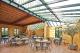 Die Beschichtungstechnik erinnert an verwaschene, verwitternde Fassaden, wie sie häufig in mediterranen Ländern zu sehen sind. Dazu passt die Flachdachdecke mit naturbelassenen, dicken, dunkelbraunen Rundholztragbalken und Holzsparren, die mit warmtonigen Terracottaplatten bedeckt sind, so wie es in toskanischen Landhäusern üblich ist. Die Decke ist schön anzusehen, doch im Zusammenwirken mit anderen schallharten Oberflächen wie raumhohen Fenstern, dem Glasdach und einem Laminatboden, gab es akustische Probleme. Das zeigte sich bei Musikveranstaltungen und anderen Events, die hier regelmäßig stattfinden. Veranstalter, Künstler und Besucher wünschten eine bessere Akustik.