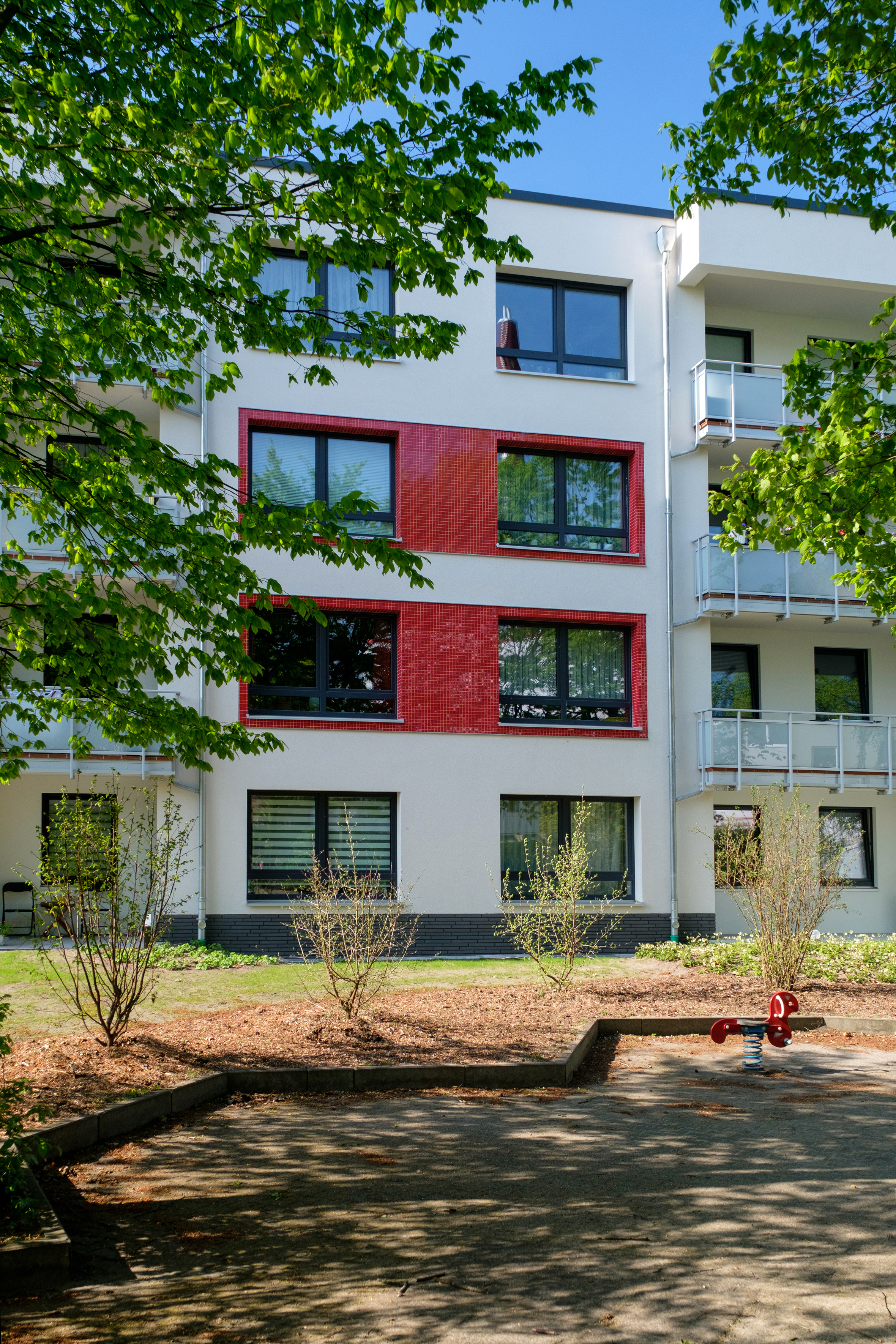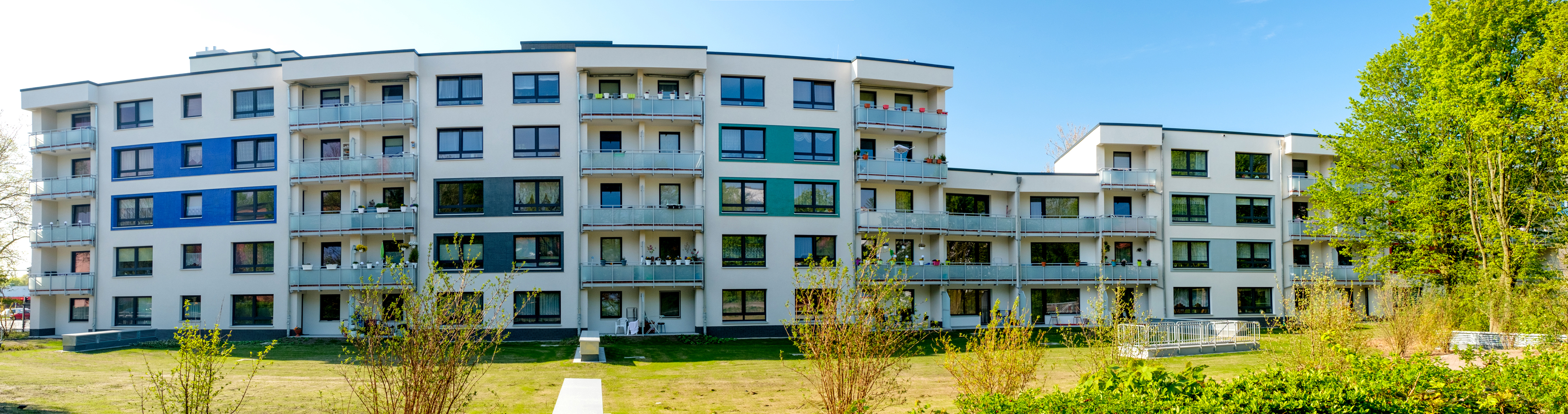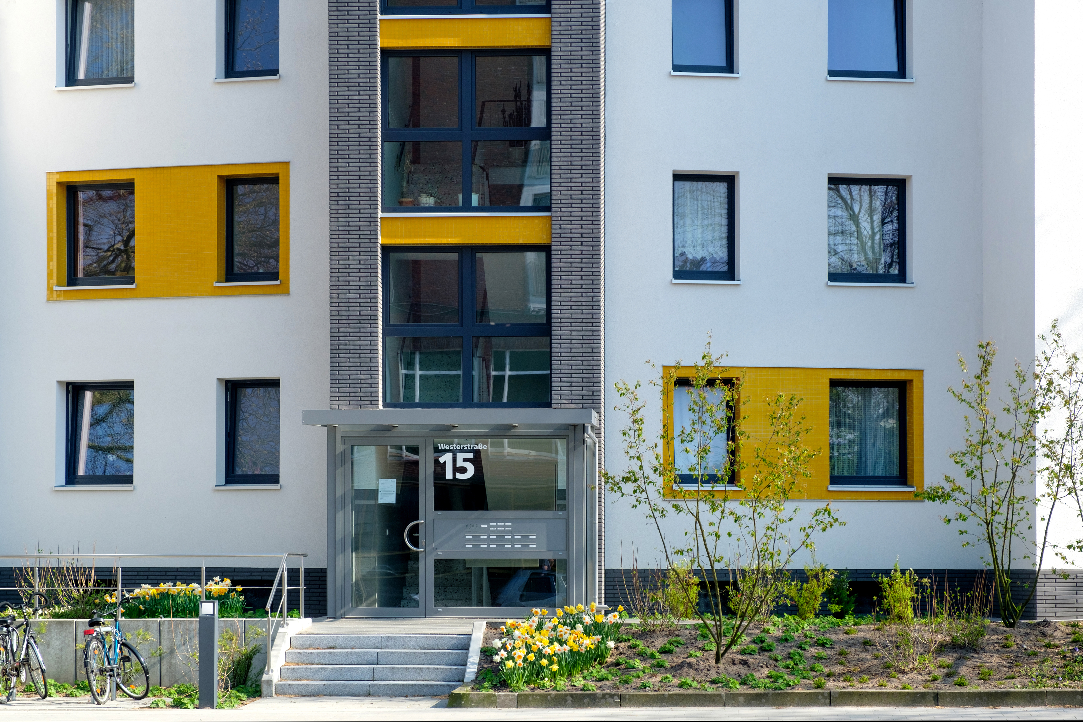 Neben der modernen und edlen Fassadengestaltung, deren Glasmosaike im Sonnenlicht glänzen, ist die Modernisierung auch energetisch gelungen und hat sich für die Mieter in jeder Hinsicht gelohnt.