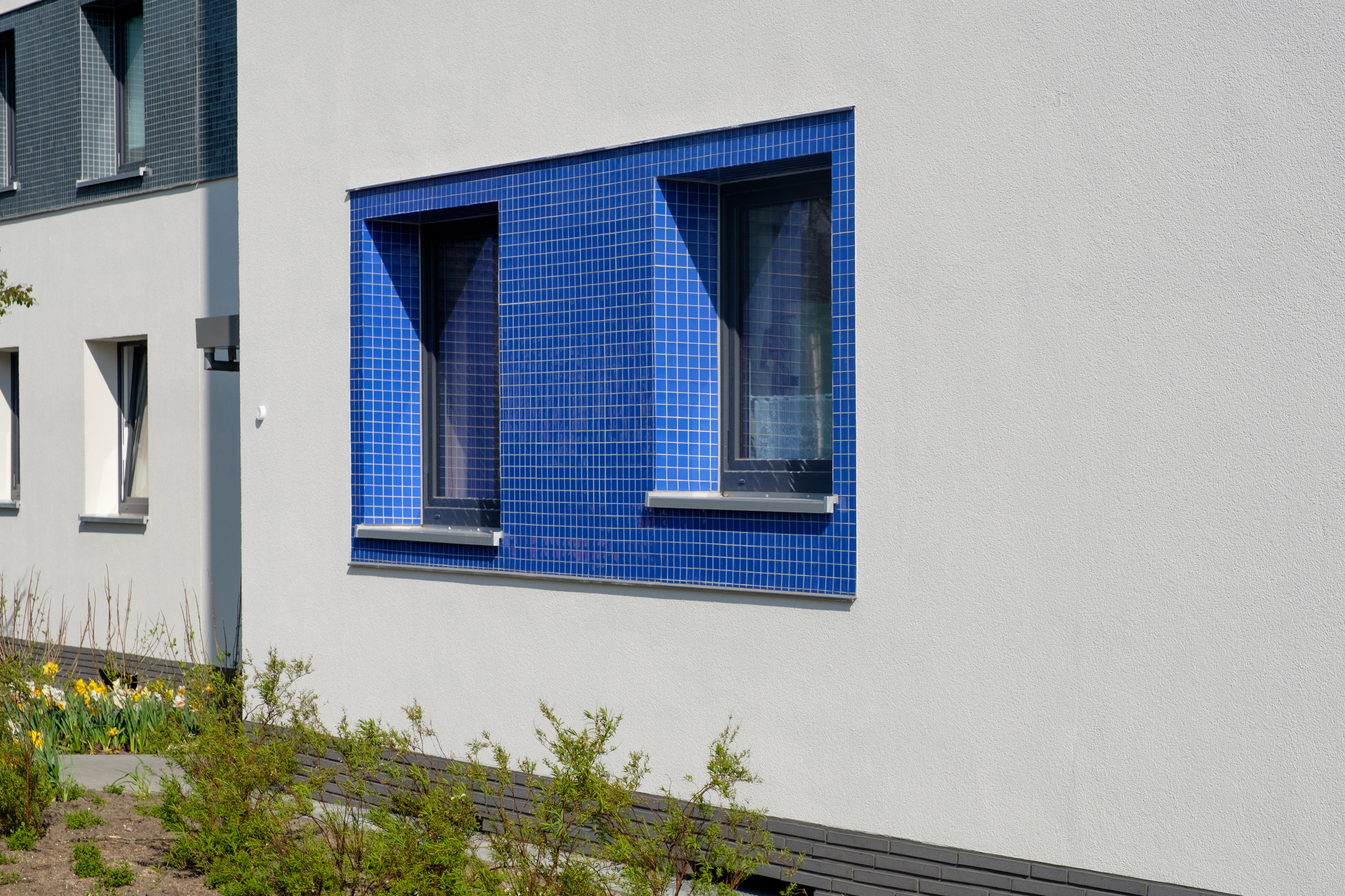 Zarte Akzente auf kontrastreicher Fassade