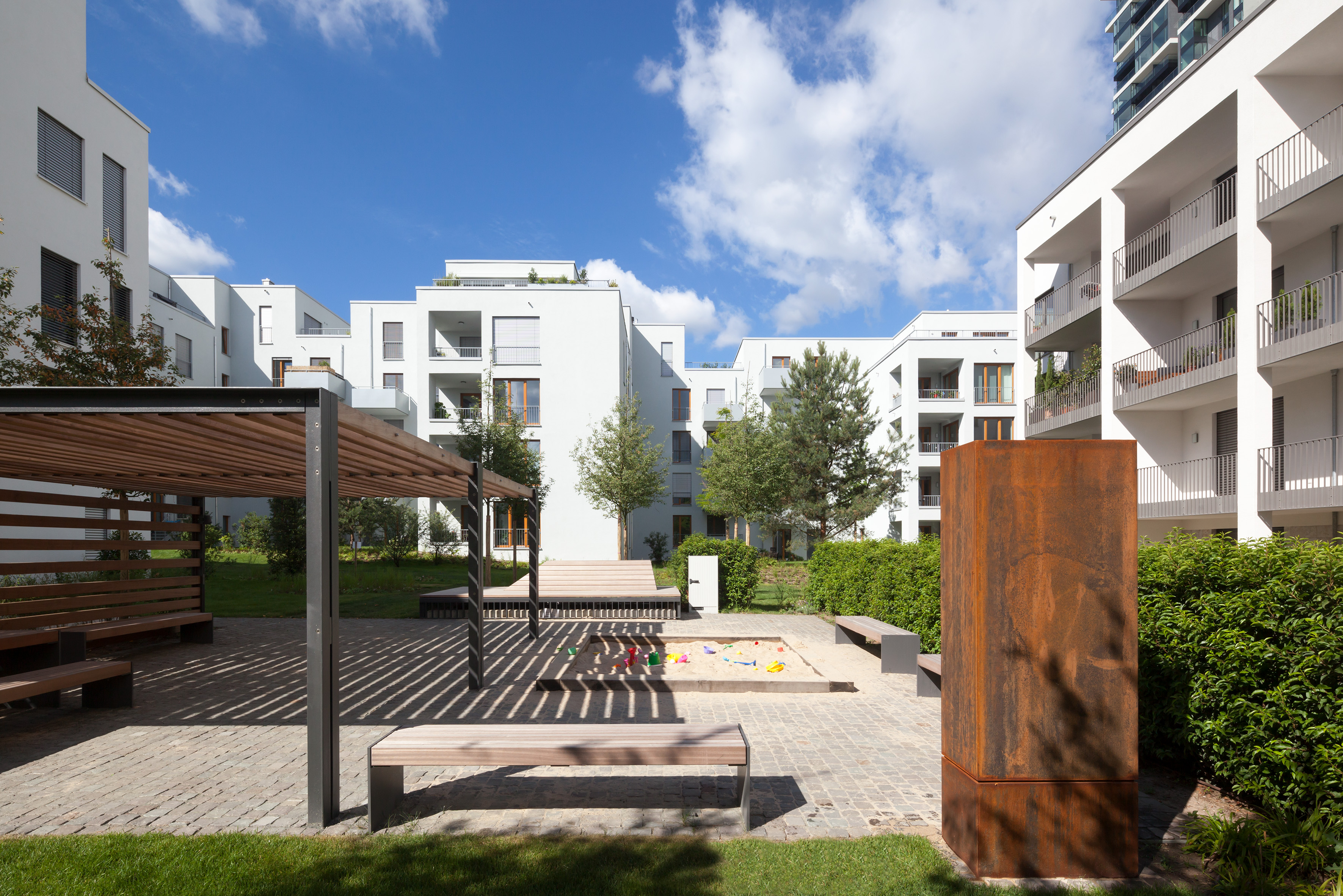 (pressebox) (Ober-Ramstadt, 04.08.2017) Mit den „Stadtgärten am Henninger Turm“ entsteht in Frankfurt/Main ein zentrumsnahes Gartenquartier mit hohem Wohnwert in einem attraktiv gestalteten, parkartigen Umfeld. Der Name nimmt Bezug auf ein einstiges Wahrzeichen im Frankfurter Stadtteil Sachsenhausen: Der Henninger-Turm war das Getreidesilo einer Brauerei in der Main-Metropole. Überregionale Bekanntheit erlangte er durch das nach ihm benannte Radrennen, das über viele Jahre hier ausgetragen wurde. Im Zuge der Neugestaltung des Viertels wurde der Siloturm abgetragen. Heute steht hier der Neue Henninger Turm, ein Wohnhochhaus, das in der äußeren Form an das einstige Baudenkmal erinnert.