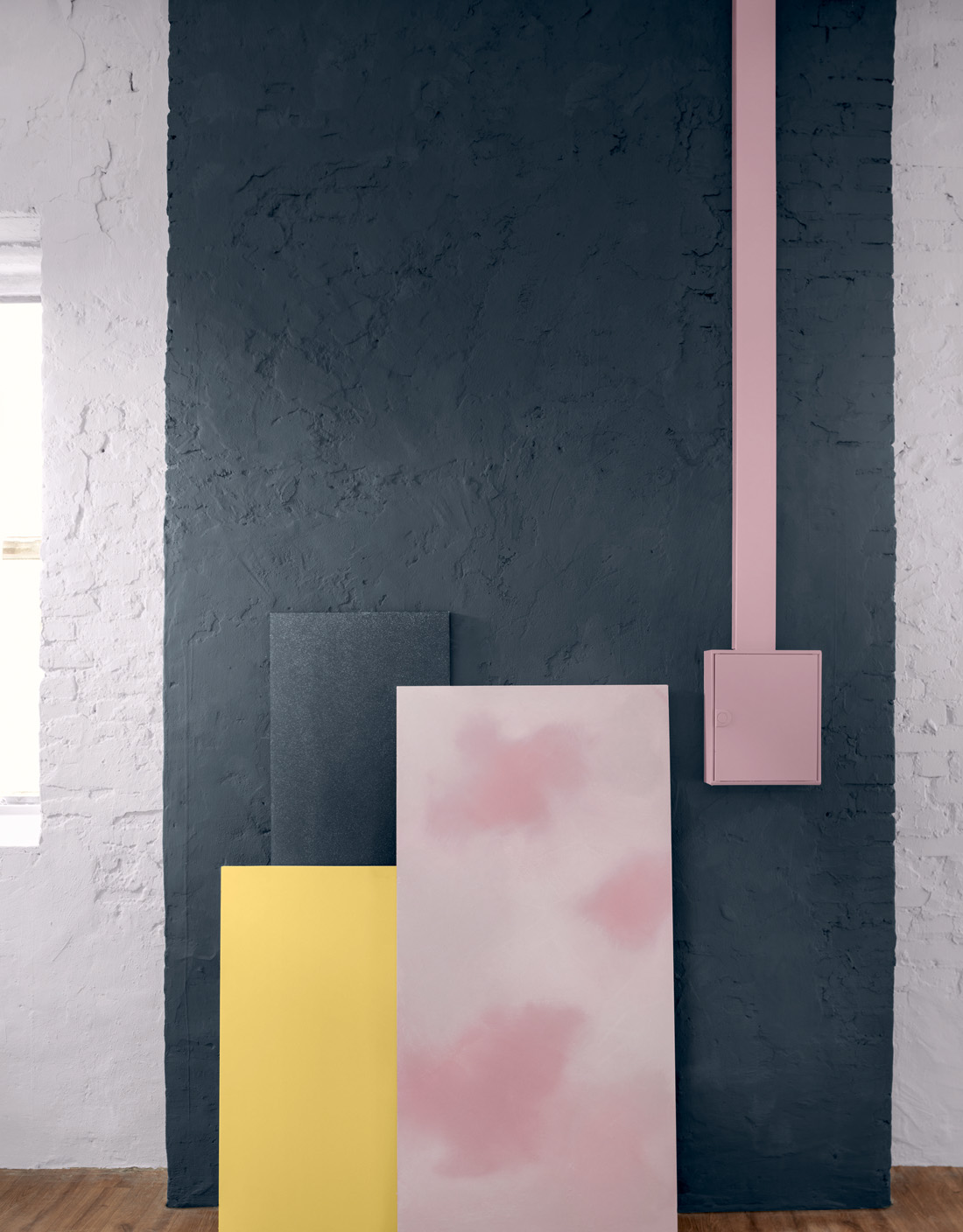 Farbwelt 3 zeigt sich mit nordischer Klarheit, Frische und Prägnanz. Intensive Blautöne aus dem Vorjahr finden sich hier wieder, allerdings macht sich auch hier die Verschiebung hin zu mehr Grün bemerkbar. Wichtig ist das kühle Rosé „Flamenco 85“, das durch die Kombination mit den anderen, dunklen Tönen für Offenheit und Modernität sorgt.