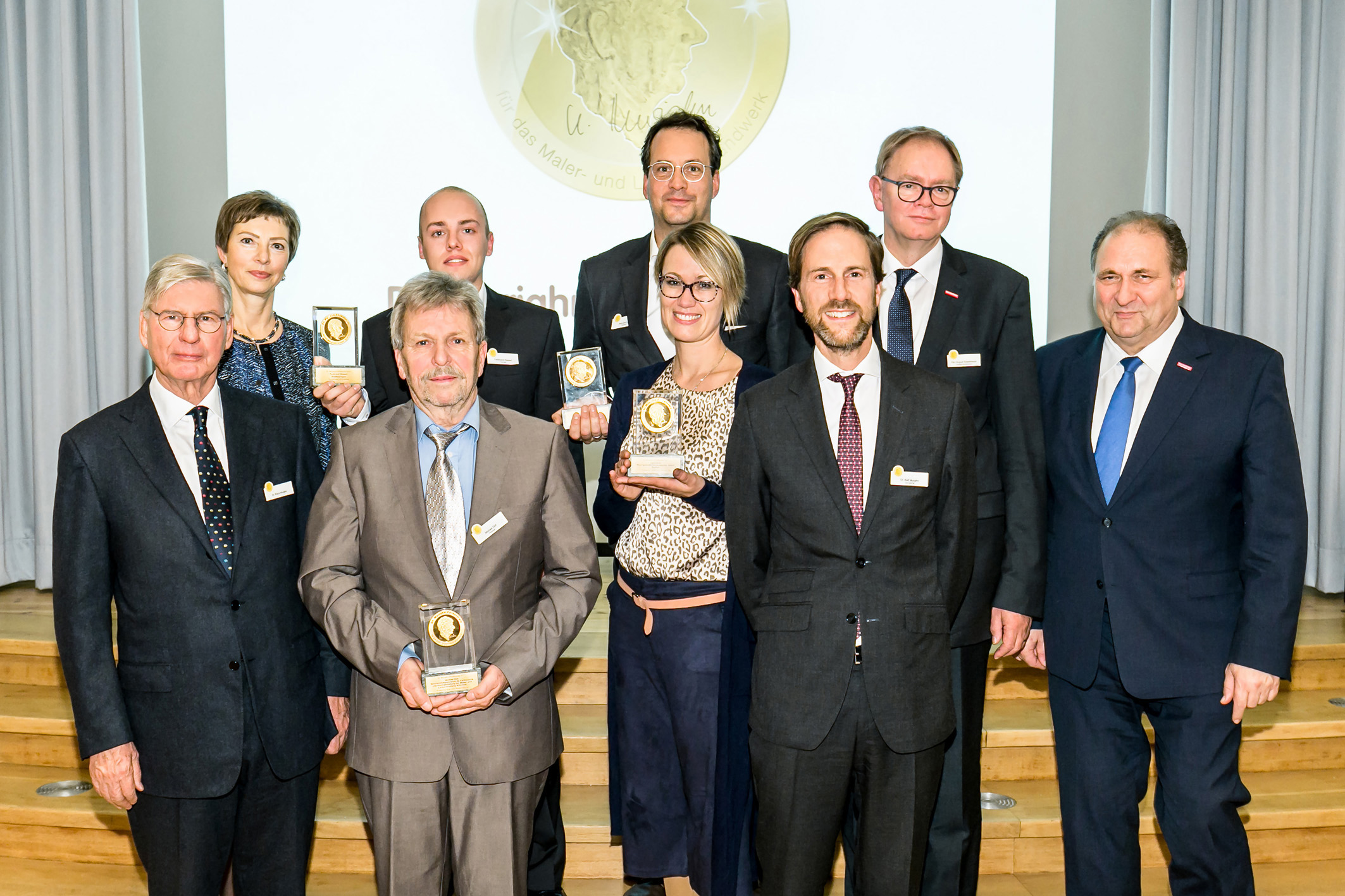 Bei der Preisverleihung dankte Karl-Augst Siepelmeyer als Präsident des Bundesverbandes Farbe Gestaltung Bautenschutz Dr. Klaus Murjahn dafür, dass er den Förderpreis als Zeichen der hohen Wertschätzung und engen Verbundenheit der Familie Murjahn mit dem Malerhandwerk ins Leben gerufen hat. Damit sei eine Plattform geschaffen worden, die Leistungsfähigkeit des Handwerks einer breiten Öffentlichkeit zu verdeutlichen. Dr. Klaus Murjahn dankte allen Beteiligten, die den Preis unter Leitung der Kuratoriumsvorsitzenden Ursula Blank zum Erfolg geführt haben, und betonte den generationsübergreifenden Charakter des Preises. Dieser spiegelte sich auch darin wider, dass die Preisverleihung in diesem Jahr erstmals von Dr. Ralf Murjahn und Ursula Blank vorgenommen wurde. Ralf Murjahn würdigte die hohe Qualität der eingereichten Projekte: „Das Handwerk kann stolz auf sich sein.“ Zuvor hatte ZDH-Präsident Hans Peter Wollseifer auf den impulsgebenden Charakter des Dr. Murjahn-Förderpreises verwiesen, der Fachbetriebe, Einzelpersonen oder Bildungseinrichtungen auszeichnet, die durch herausragende Leistungen auf sich aufmerksam gemacht haben. Mehr unter „www.Dr-Murjahn-Foerderpreis.de“.