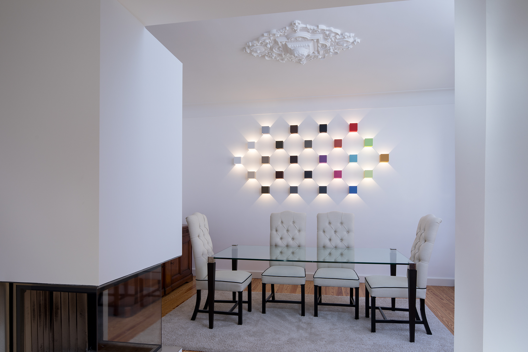 (pressebox) (Ober-Ramstadt, 05.01.2018) Wenn das Licht angeht, beginnen die bunten Würfel zu leuchten und ziehen alle Blicke auf sich. „Die Lichtinstallation ist das Highlight des Esszimmers“, schwärmt Jan-Peter Sattler-Riegel. Er hatte sie im Lichthaus Enzinger in Bonn entdeckt, das ebenso wie sein Immobilienkontor Teil des Meisterteams Bonn-Rhein/Sieg ist, eine regionale Handwerkerkooperation von Meisterbetrieben. Der Makler war spontan so begeistert von der farbenfrohen Lampenkreation, dass er sie unbedingt für seinen gerade gekauften Altbau aus dem Jahr 1934 haben wollte. Bei der Kernsanierung des Hauses legte er Wert darauf, Modernes und Altes zu kombinieren.