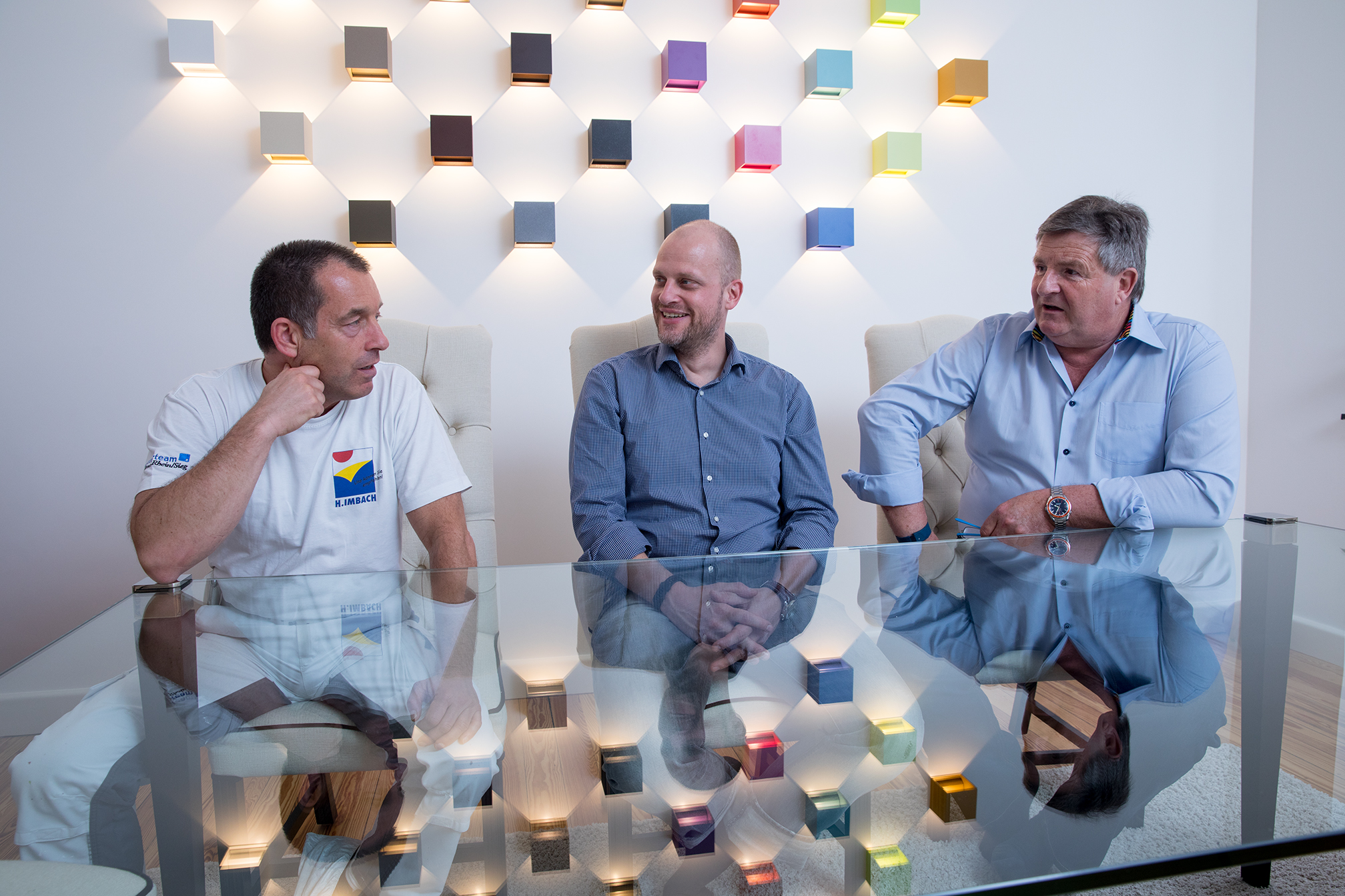Der Caparol-Fachmann wurde vom Malerbetrieb H. Imbach GmbH – ebenfalls Angehöriger des Meisterteams – zur Unterstützung hinzugezogen. Malermeister Werner Pleis nahm die Herausforderung einer makellosen Oberfläche gern an und hatte die Idee, die Wand im Airless-Spritzverfahren weiß zu lackieren – eine Technik, die immer dann eingesetzt wird, wenn größere Flächen sehr glatt und dabei rationell beschichtet werden sollen.